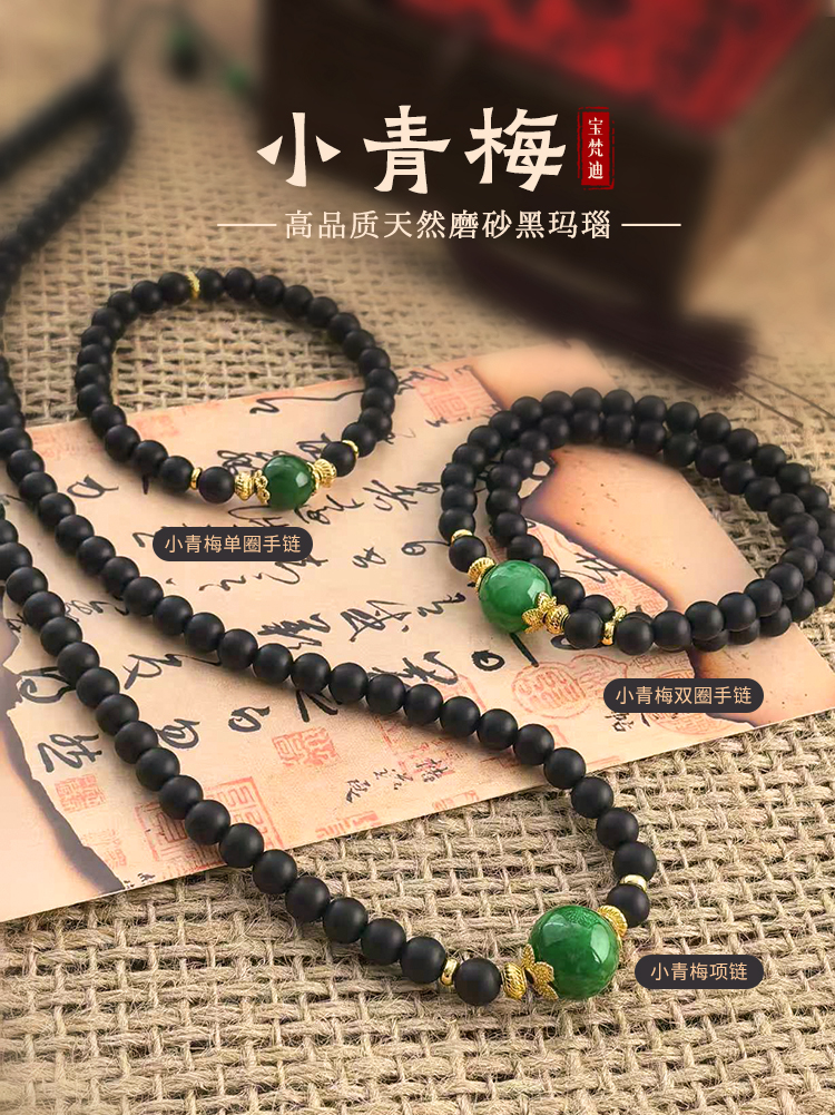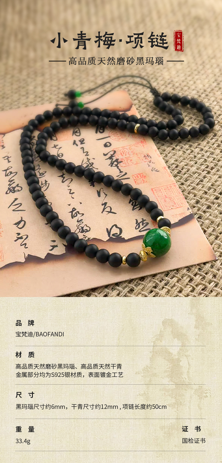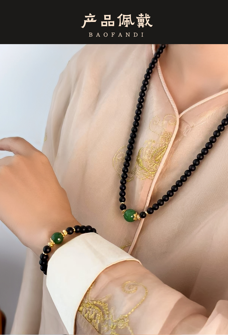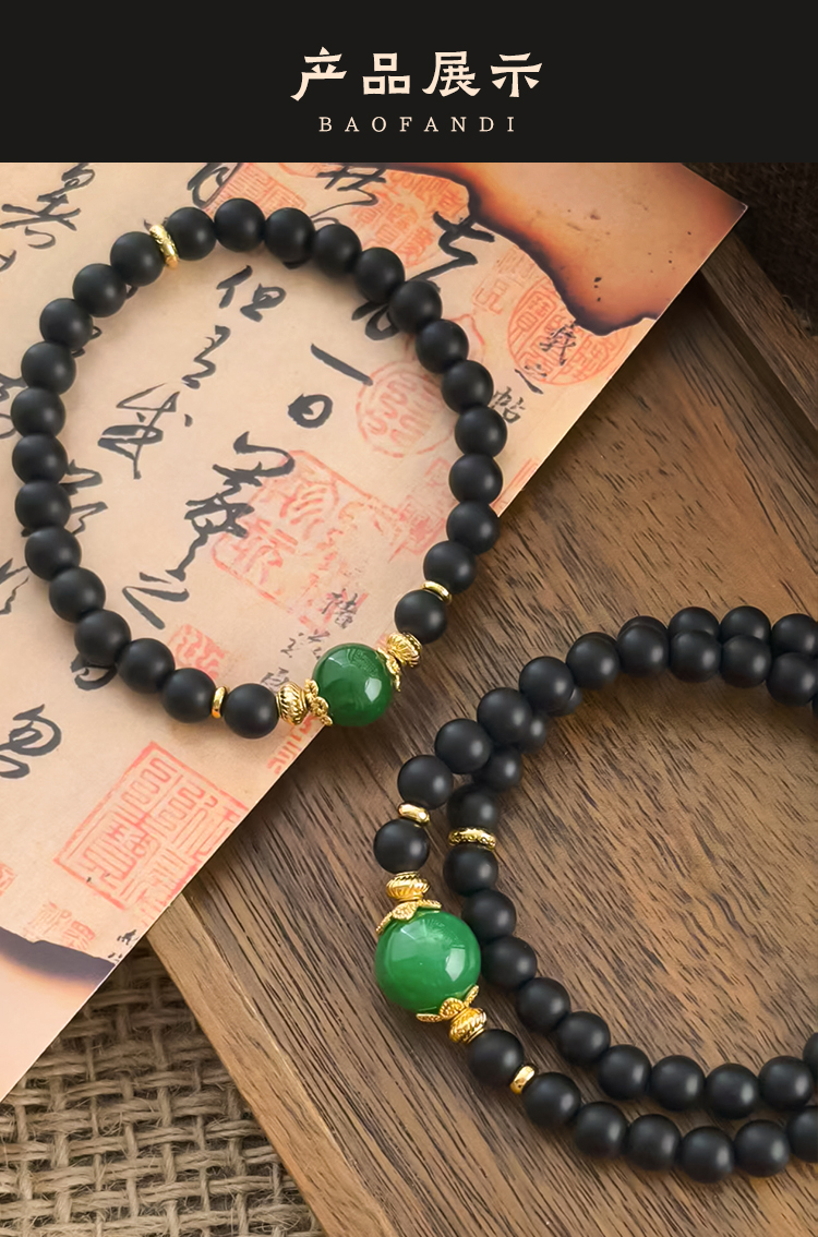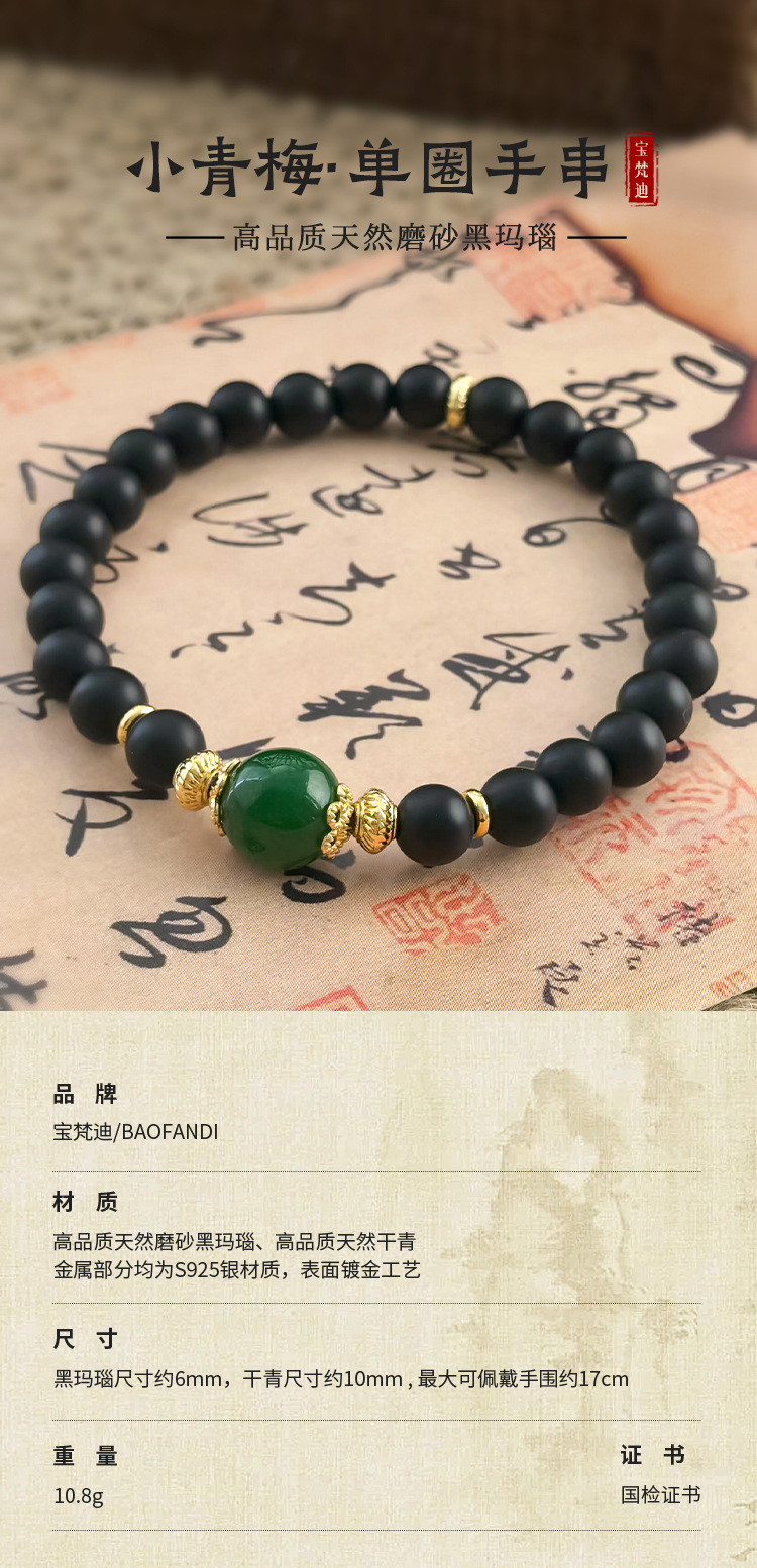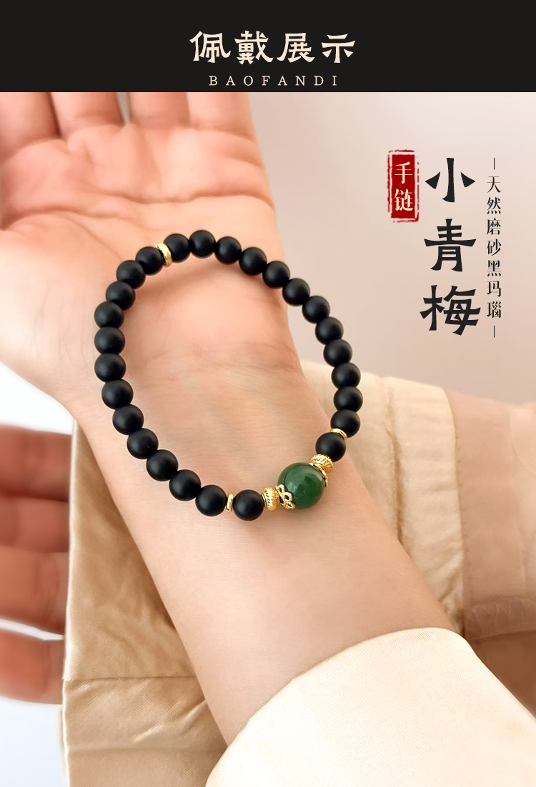 BAOFANDI宝梵迪小青梅磨砂黑玛瑙手串新中式高级感时尚百搭手串BF
