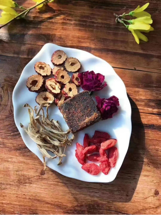 【配料 】: 红糖、黑糖、重瓣红玫瑰、枸杞、老姜、桂花、红枣