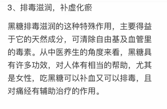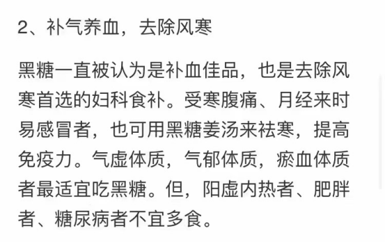 4、黑糖的温性效果高于红糖;黑糖具有活血化瘀、温宫、提升阳气等作用,中医会用它来治疗虚寒性疾病