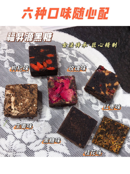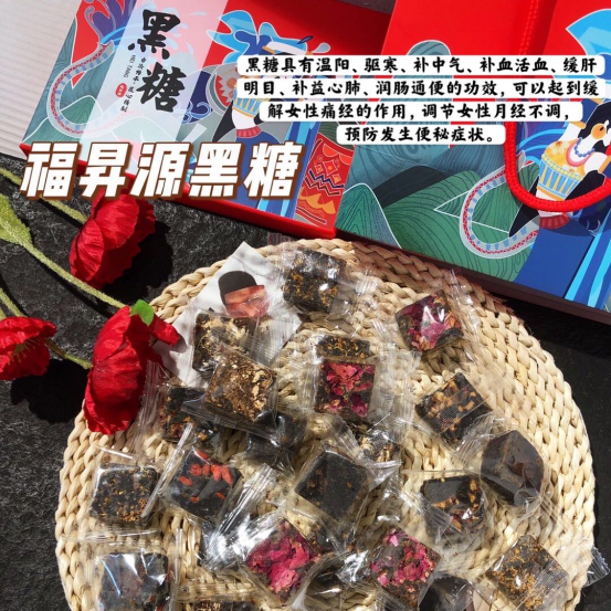 1、福昇源黑糖,秉承纯手工酿造,美容补血祛斑安神。玫瑰黑糖功效:补血排毒、强增能量、月经顺畅、调理肠胃、美容护肤。老姜黑糖:风寒感冒、缓解痛经、新陈代谢、健胃整肠、舒筋活血