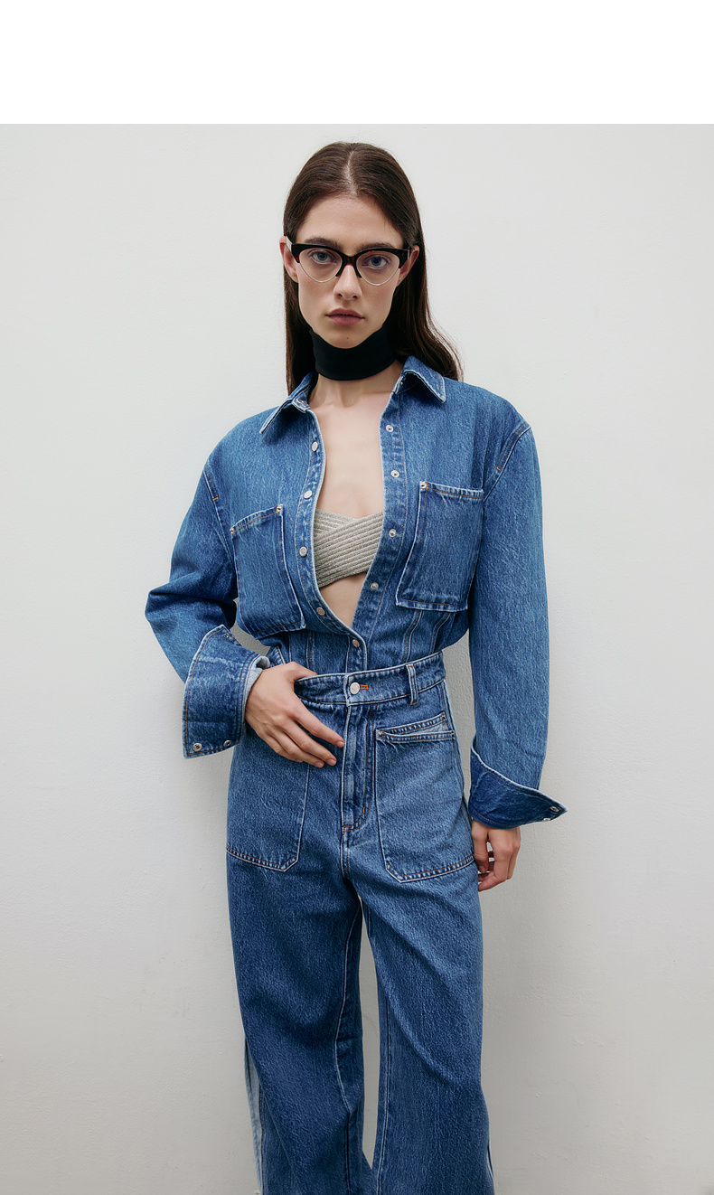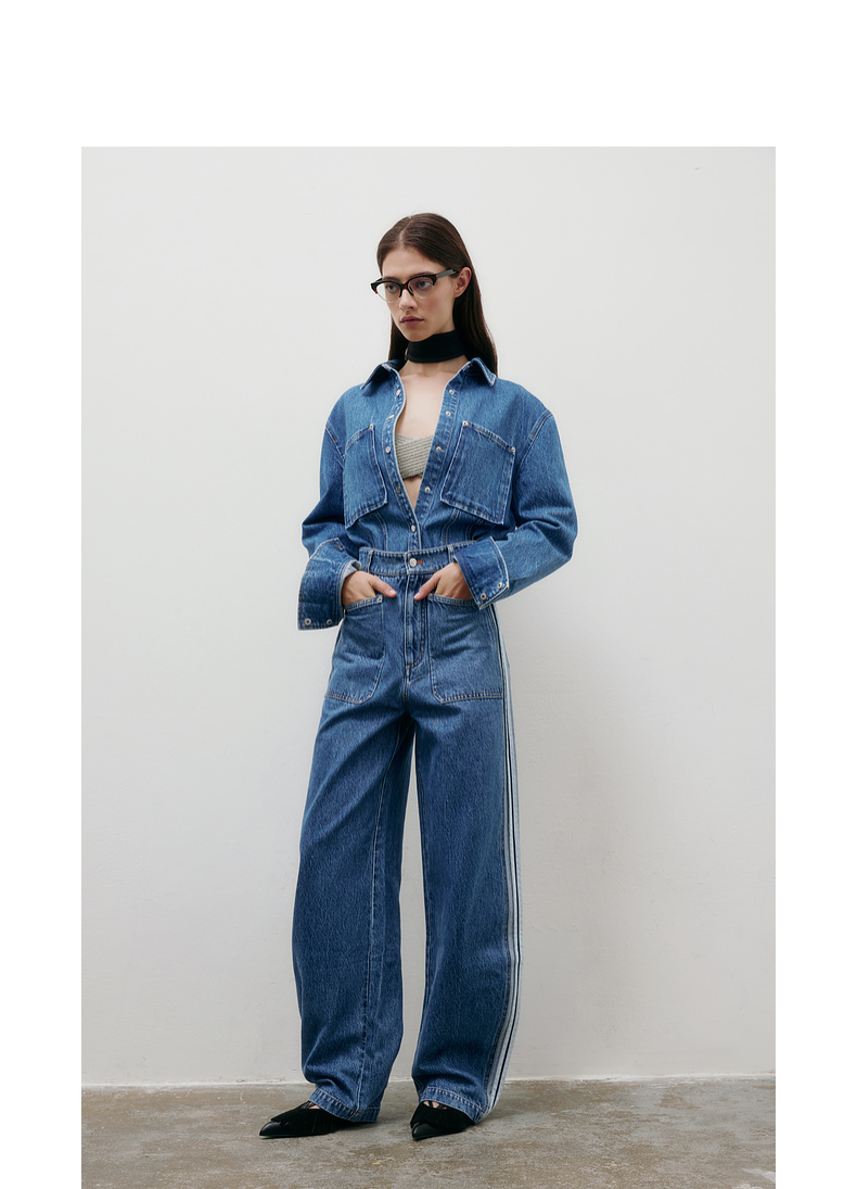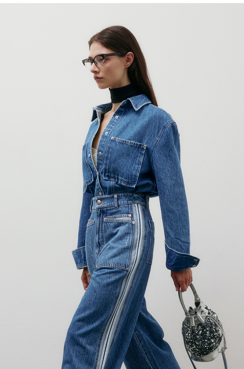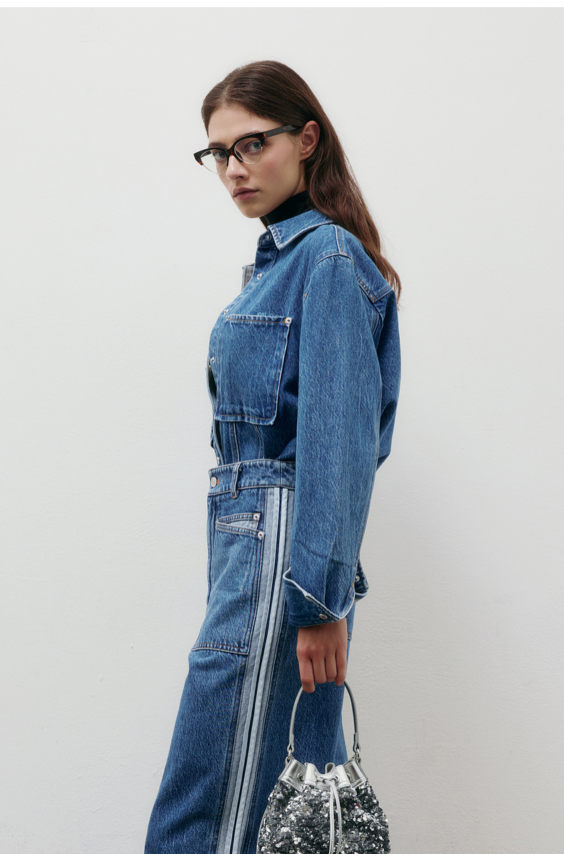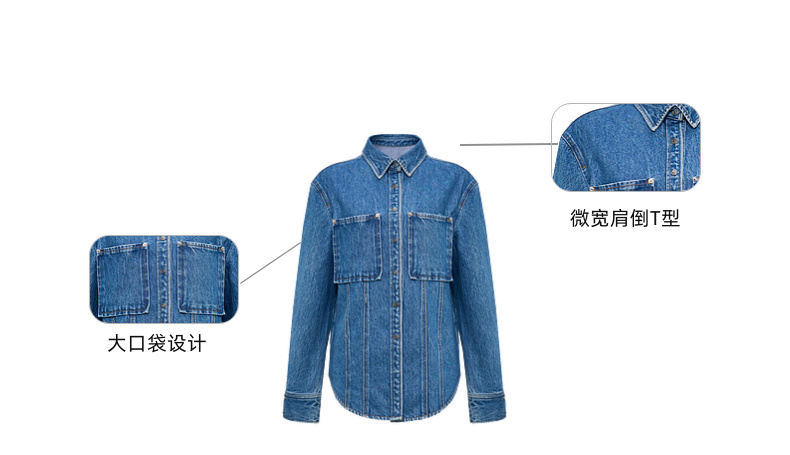 lost in echo2025春夏新款时尚经典复古牛仔大口袋长袖衬衫外套