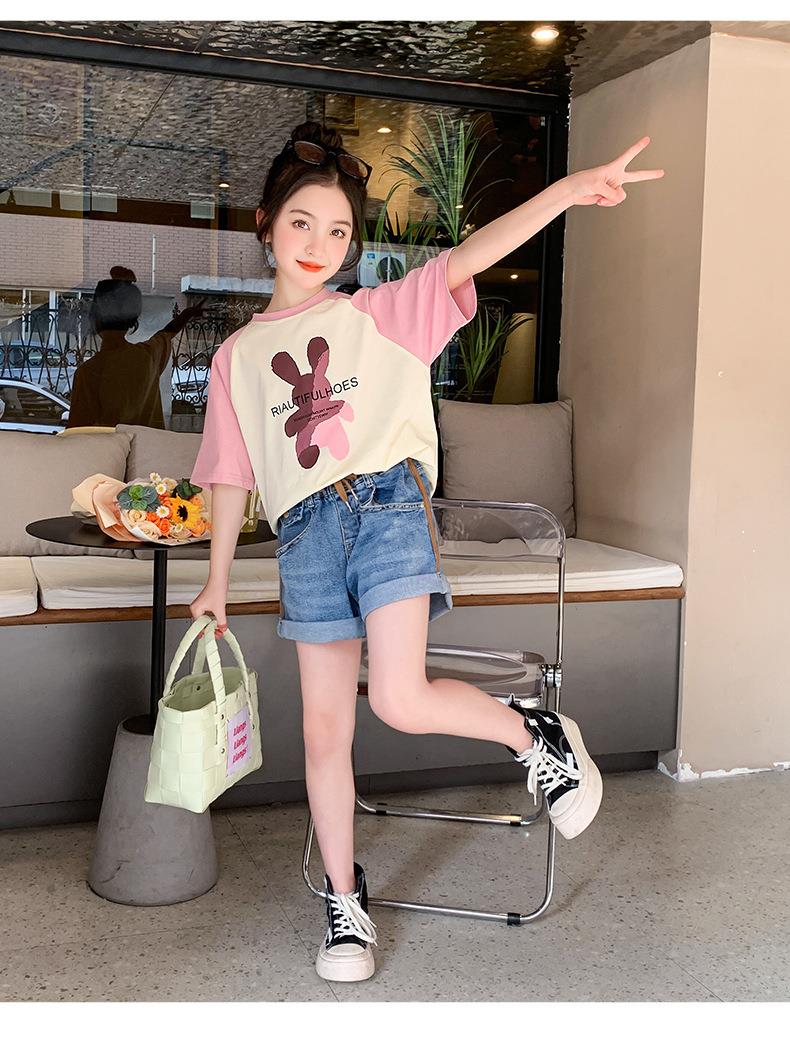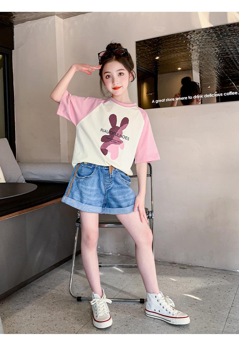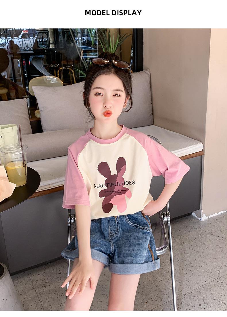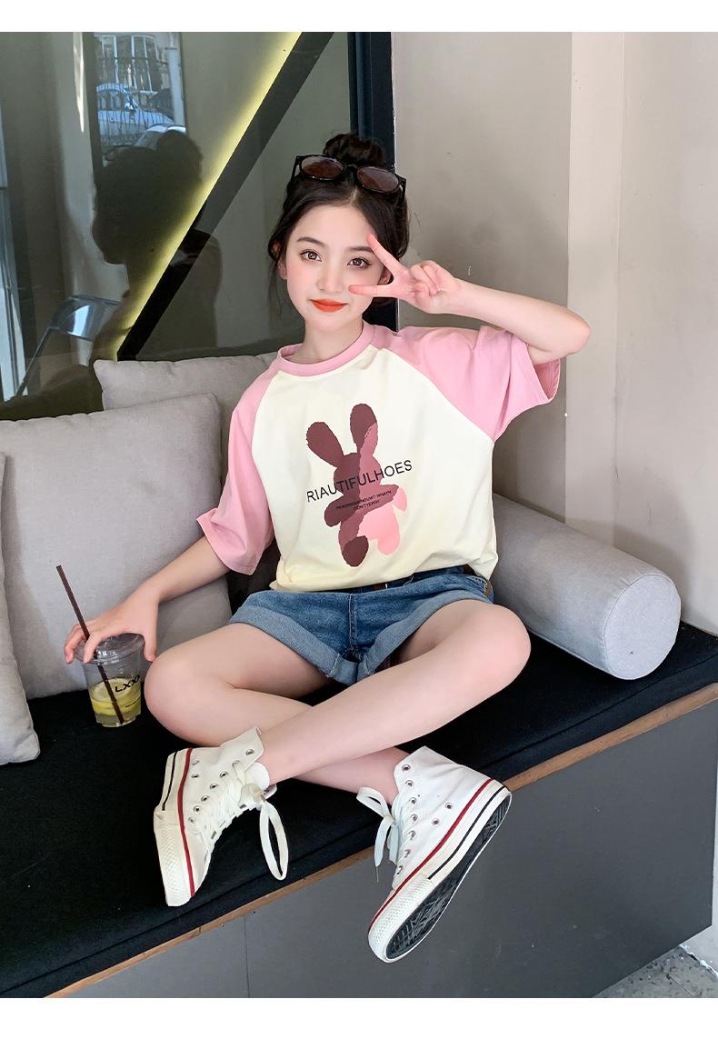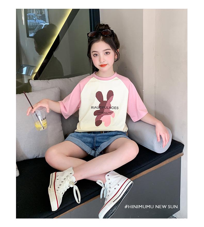 女童短袖T恤夏装2023新款洋气童装女大童儿童夏季半袖棉质上衣潮