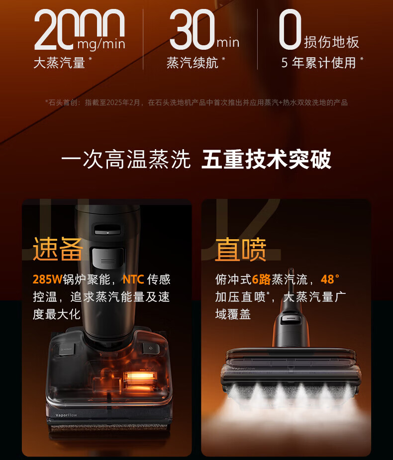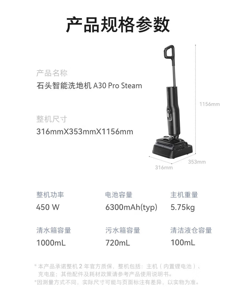 石头A30 Pro Steam蒸汽洗地机五合一版
