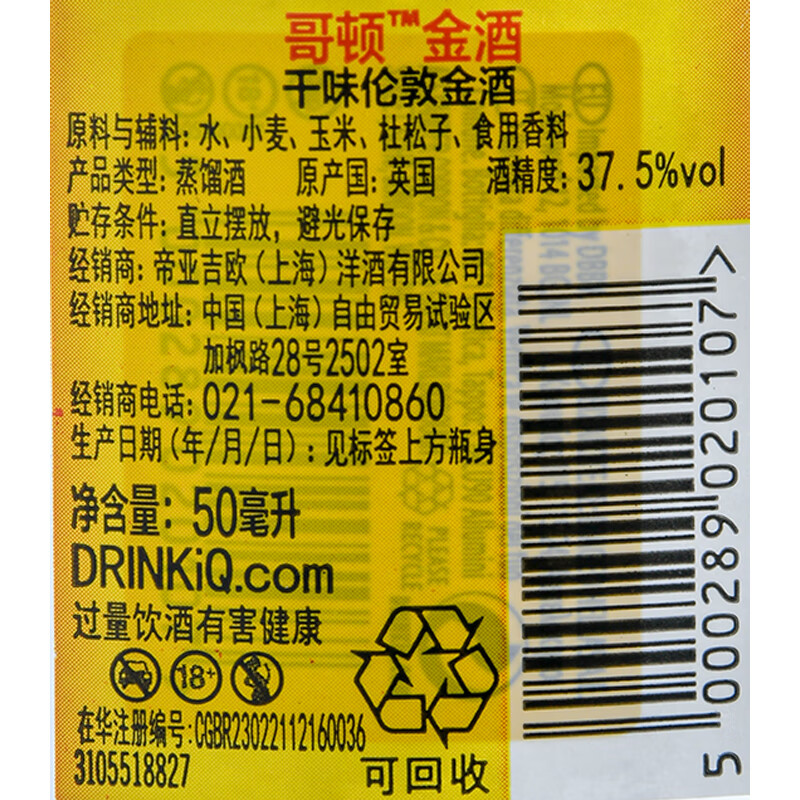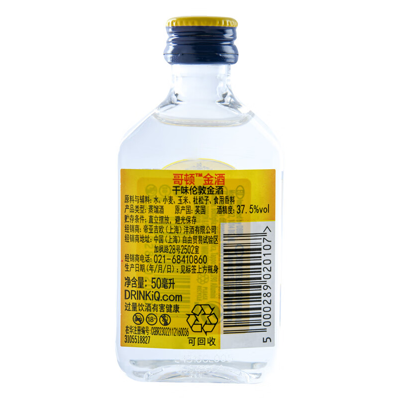 哥顿金酒 干味伦敦金酒_37.5%vol 50ml
