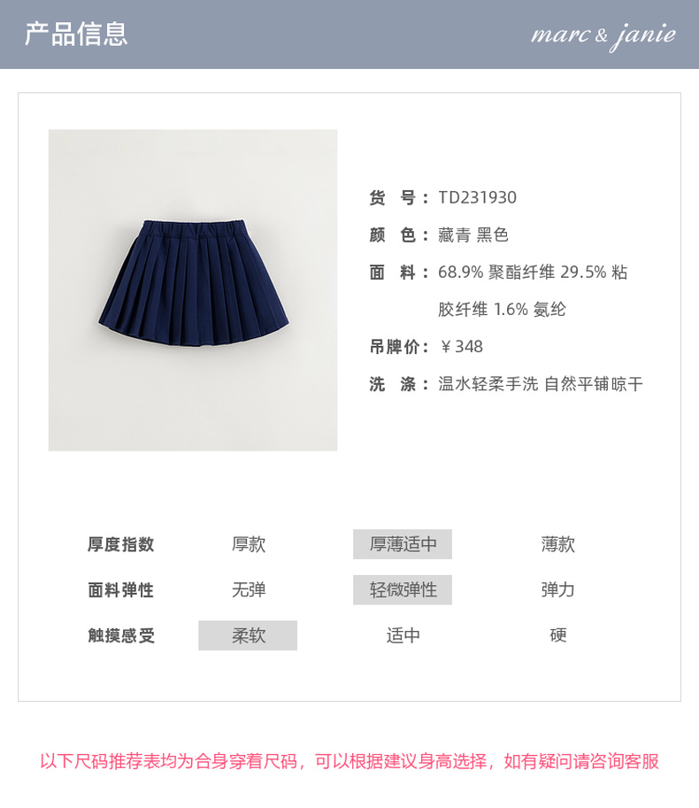 【学院风】马克珍妮秋装新款 女童A字百褶短裙半身裙231930