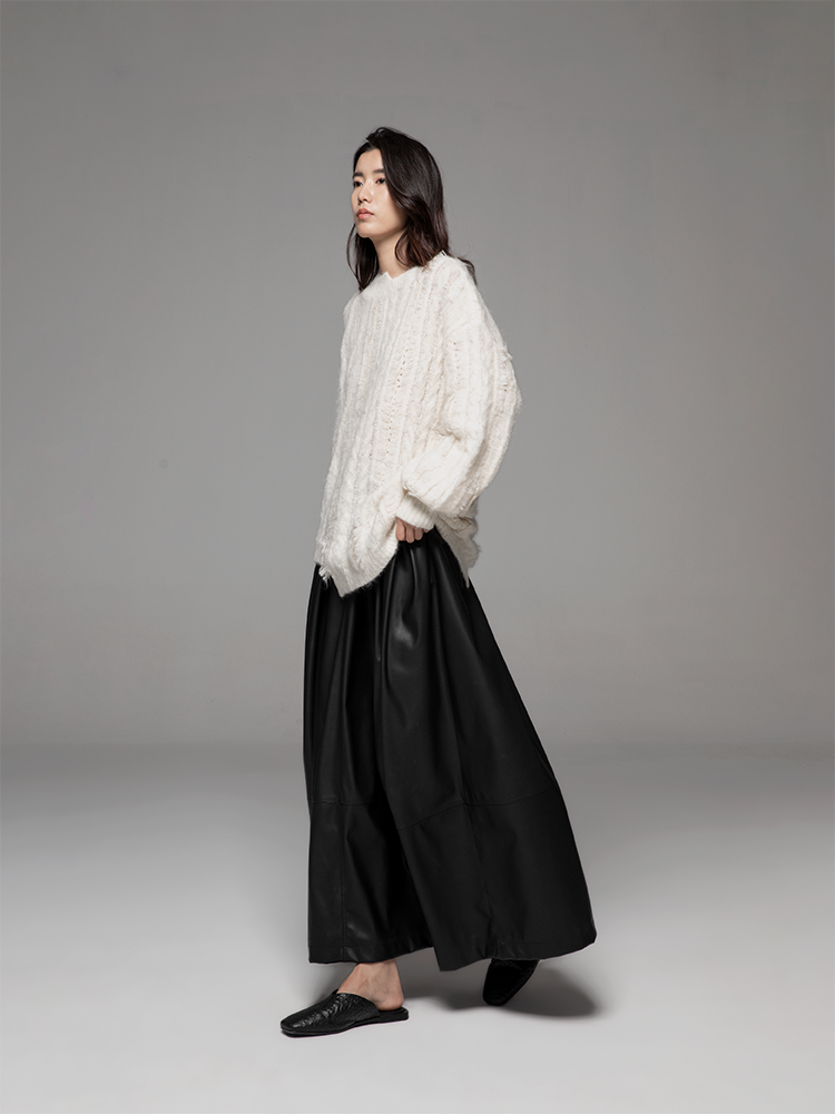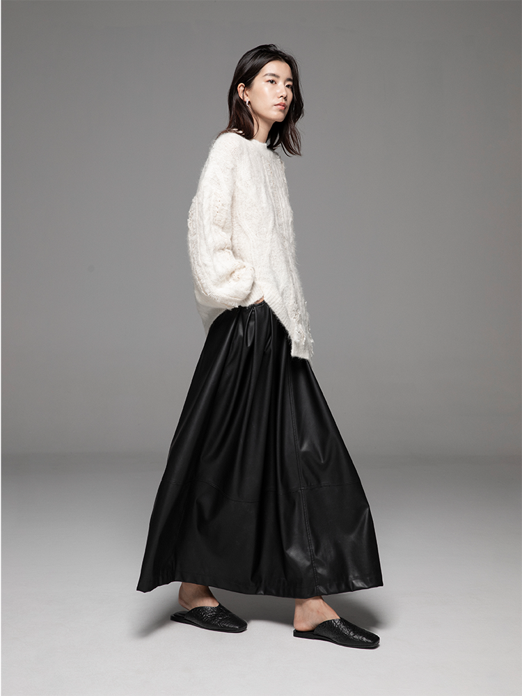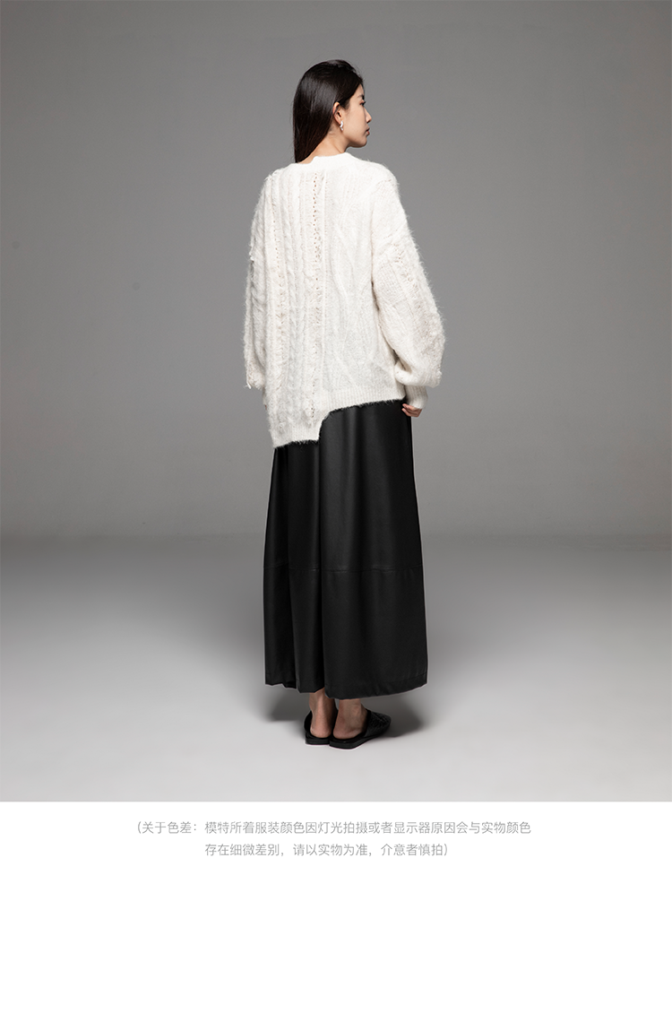 LIYIHAN 24秋新款羊驼毛不规则毛衫灯笼袖宽松毛衣高级慵懒设计感