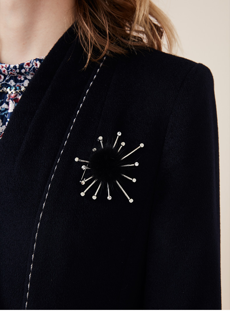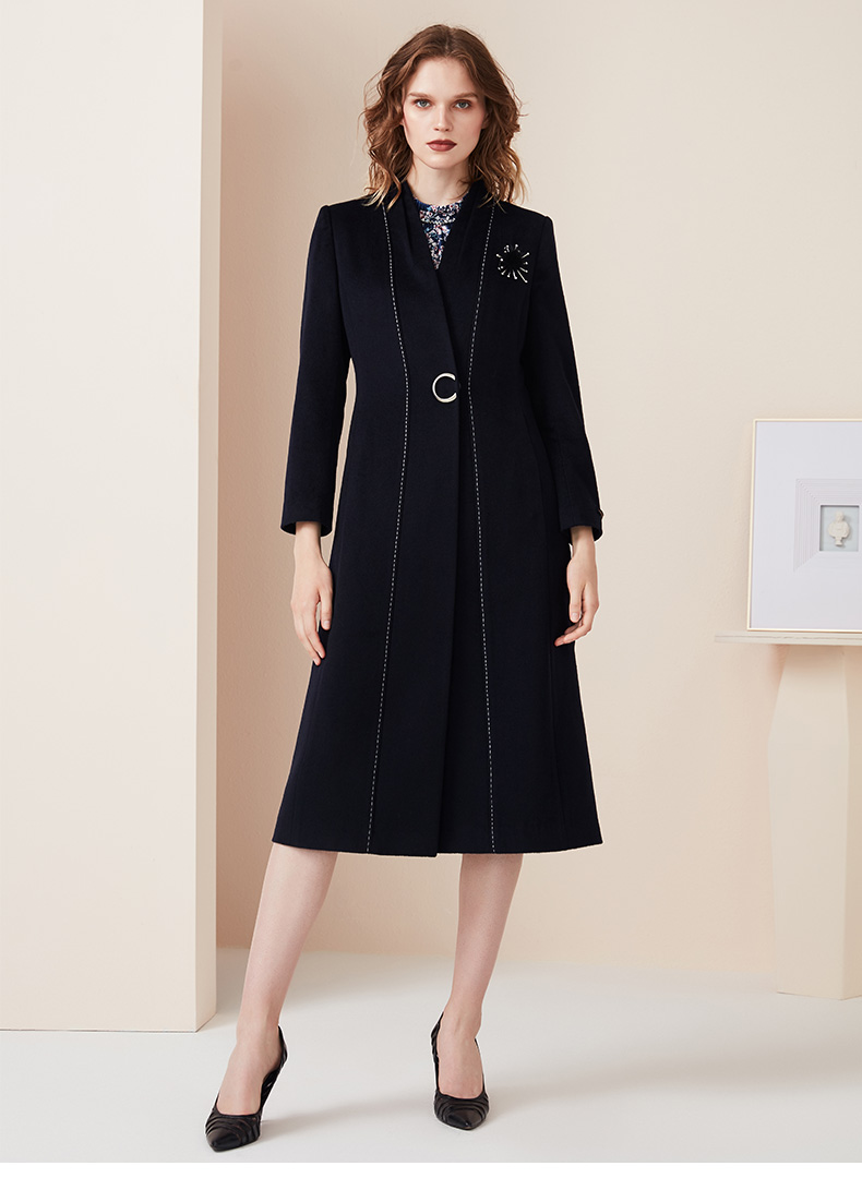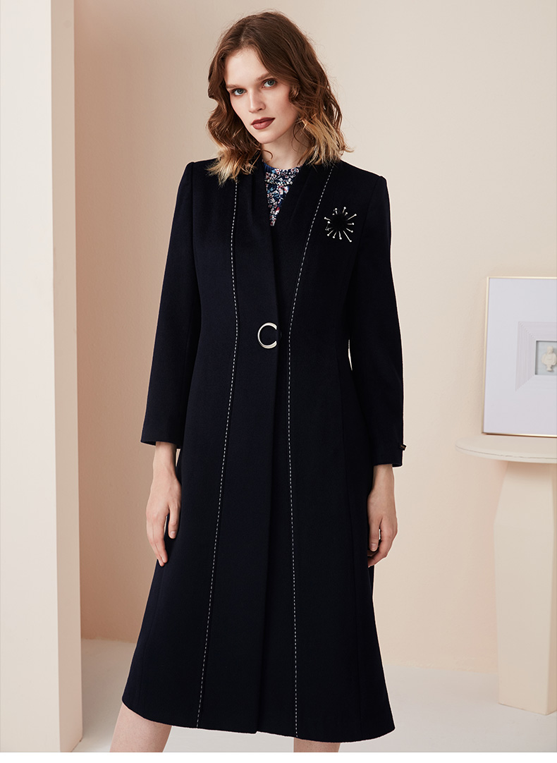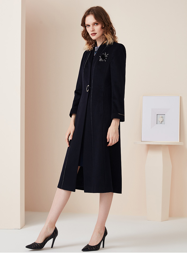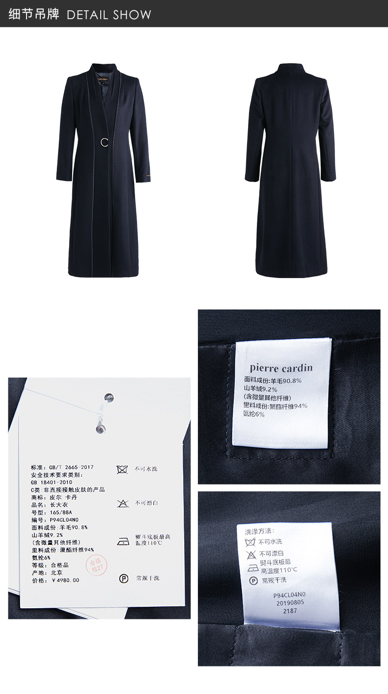 皮尔卡丹女专柜正品蓝色秋冬新款羊毛大衣时尚大衣外套P94CL04N0