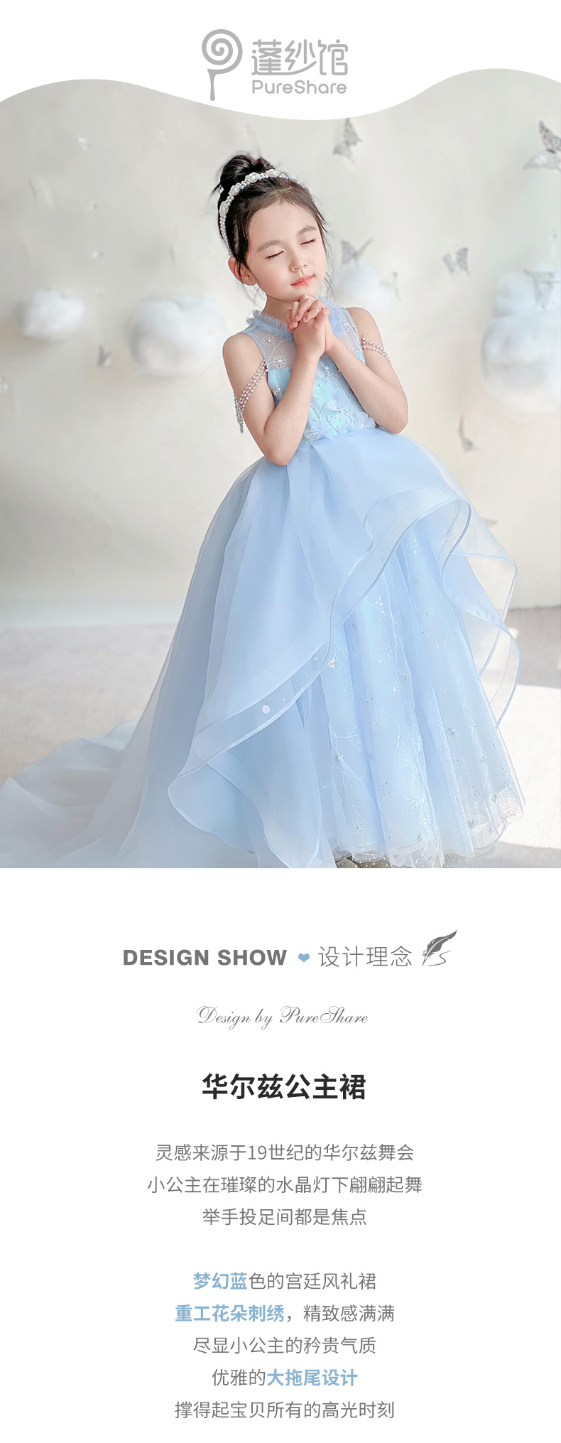 PureShare春夏新女童连衣裙气质公主裙演出时装周走秀款-华尔兹公主裙