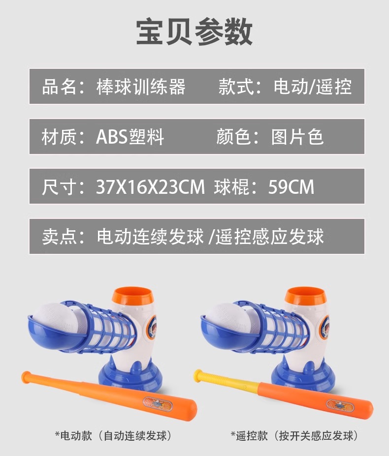 【眼手协调训练 亲子互动】新款儿童室内外遥控电动棒球练习训练弹射器套装户外运动休闲玩具