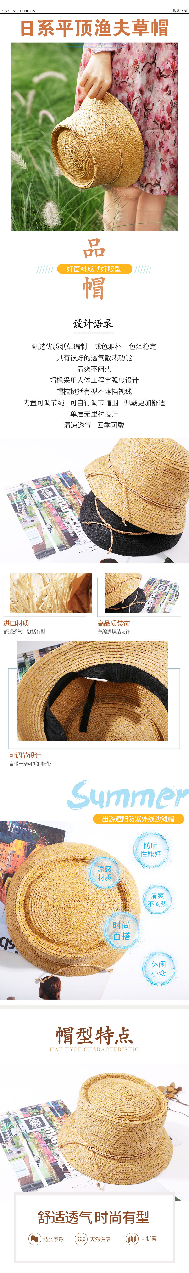 日系平顶渔夫草帽