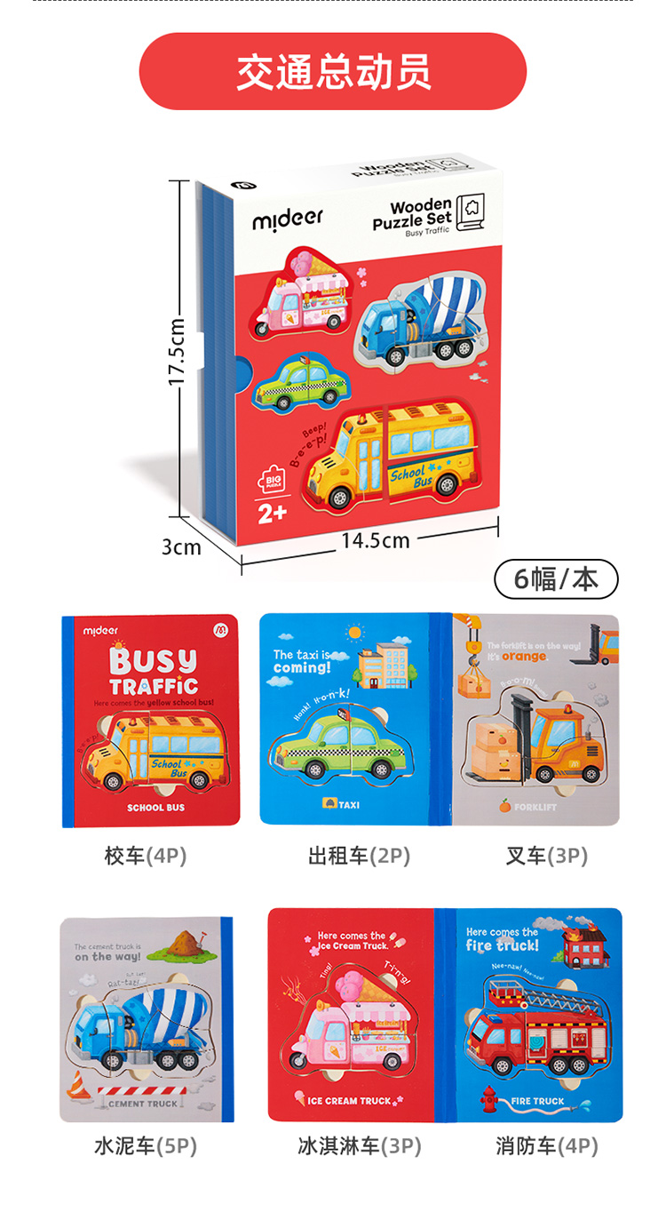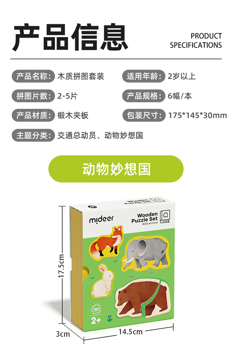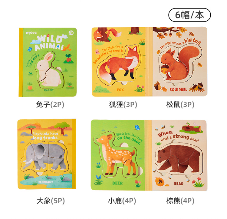 【儿童木质图书】mideer弥鹿儿童拼图3到6岁木质早教平图宝宝男女孩少儿童益智玩具