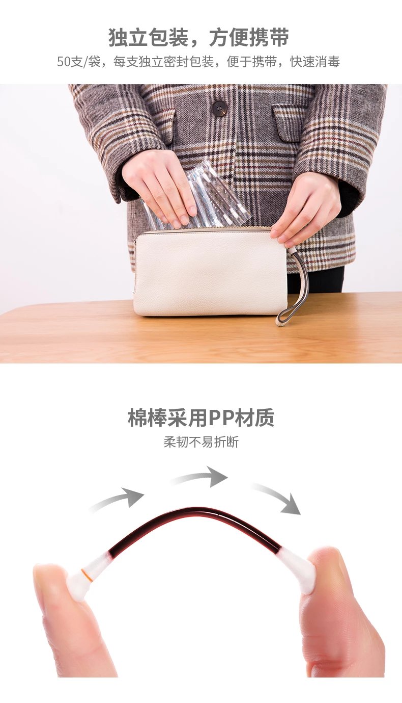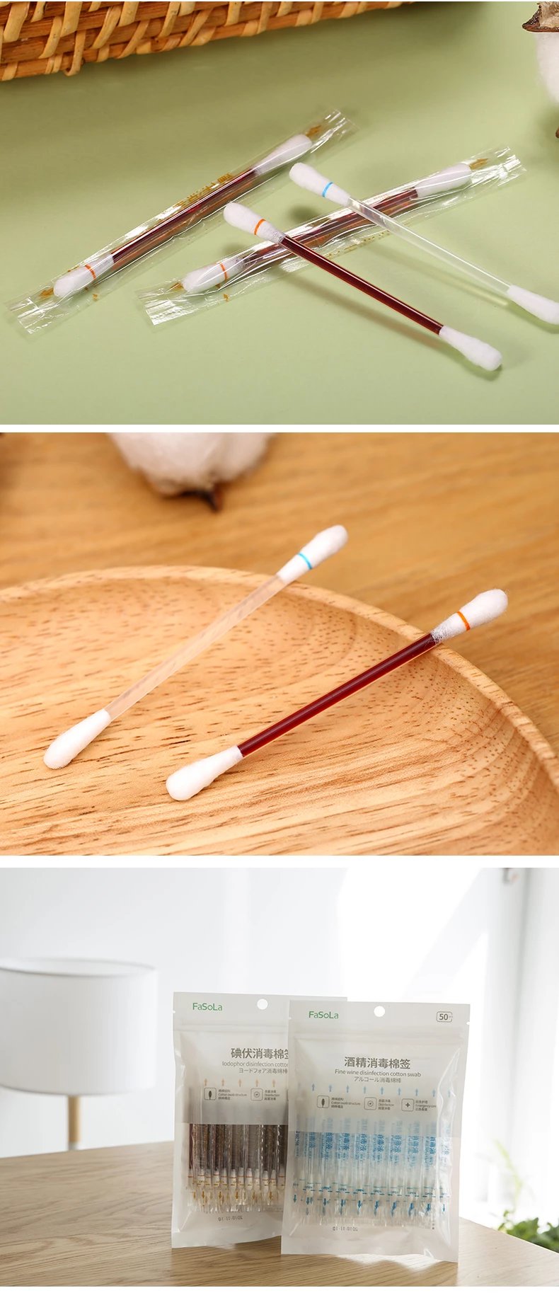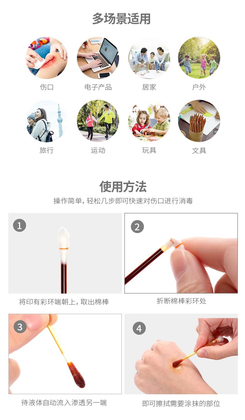 FaSoLa棉签家用一次性碘伏酒精双头便携随身伤口外用