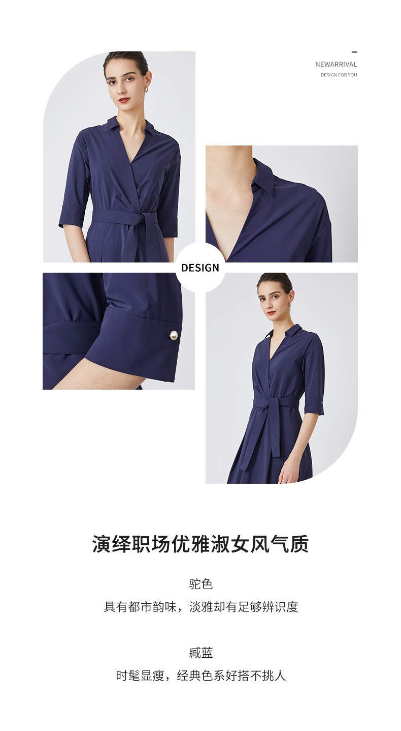 皮尔卡丹女装夏季新款通勤轻商务休闲多色连衣裙C31DL004