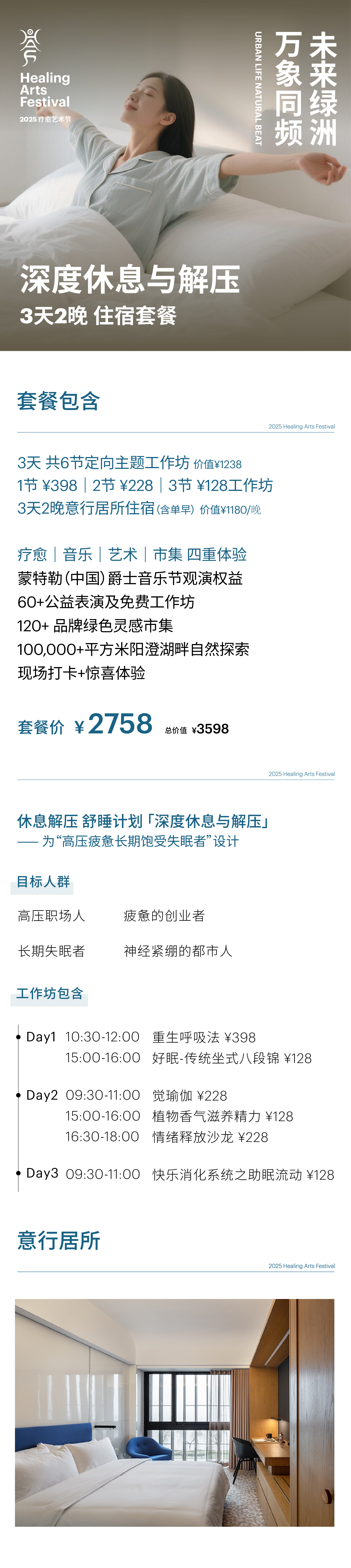 深度休息与解压 3天2晚住宿套餐 - HAF疗愈艺术节 苏州站