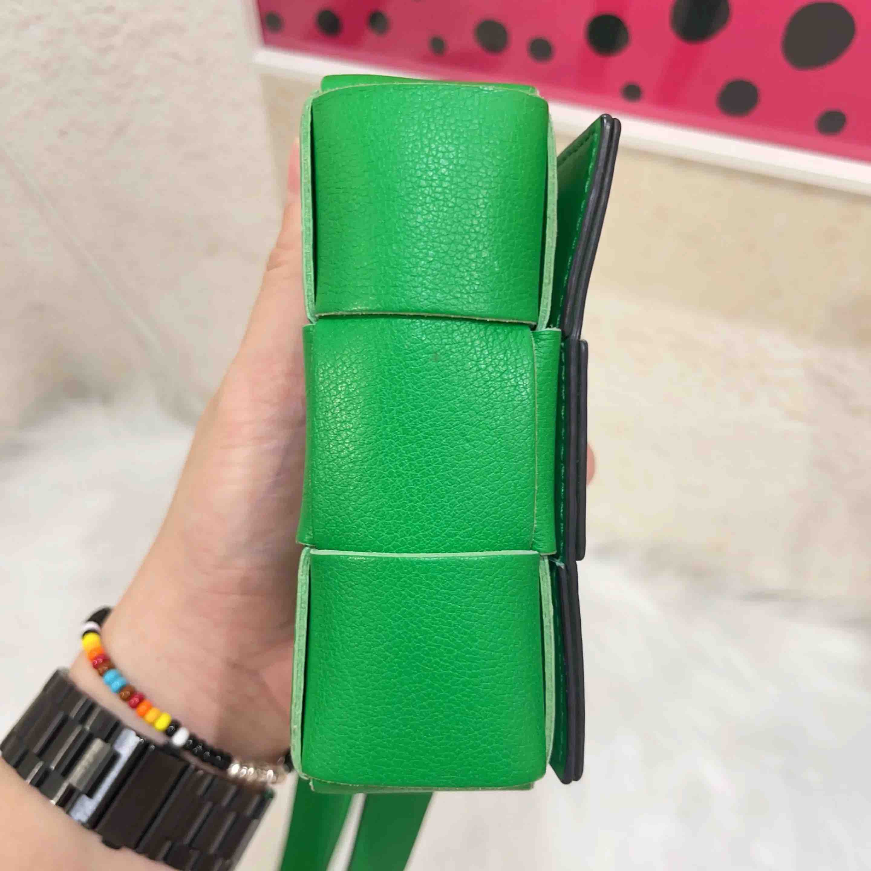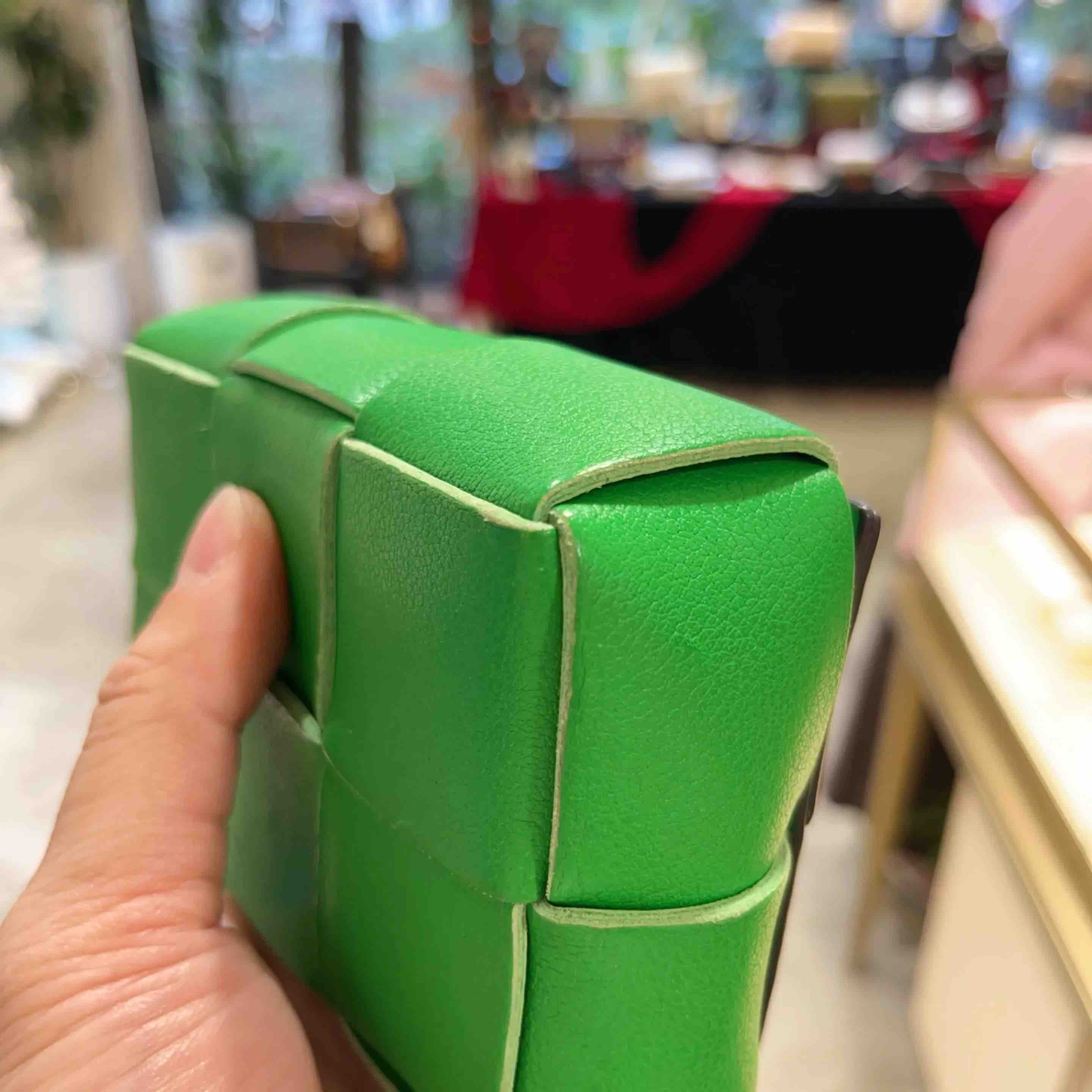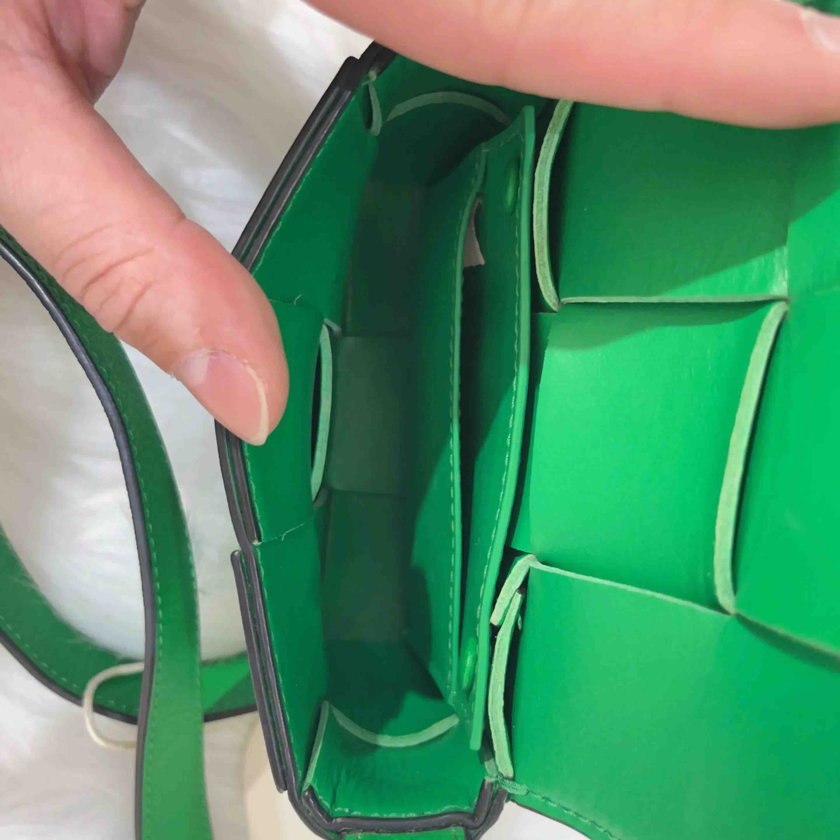 【商品详情】正品二手 BV CANDY CASSETTE 牛皮 绿色 六格 编织包🤑97新 12x9。冬夏均可背。