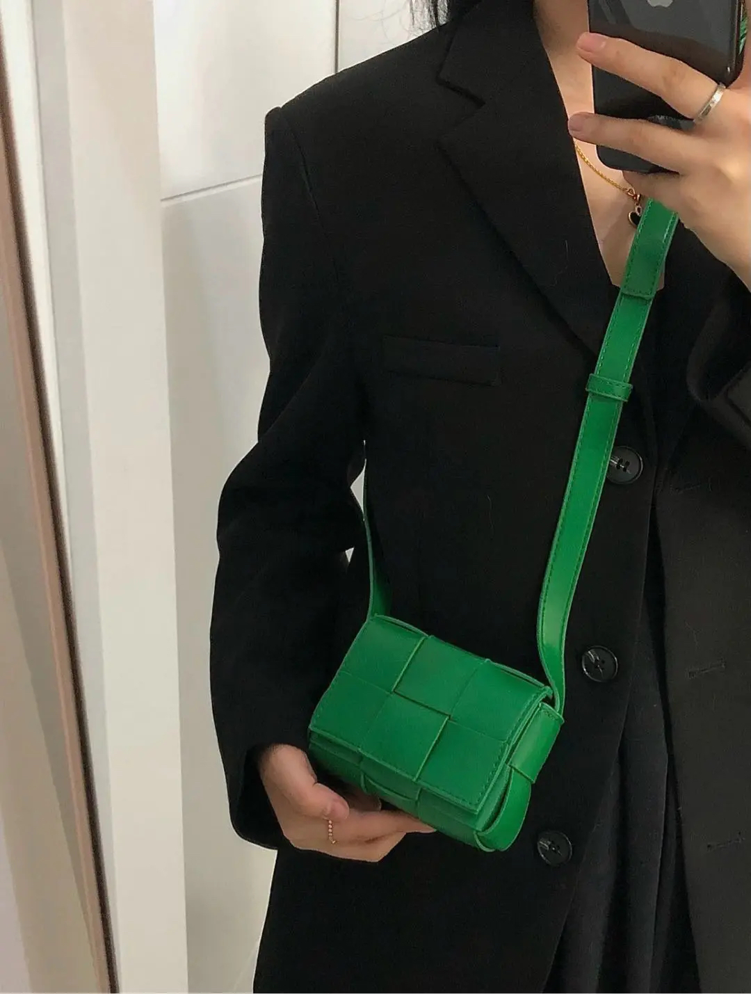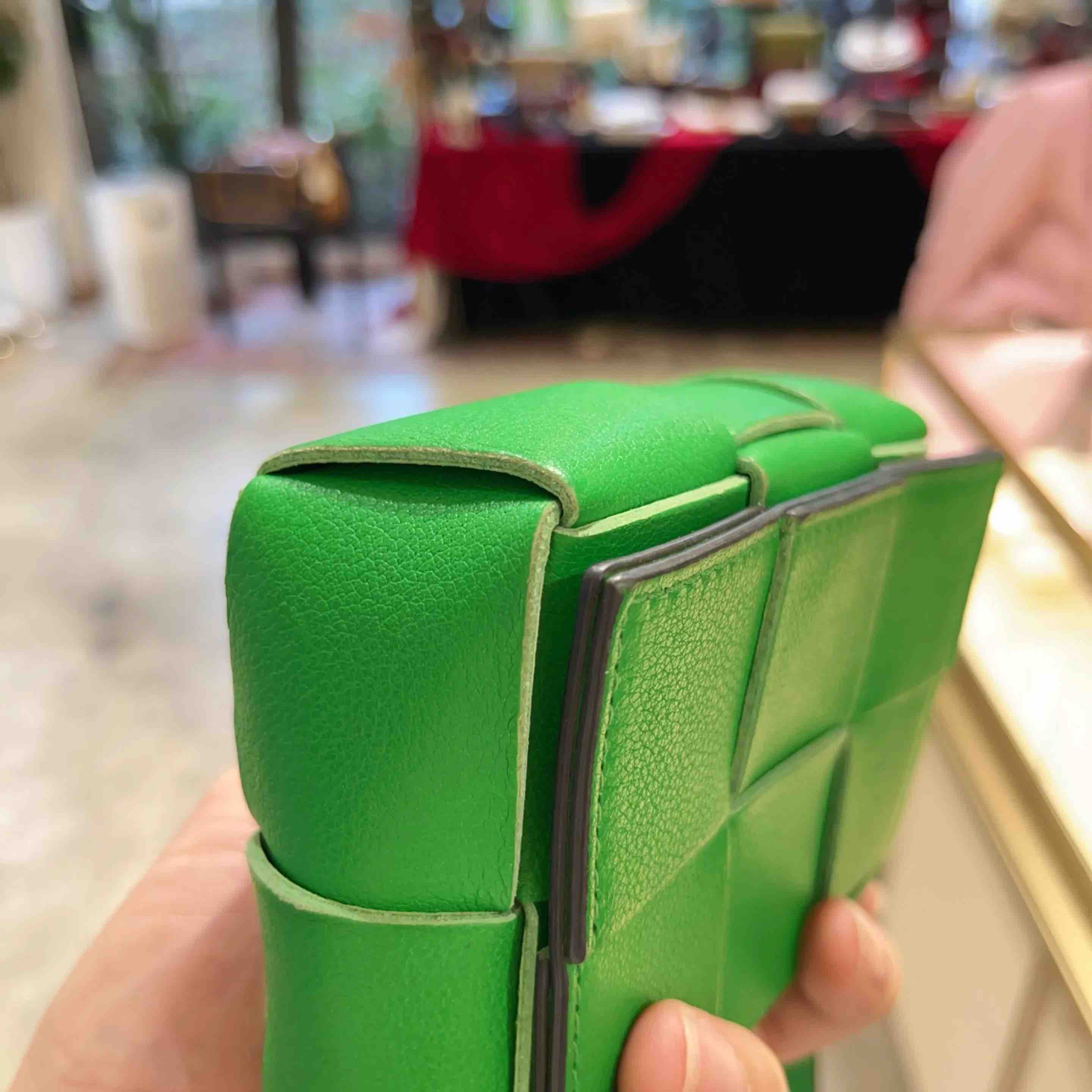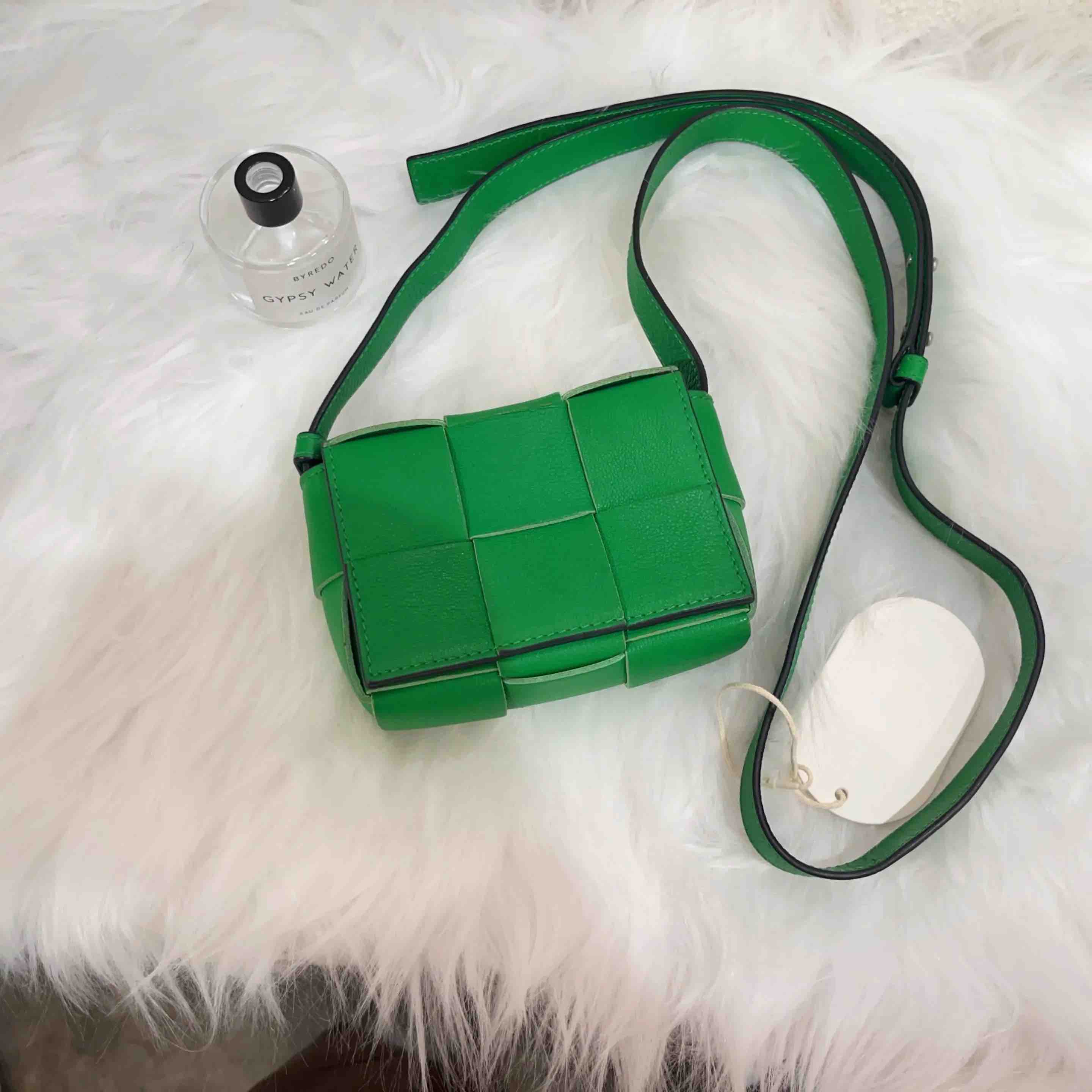 【商品详情】正品二手 BV CANDY CASSETTE 牛皮 绿色 六格 编织包🤑97新 12x9。冬夏均可背。