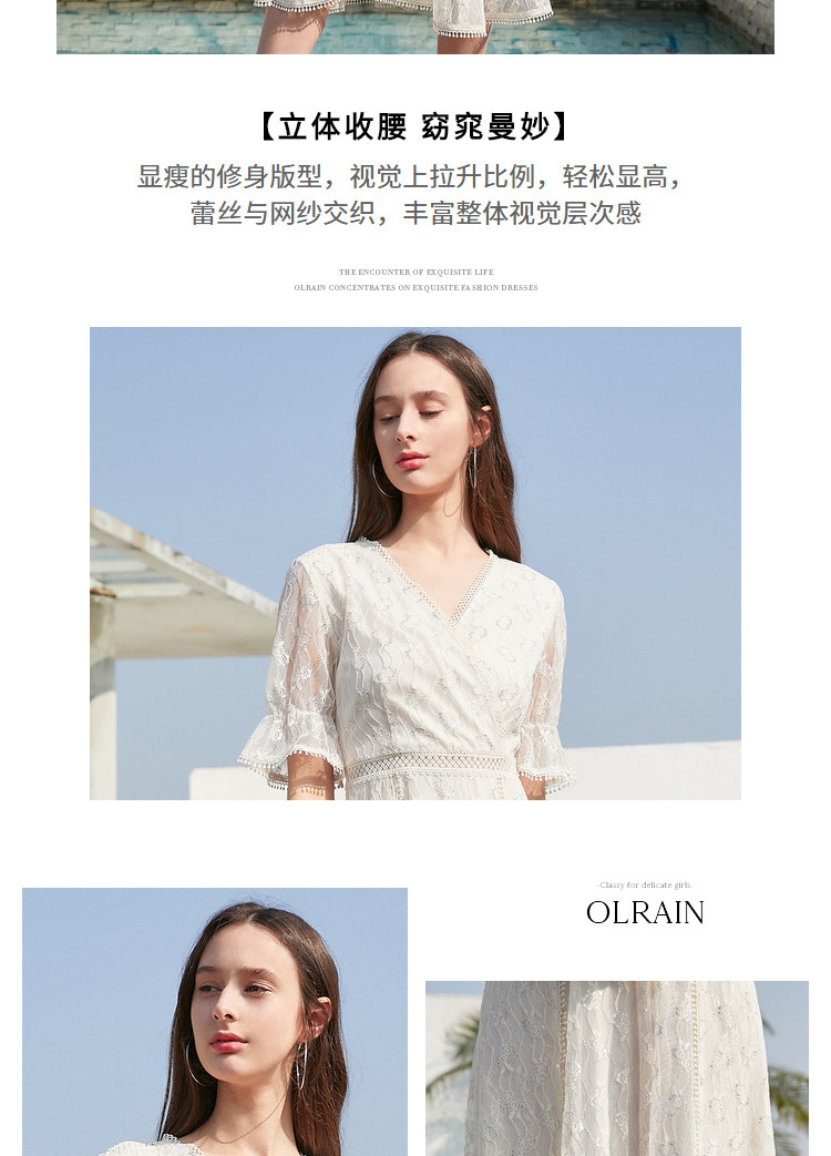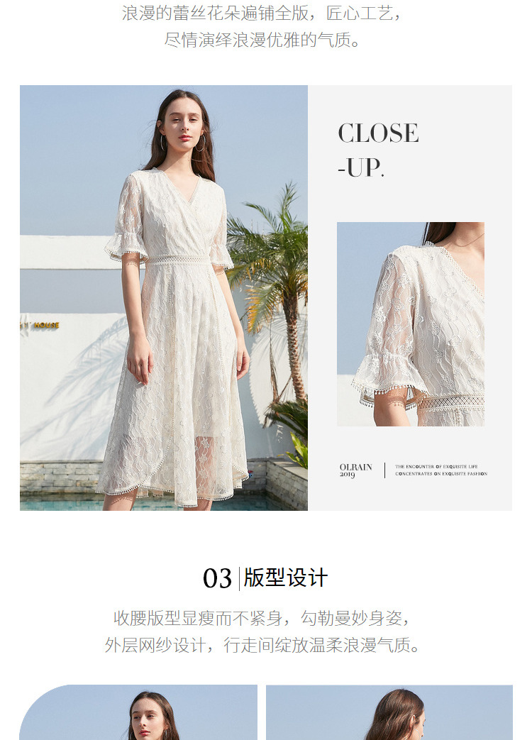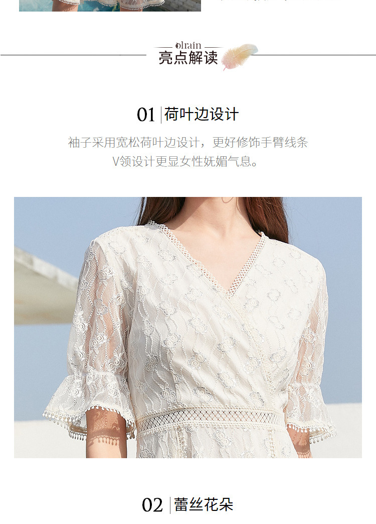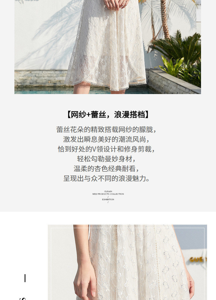 欧芮儿女装夏装收腰显瘦连衣裙女中长款蕾丝拼接超仙裙子