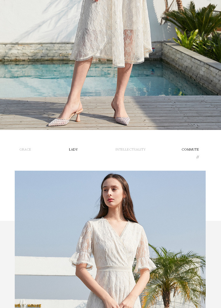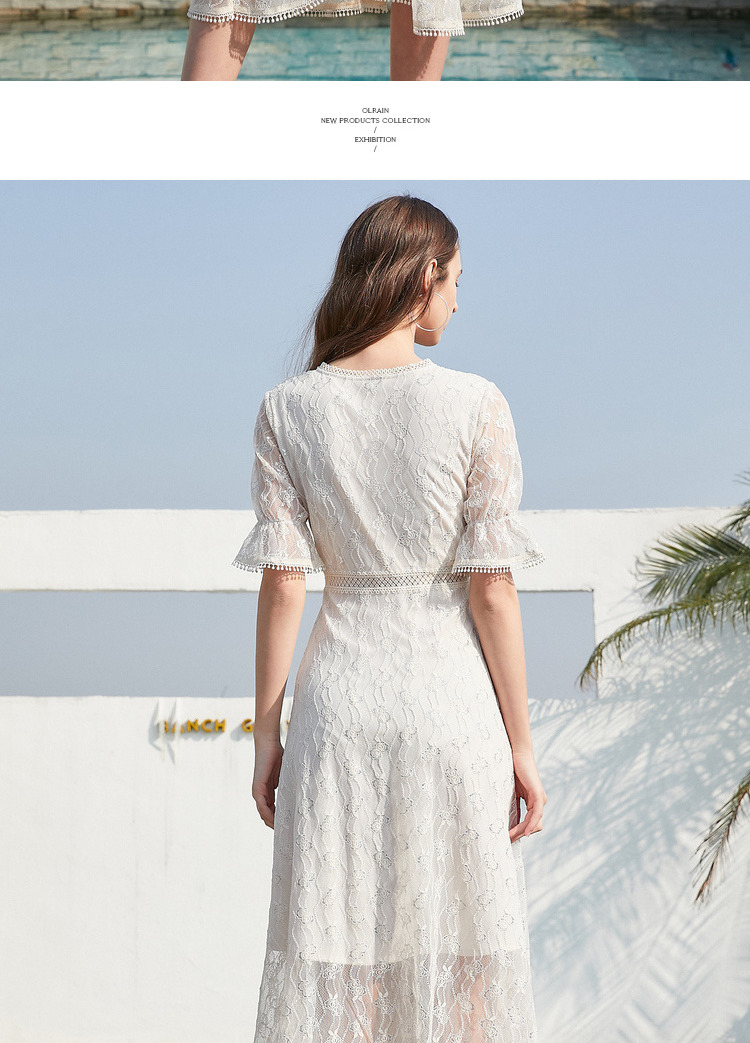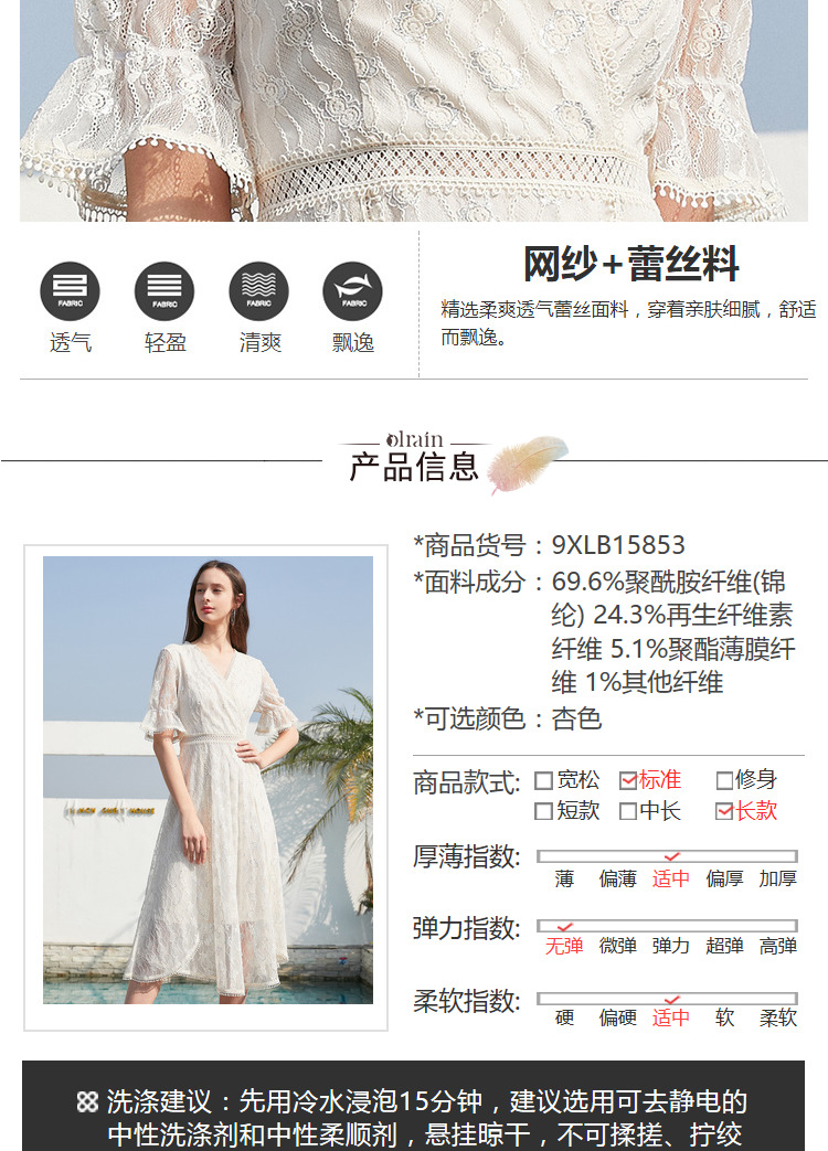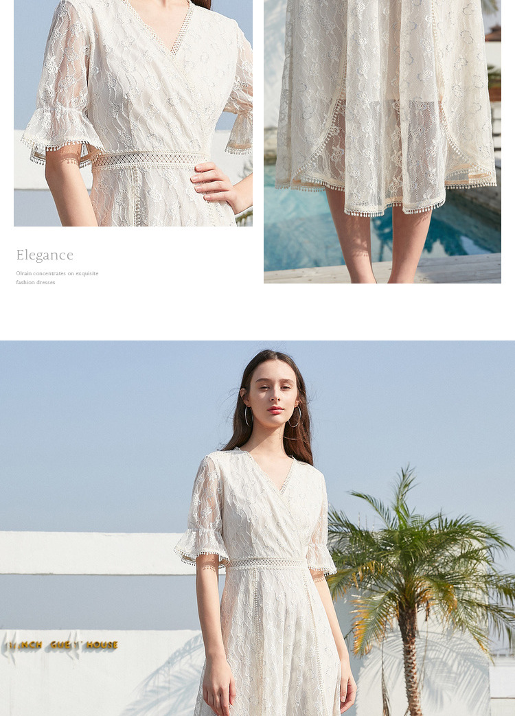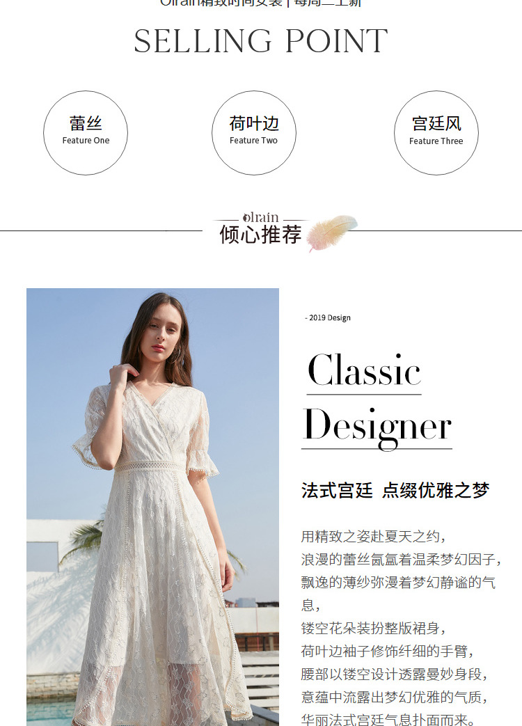 欧芮儿女装夏装收腰显瘦连衣裙女中长款蕾丝拼接超仙裙子