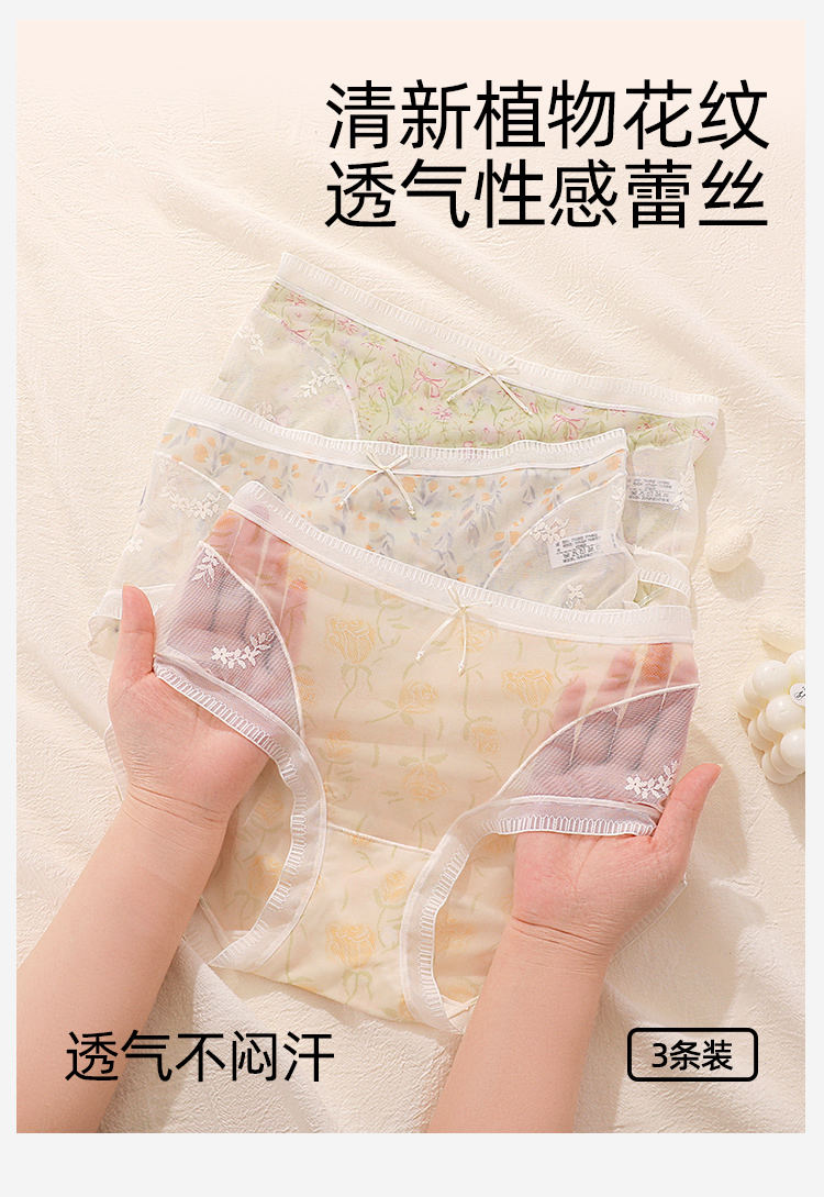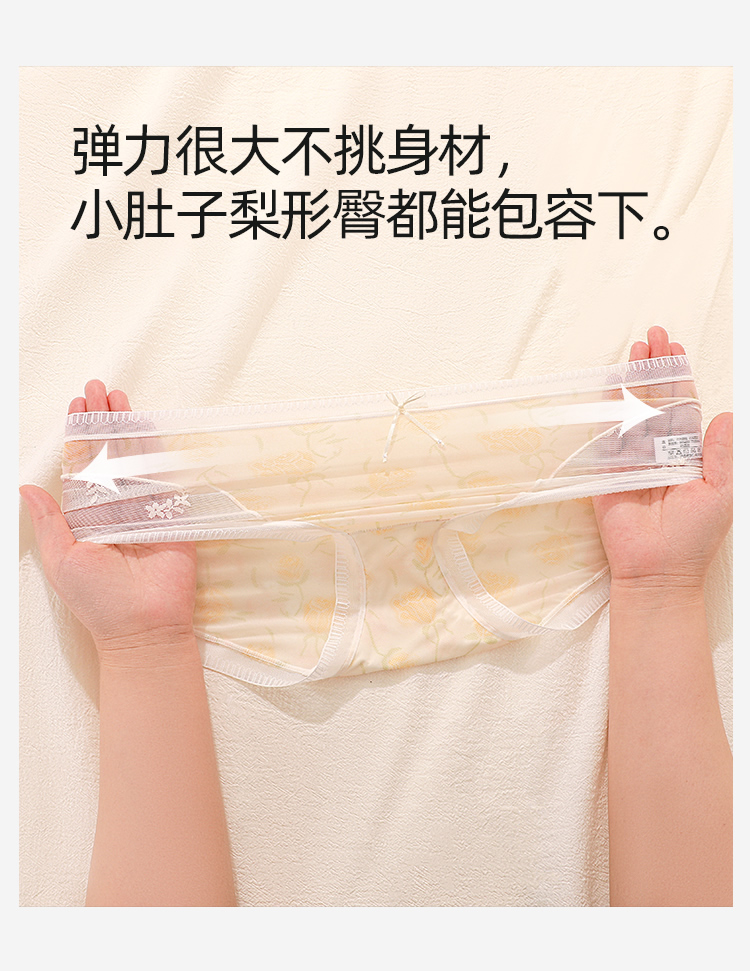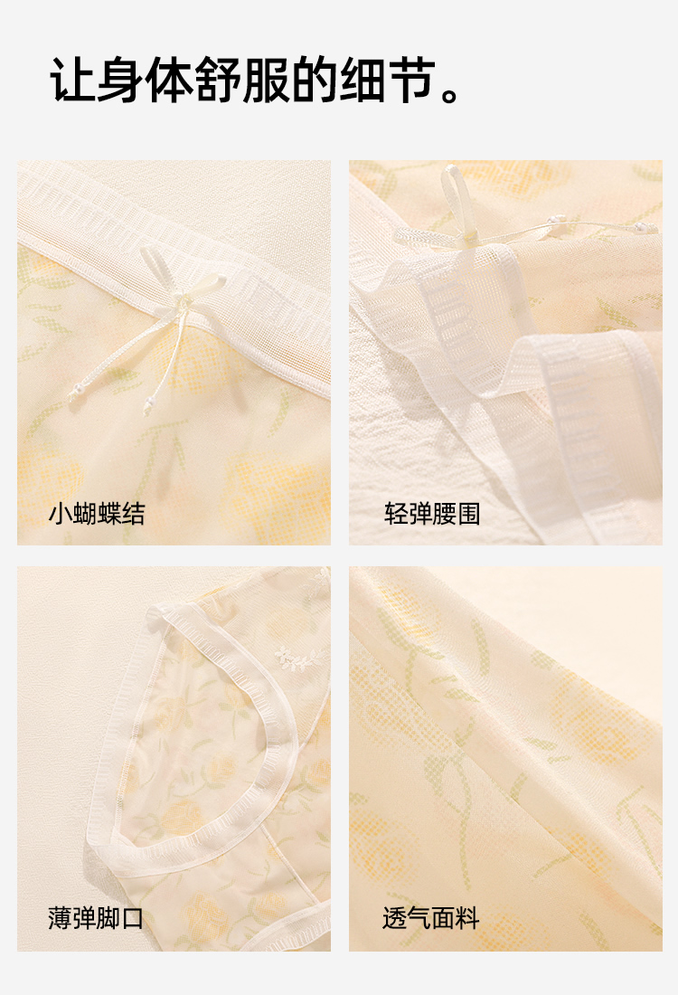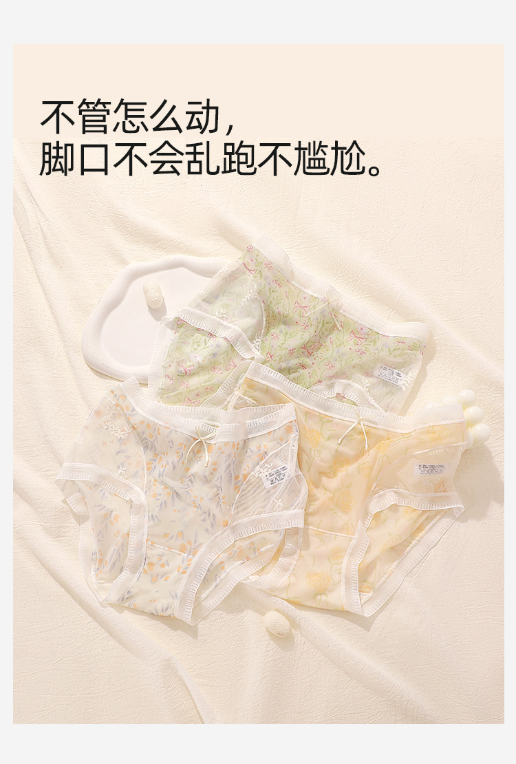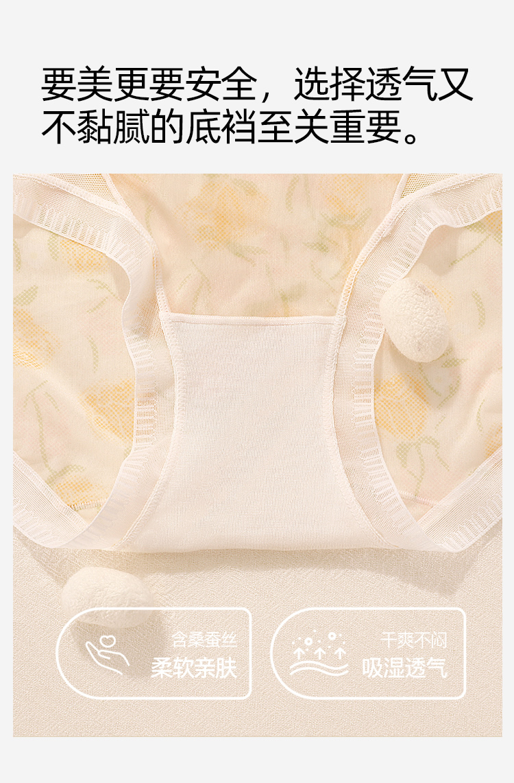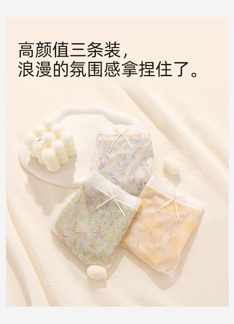 【3条装】熳洁儿 冰丝女士内裤中腰轻薄速干清新小碎花含桑蚕丝25262107
