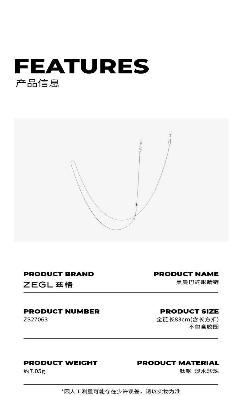ZEGL设计师淡水珍珠复古挂脖眼镜链女潮款墨镜链冷淡风甜酷配饰品