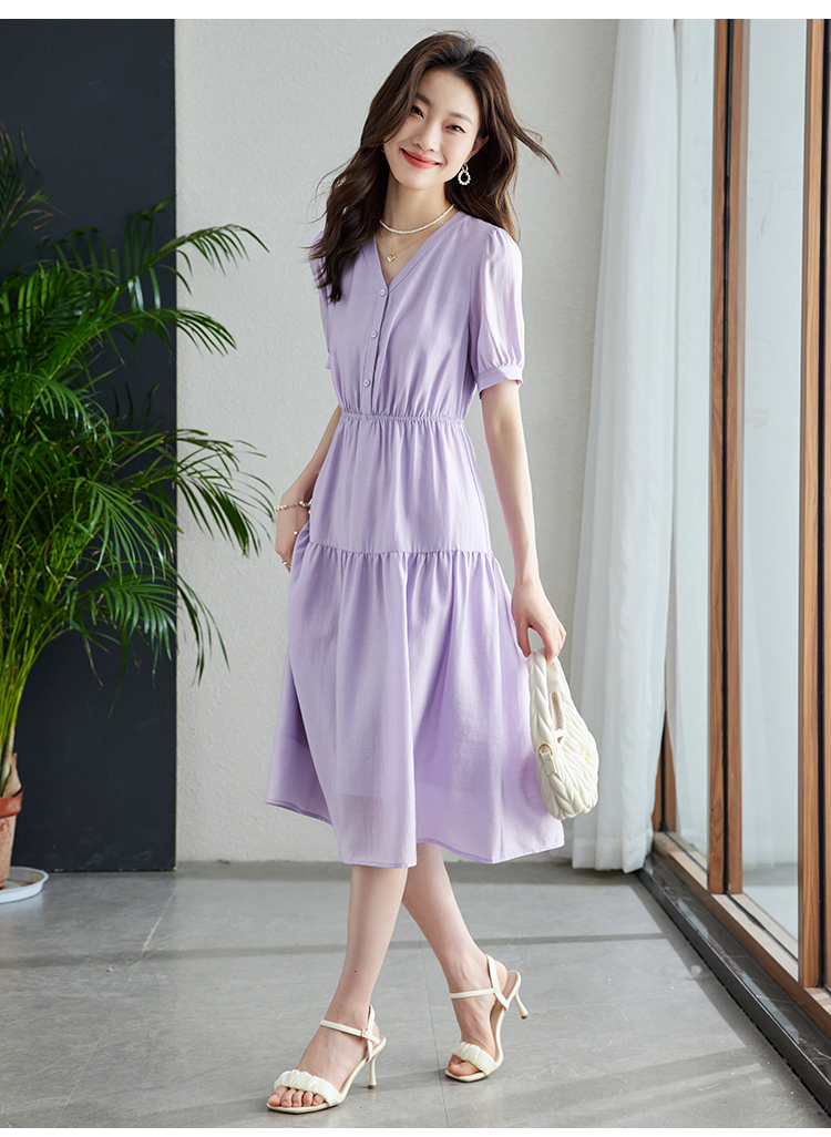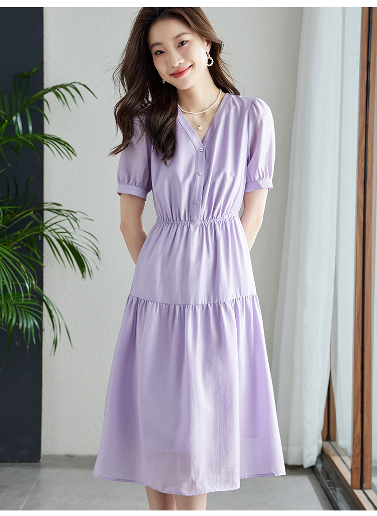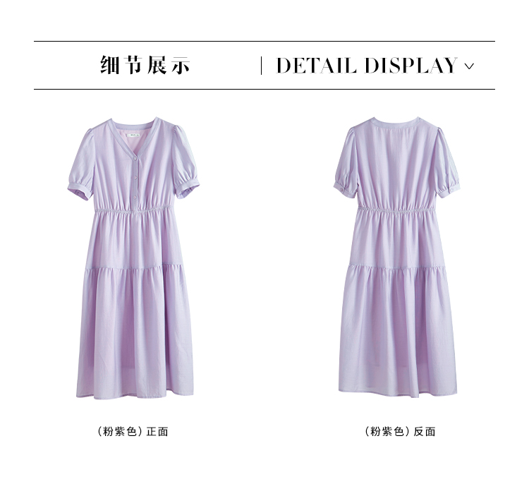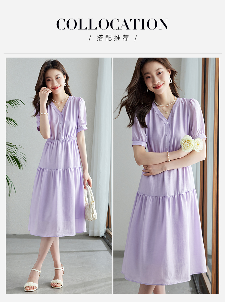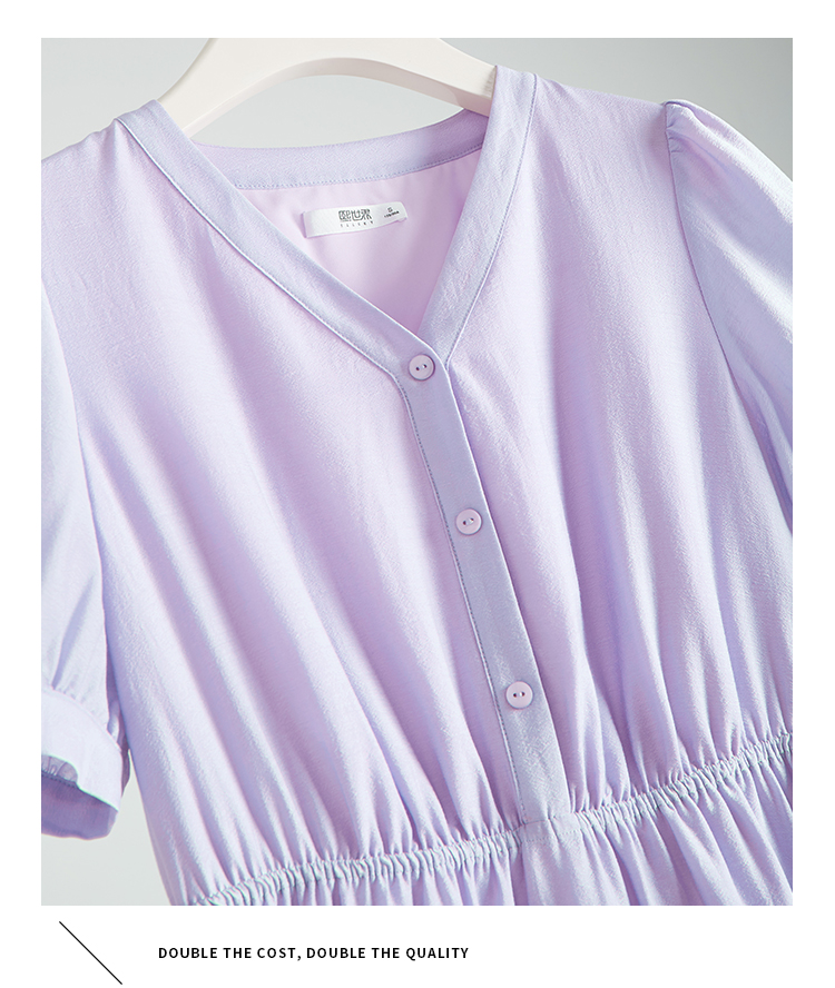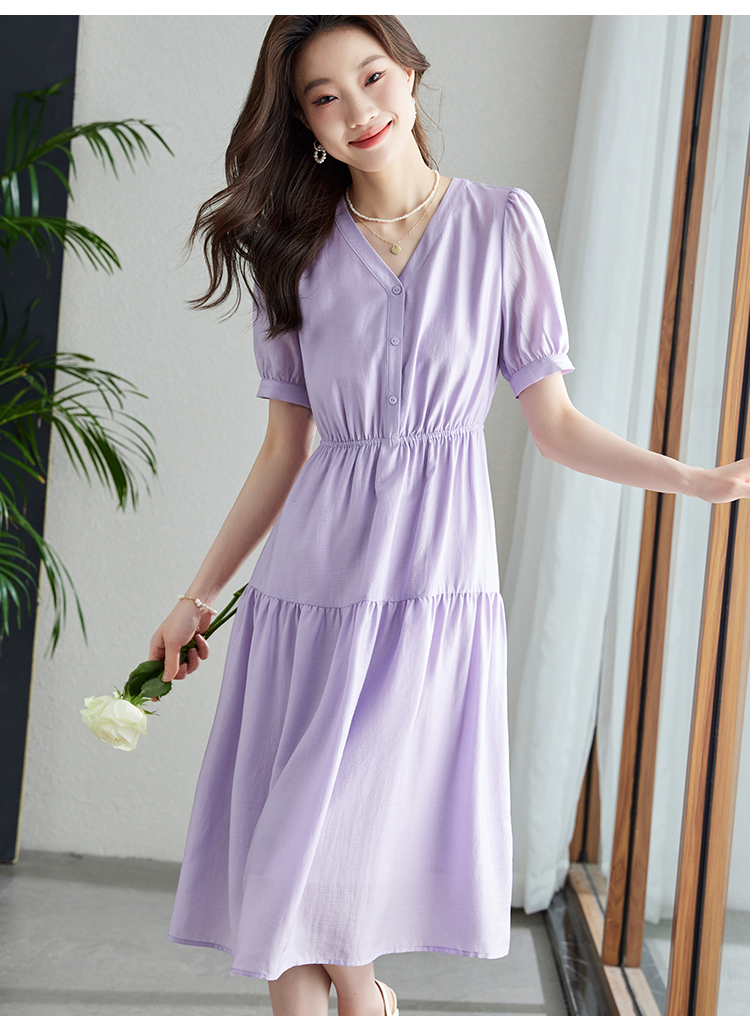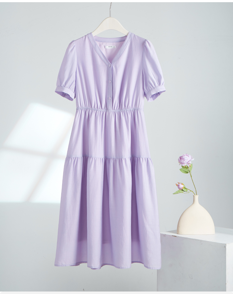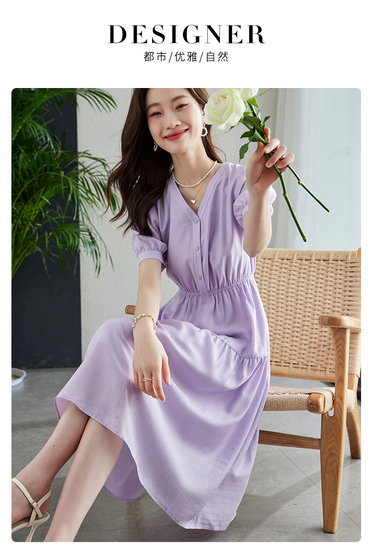 【1件82折,2件8折】熙世界紫色复古a字连衣裙女夏季新款法式收腰显瘦温柔风V领茶歇裙