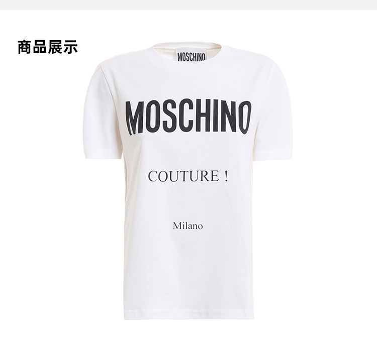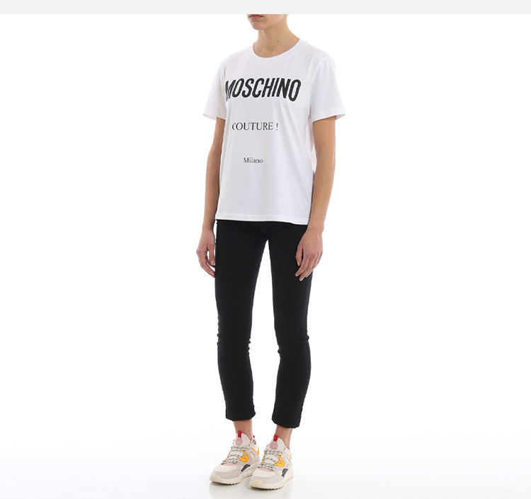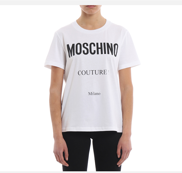 MOSCHINO COUTURE 莫斯奇诺 女士棉质字母徽标印花圆领短袖T恤 白色 0703 0540 2001