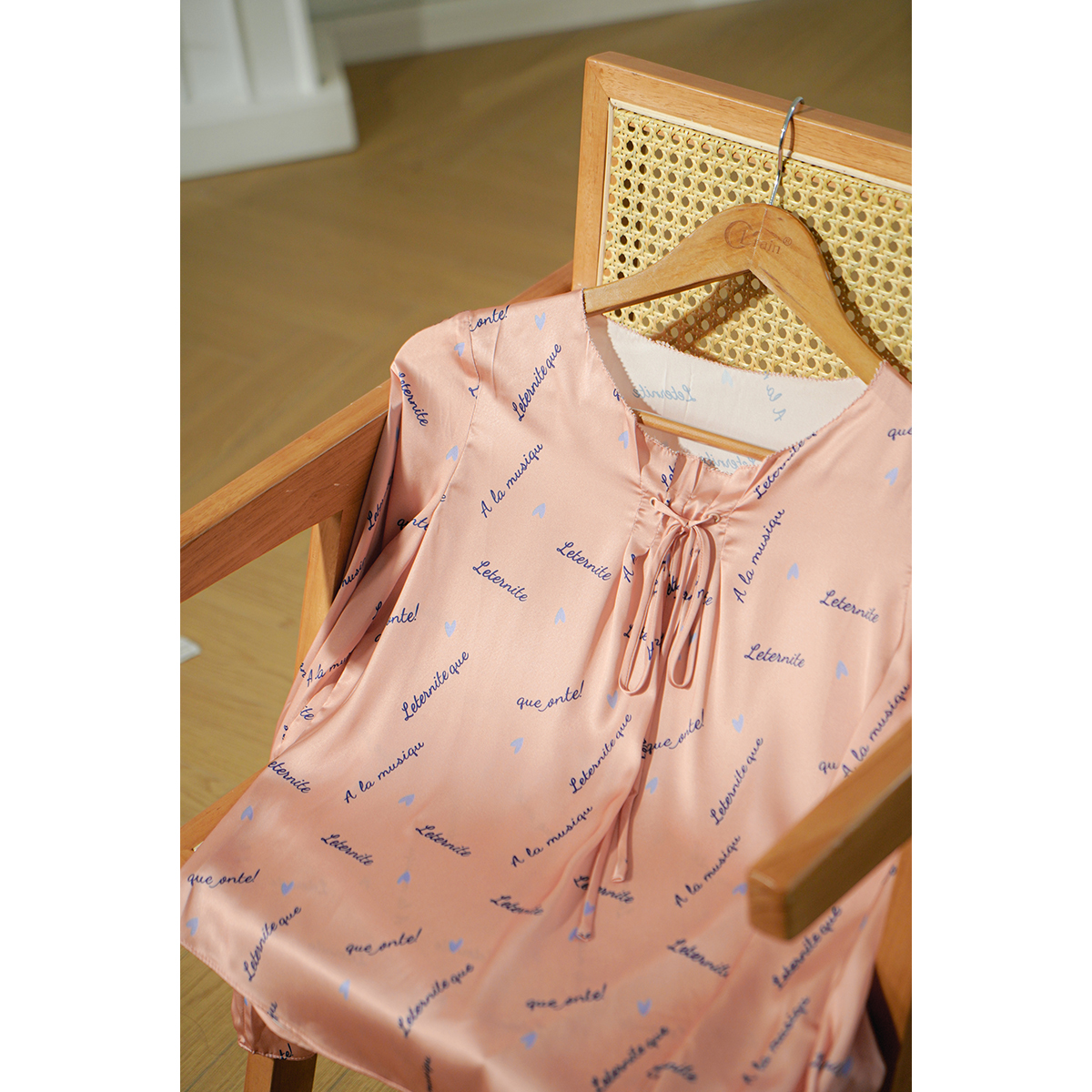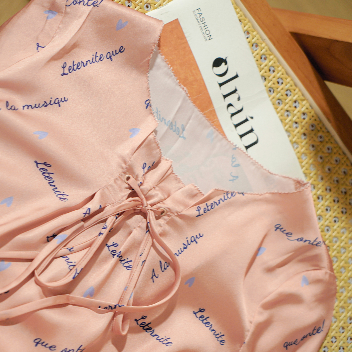 OLrain欧芮儿法式玫粉色短袖T恤女夏季2023新款宽松重工印花上衣