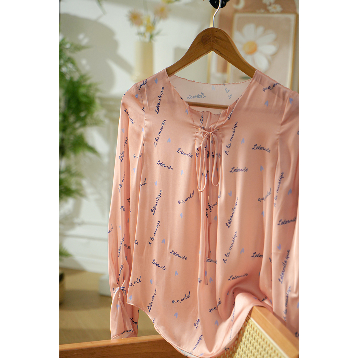欧芮儿2026春新款温柔粉飘带挂脖长袖T恤女高级感气质一字领上衣