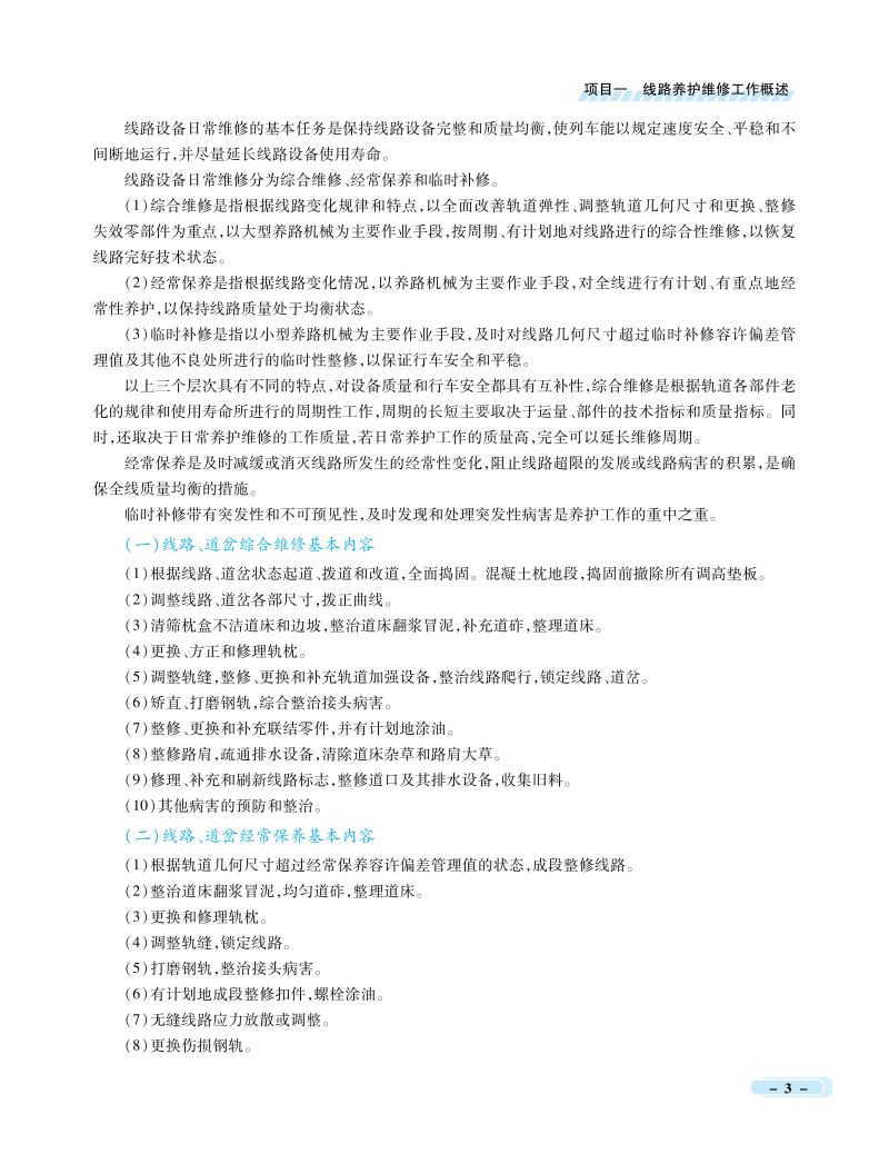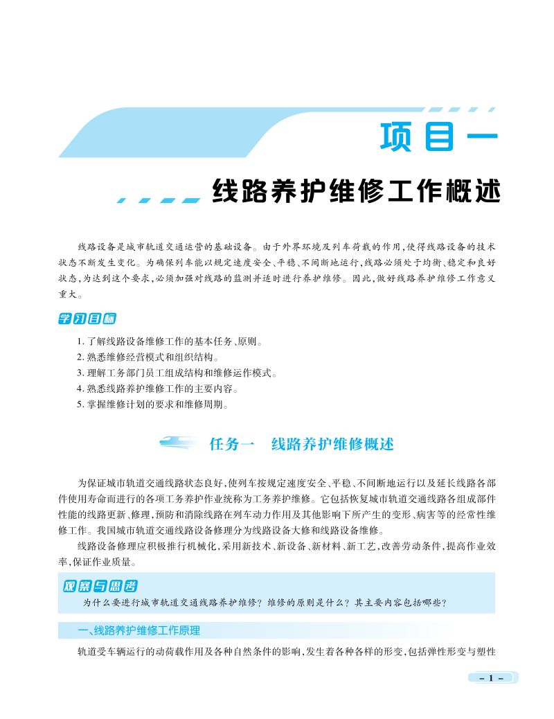 本书主要包括城市轨道交通线路设备维修工作概述,线路设备检查、线路主要单项作业、曲线养护、道岔养护、维修验收与线路质量评定和线路工务安全、应急预案等。