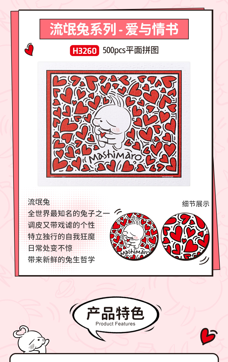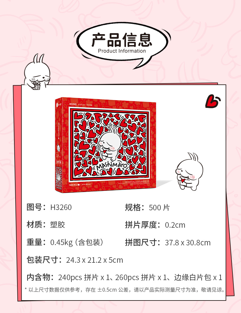 【折扣商品 不退不换】500片平面拼图塑料拼图 H3260 流氓兔系列-爱与情书