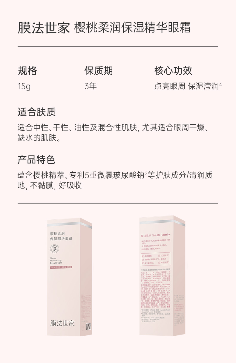 【补水淡纹】膜法世家樱桃柔润保湿精华眼霜15g*2支
