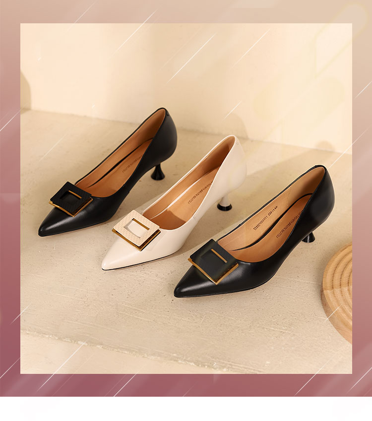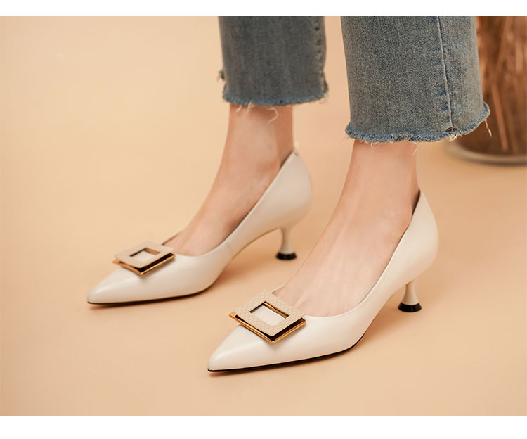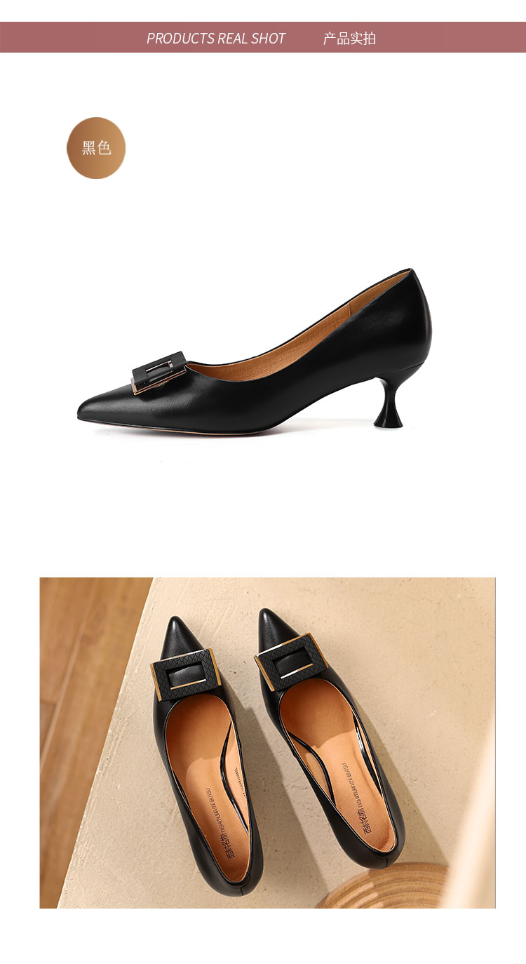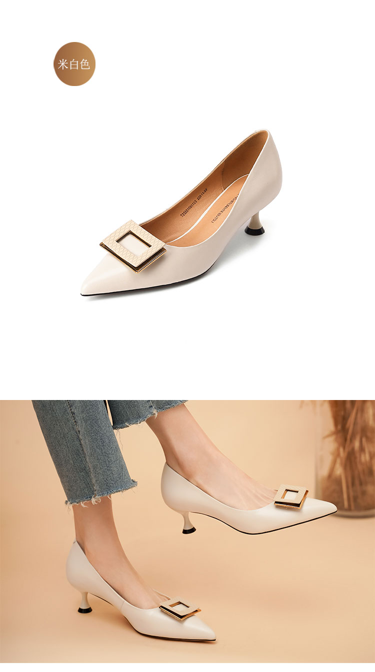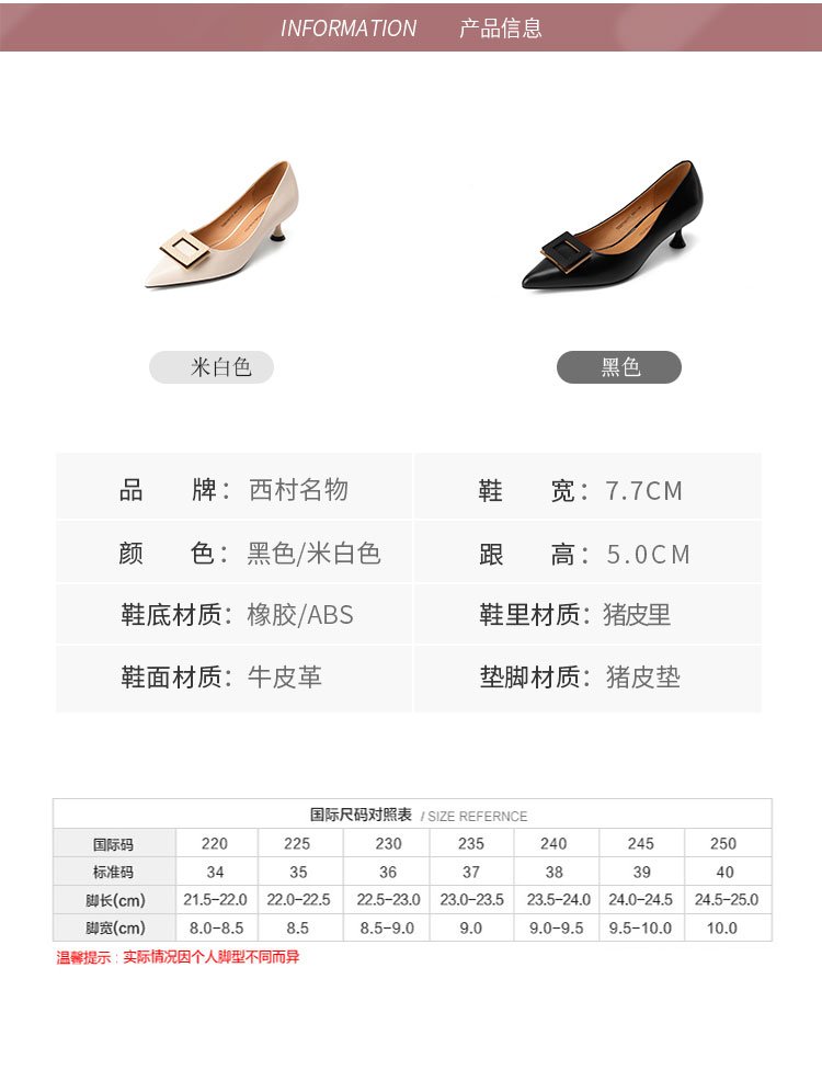 西村名物2021秋冬新款时尚舒适尖头饰扣浅口高跟鞋气质优雅单鞋女T22AE16801