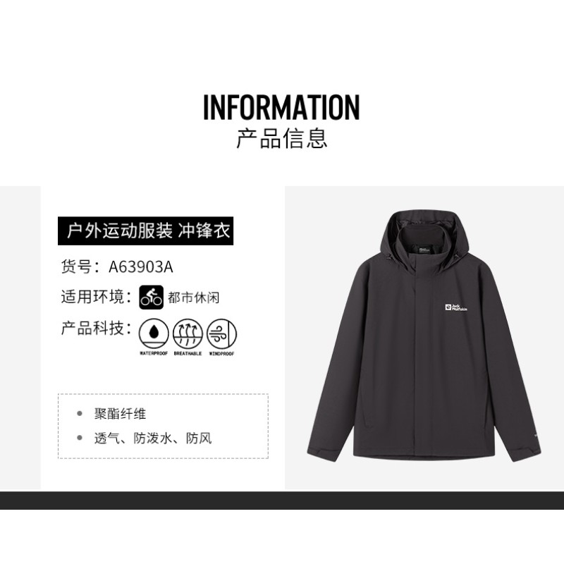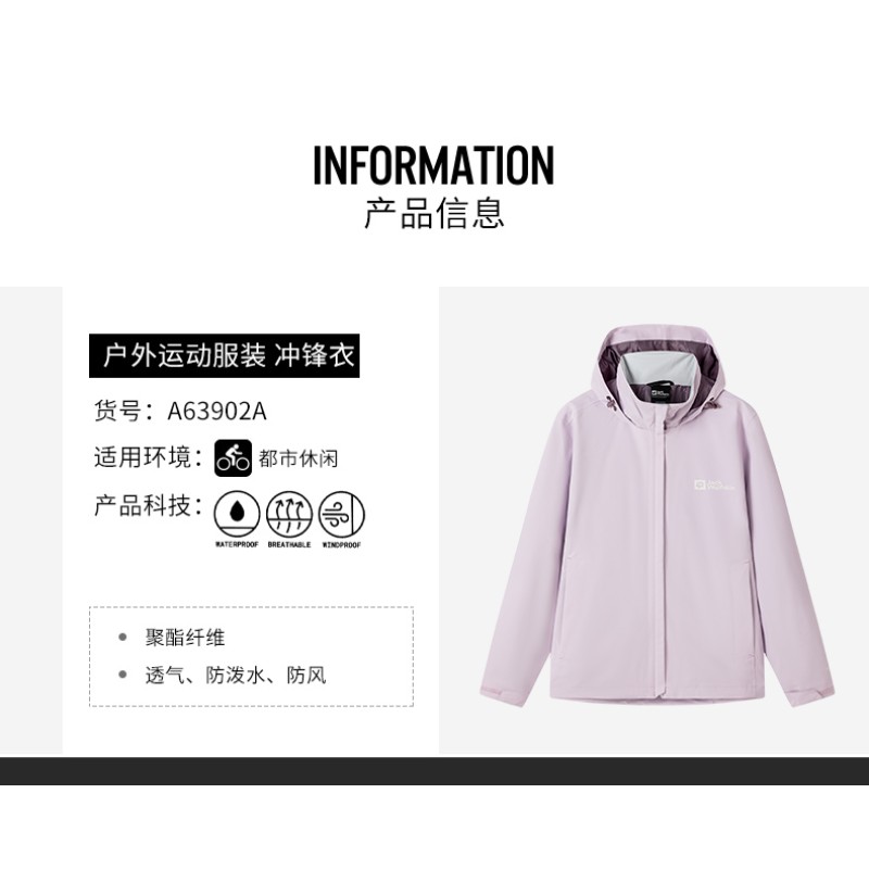 JackWolfskin狼爪冲锋衣男女25春夏防水透气外套A63903A