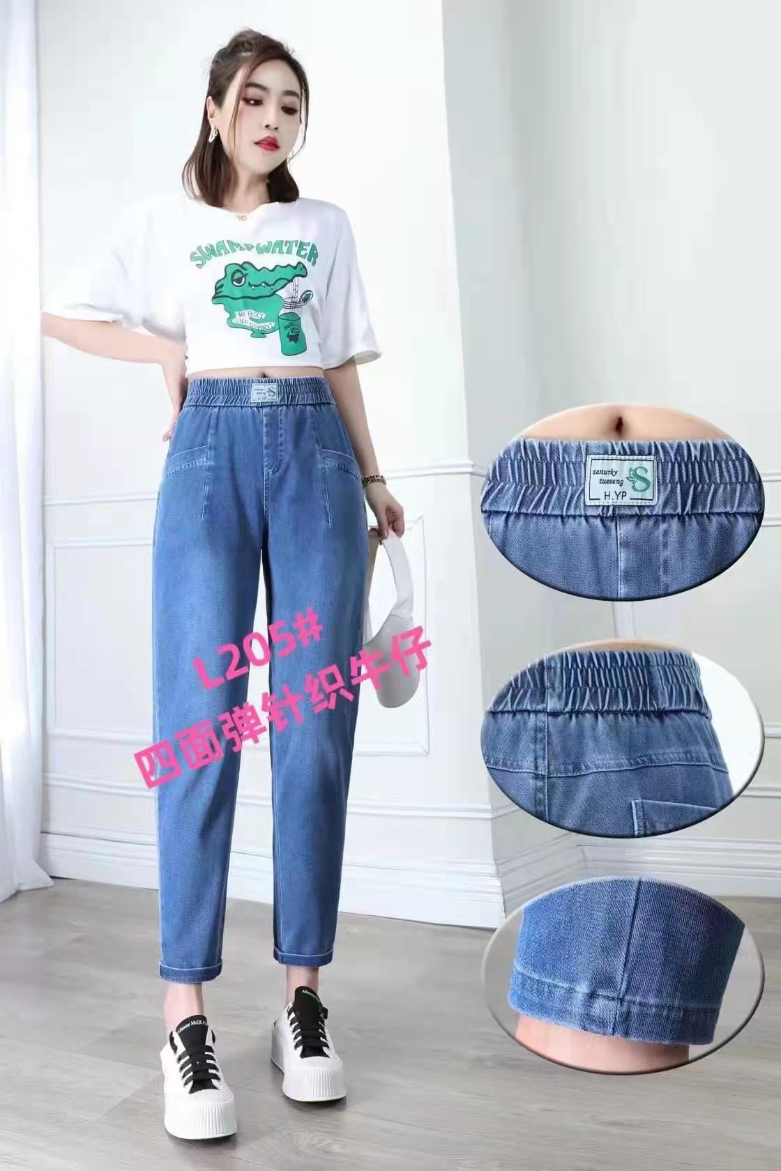 流星雨205小脚牛仔裤天气面料穿着时尚百搭,个性减龄款,显腿长搭配小板鞋,尺码27-32从90斤穿到150左右
