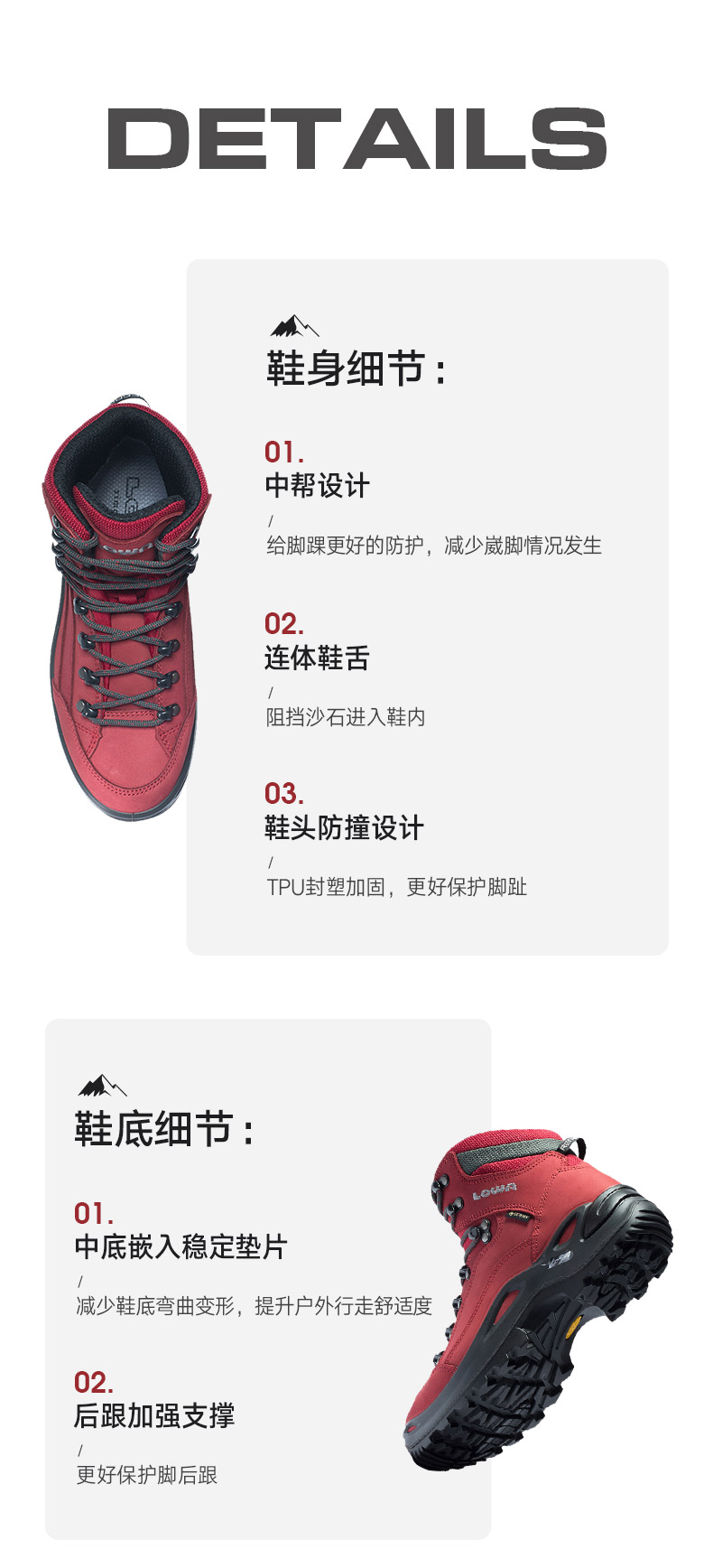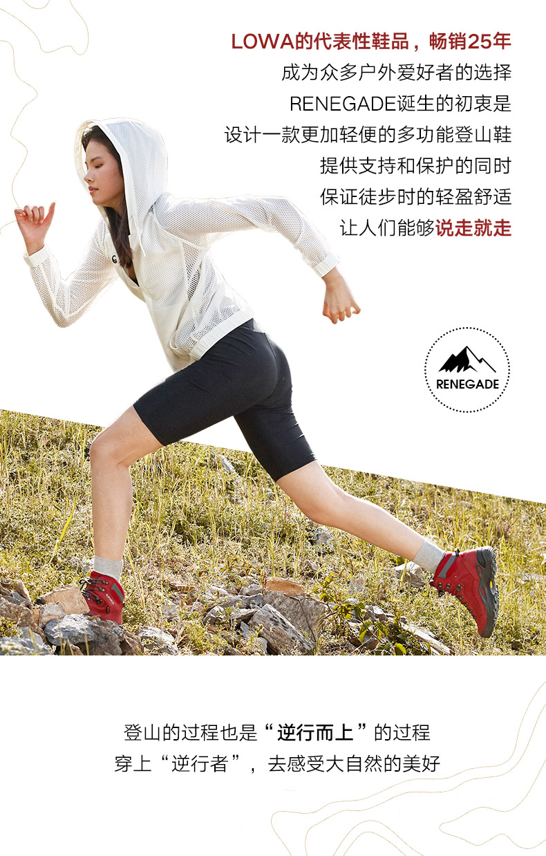 【逆行者】LOWA户外RENEGADE逆行者 GTX女式中帮防水耐磨登山徒步鞋 L320945