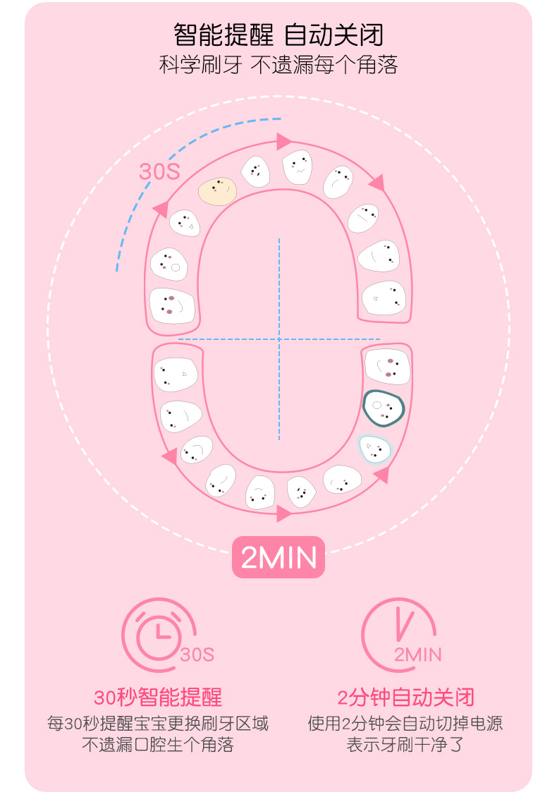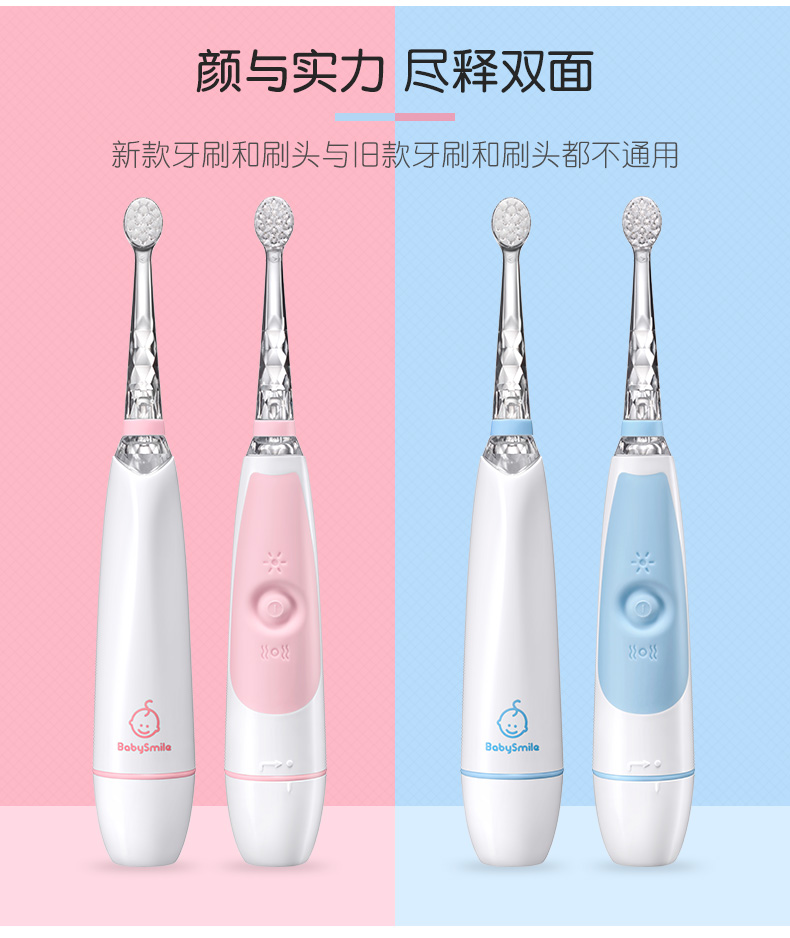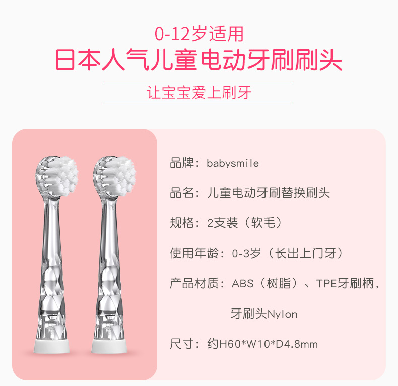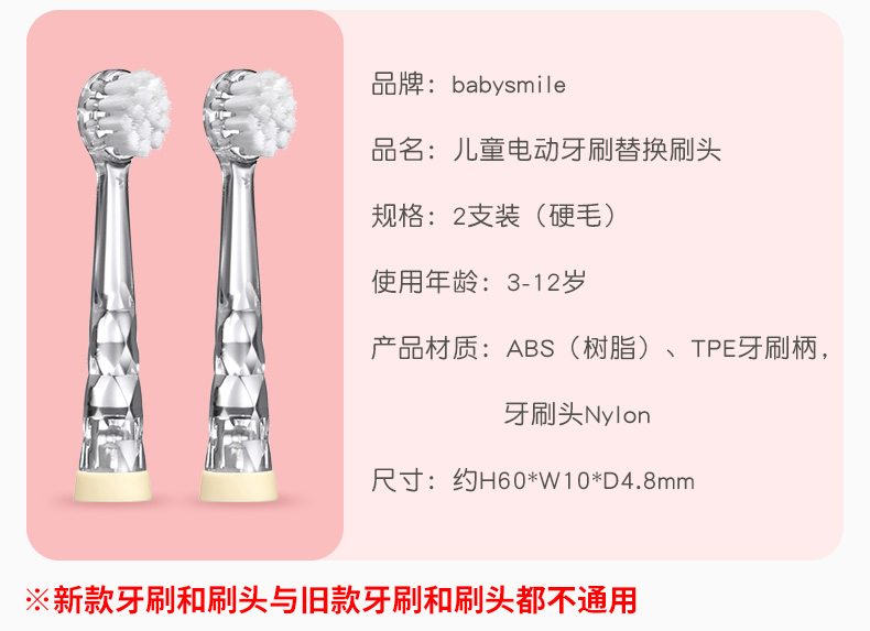 Babysmile新款S204婴幼儿童0-2-6-12岁电动牙刷替换刷头软毛/硬毛