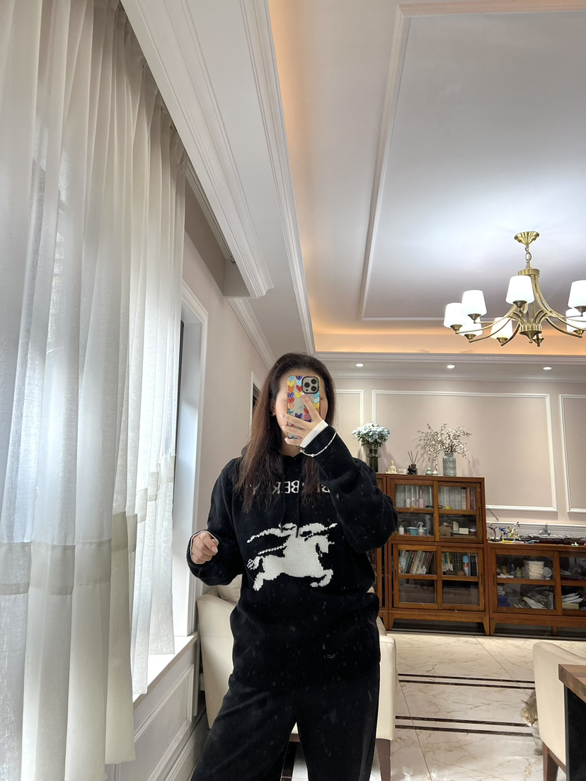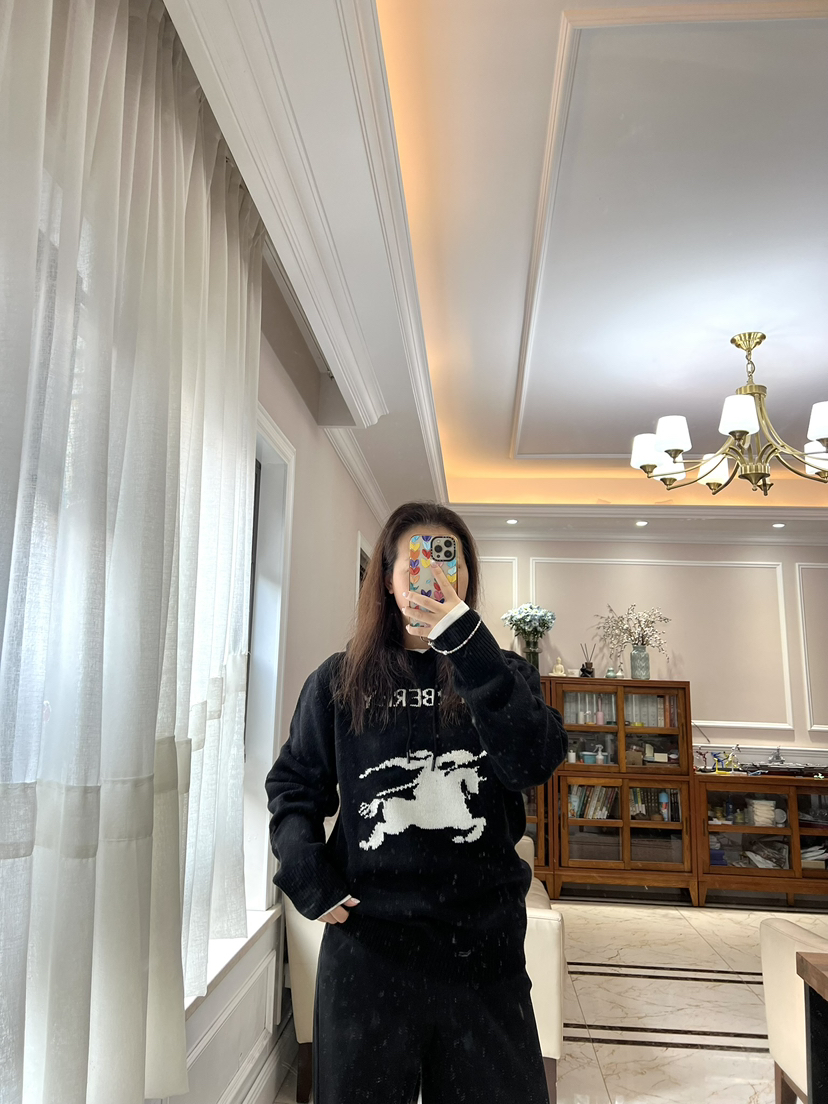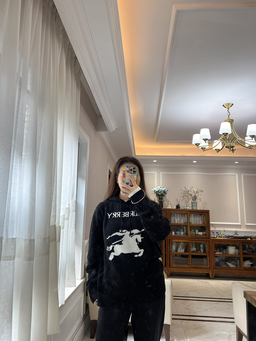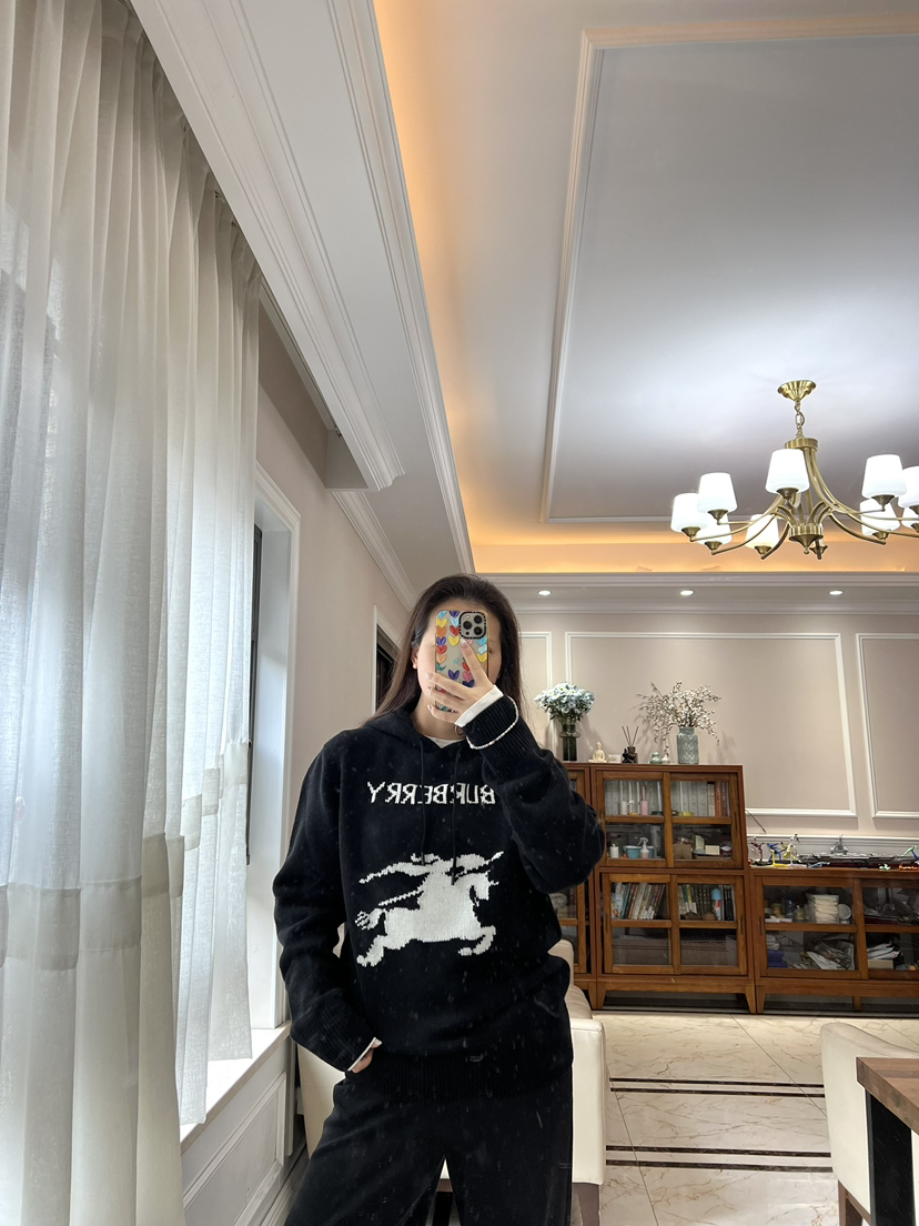 1218-3 独家圆正 BBR黑色羊毛羊绒 徽标字母 骑士战马 情侣款 连帽针织衫