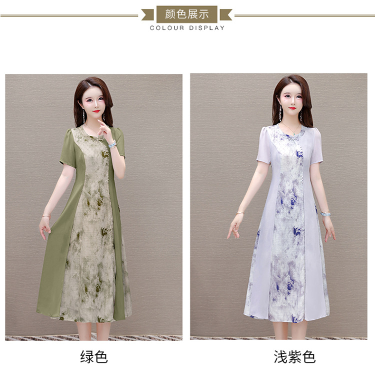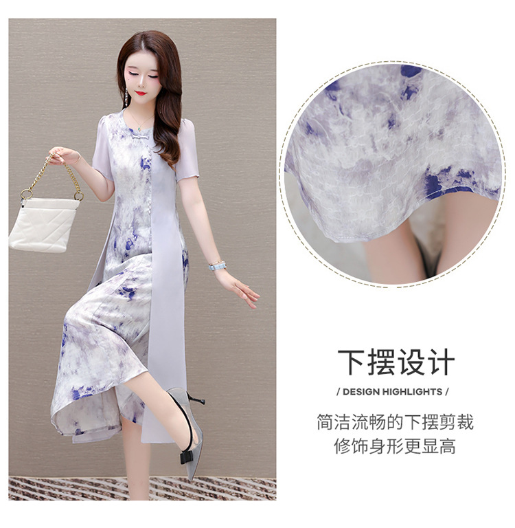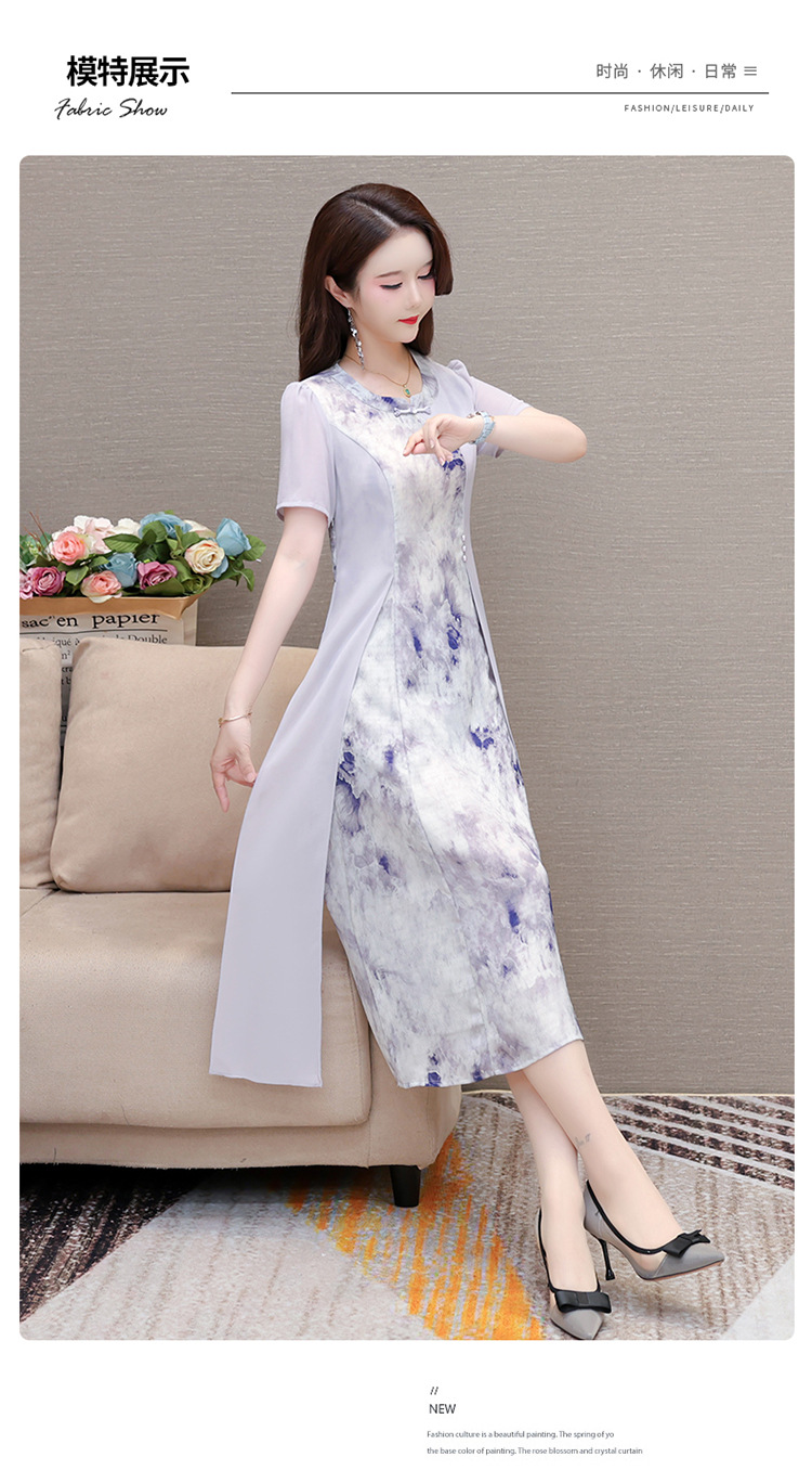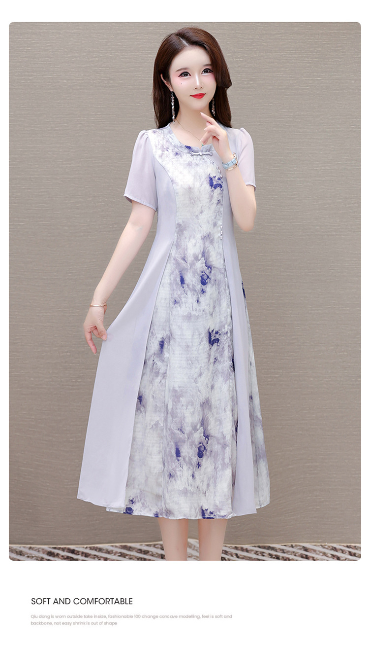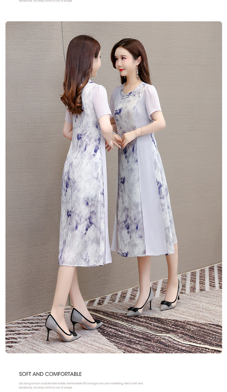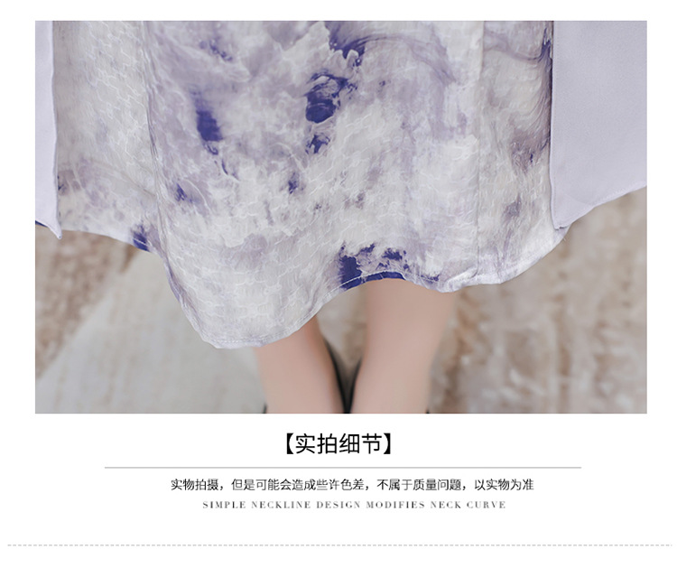 优雅气质,国风印花雪纺拼接连衣裙QYM-KSY-XLY8823-L