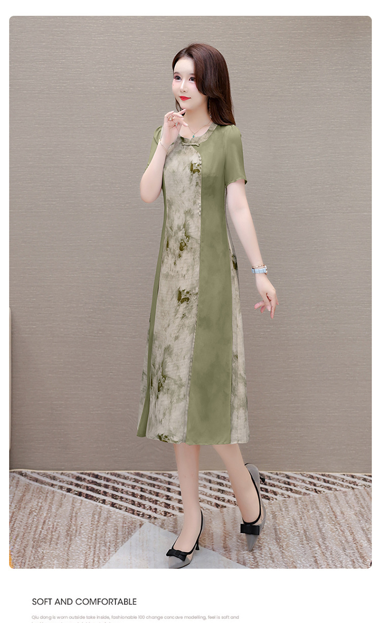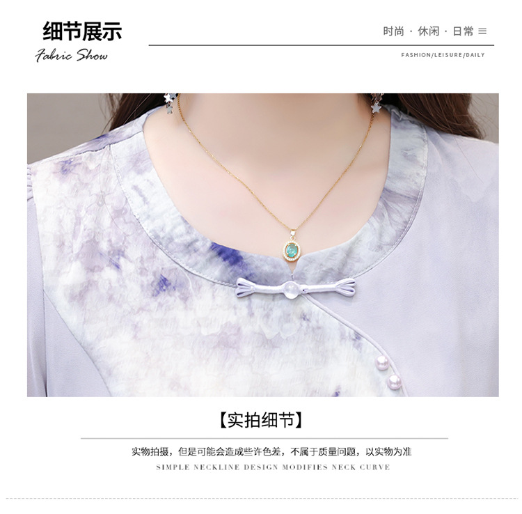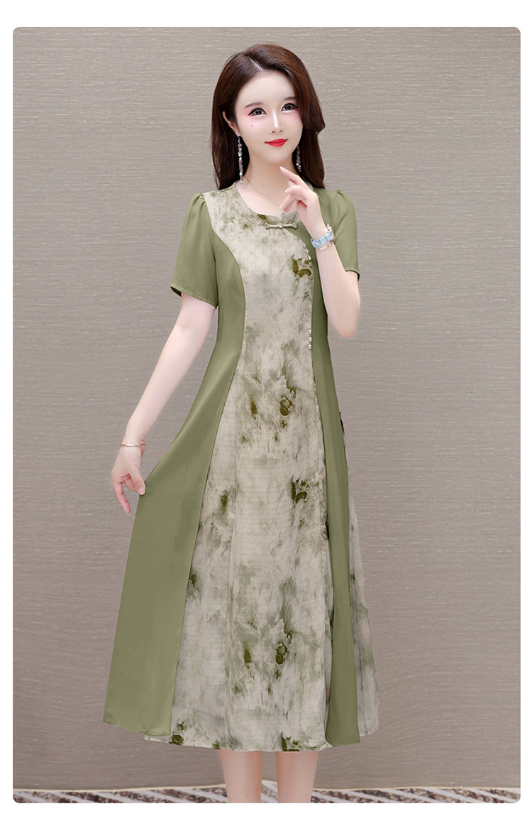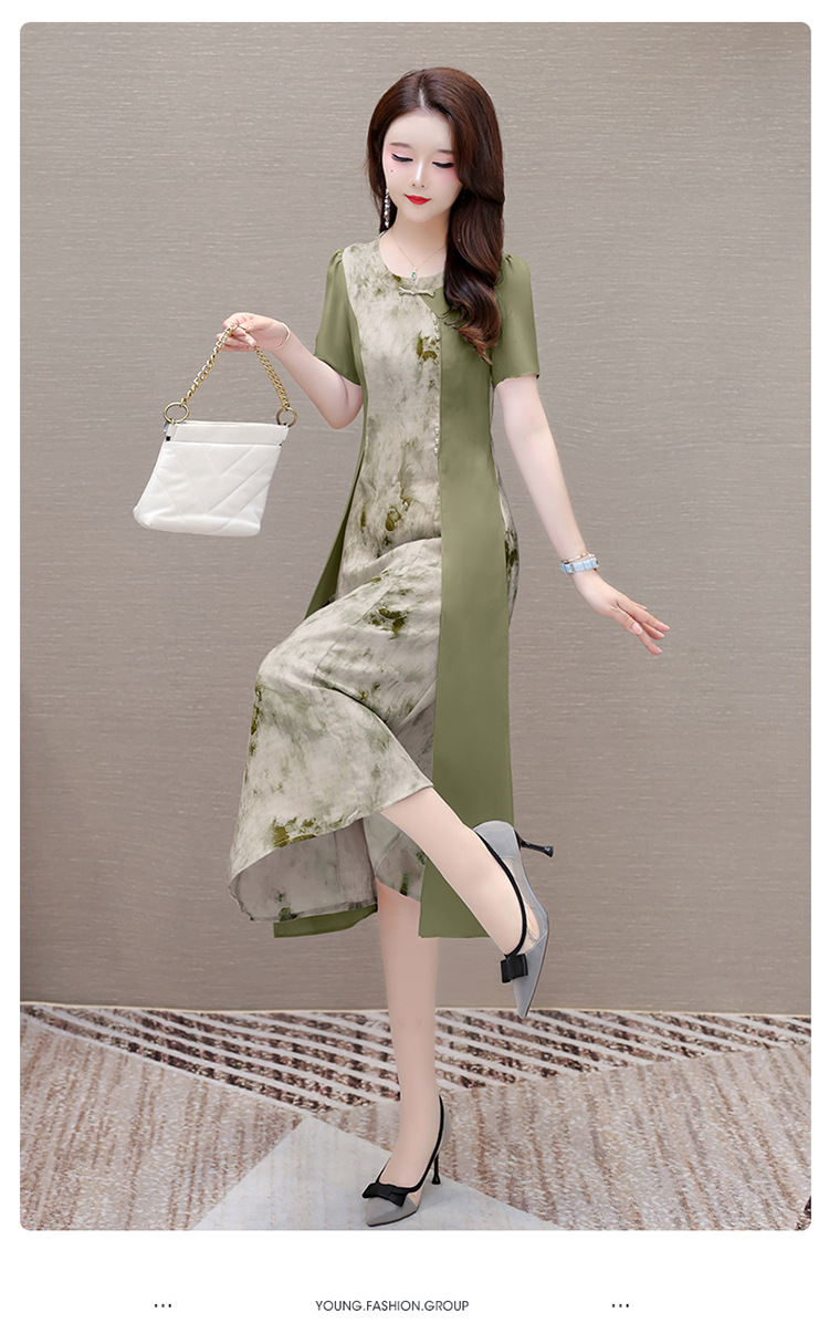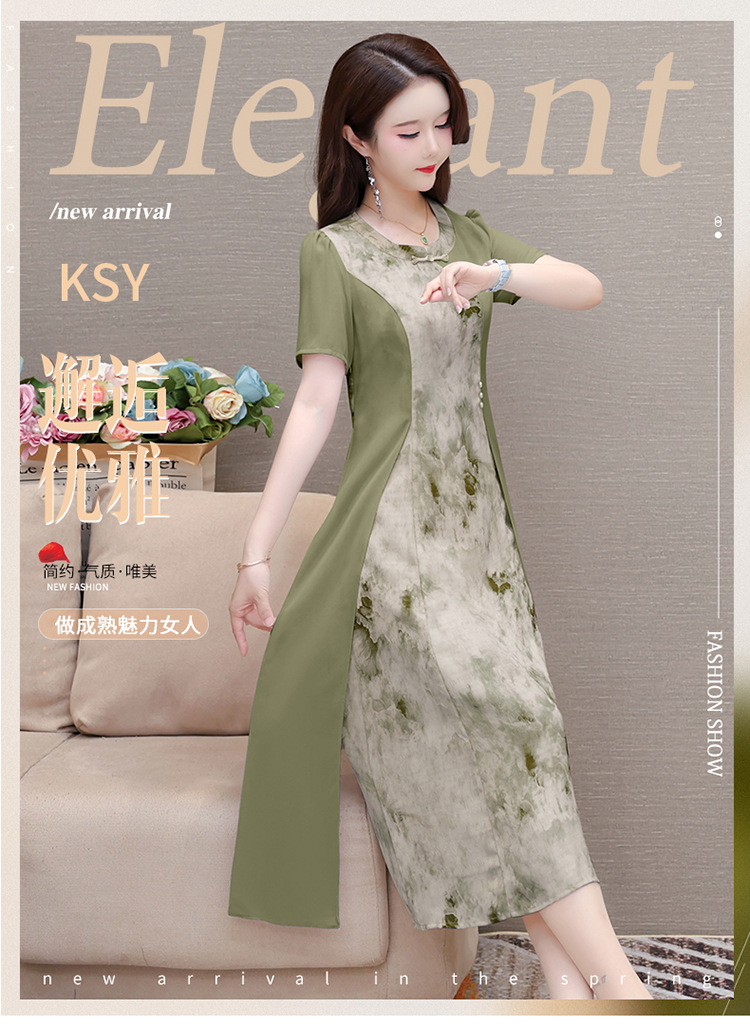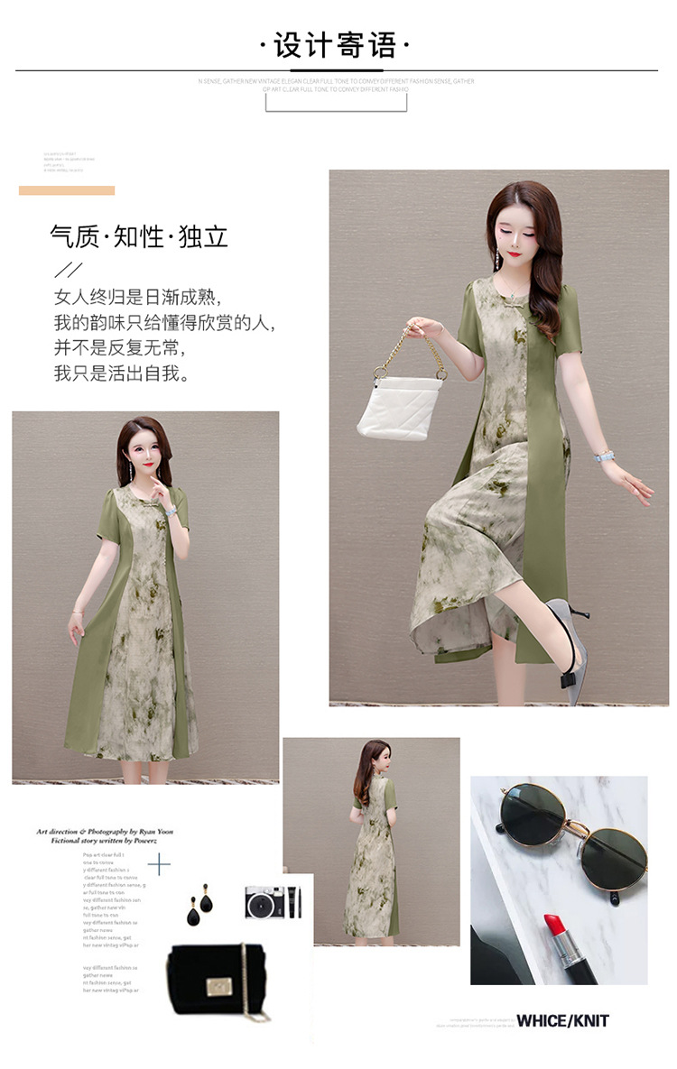 优雅气质,国风印花雪纺拼接连衣裙QYM-KSY-XLY8823-L