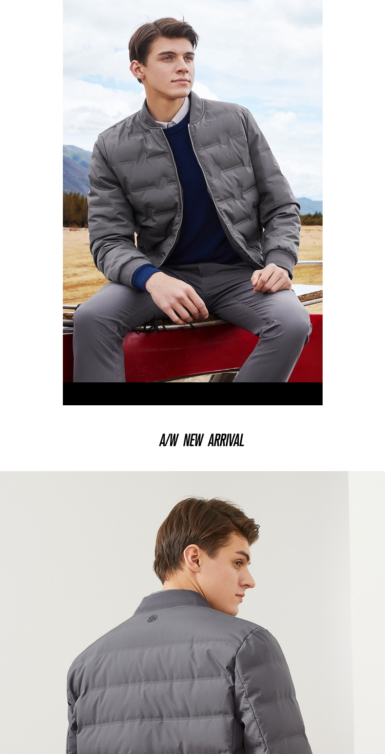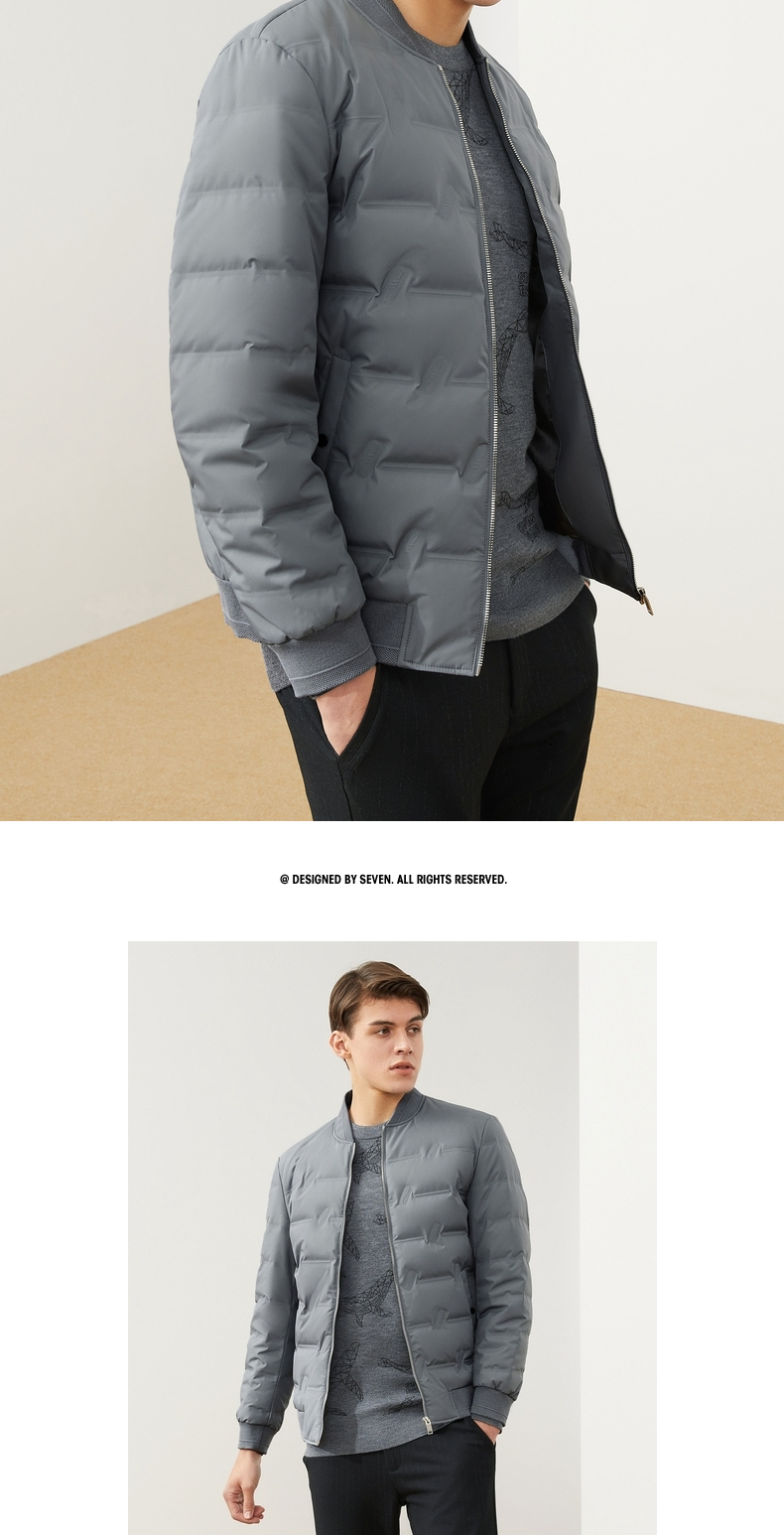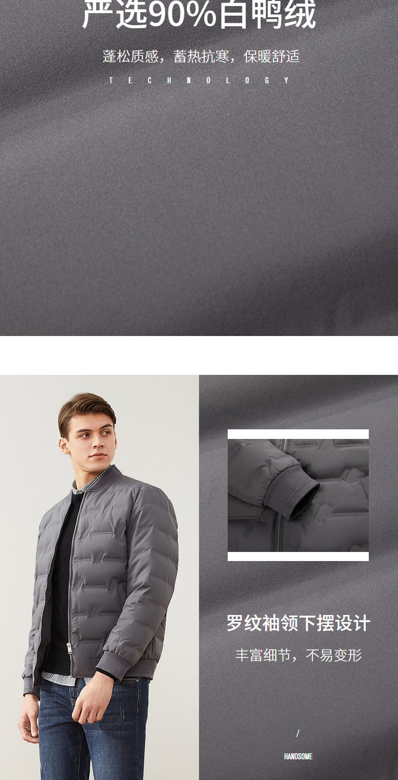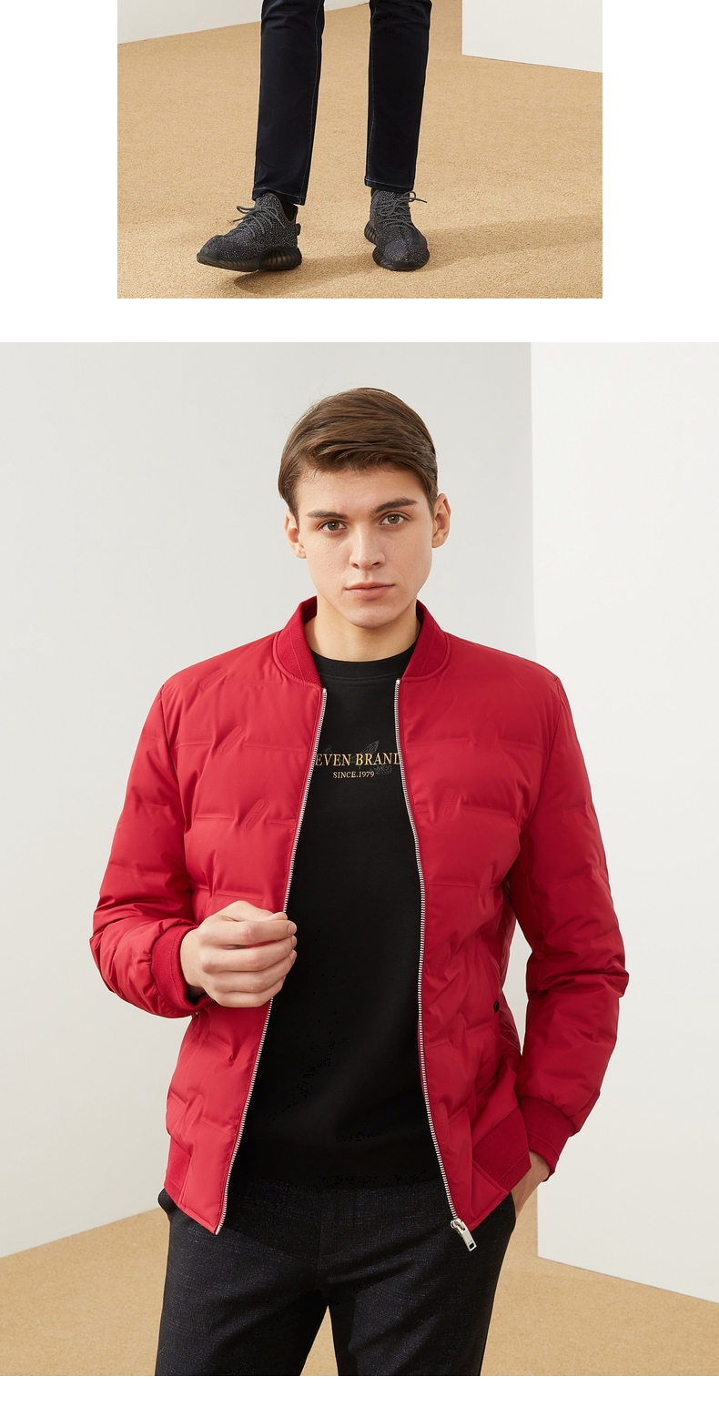 【特价】柒牌男装羽绒服休闲百搭棒球领长袖白鸭绒厚外套男士立领保暖 121E70250