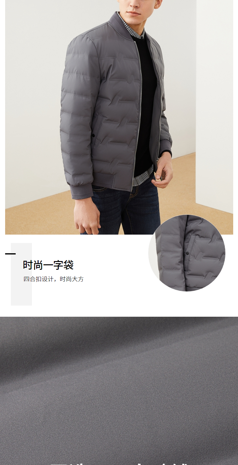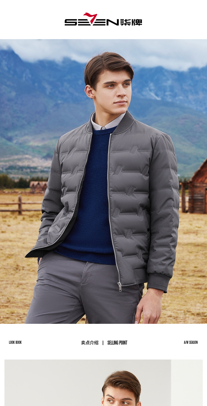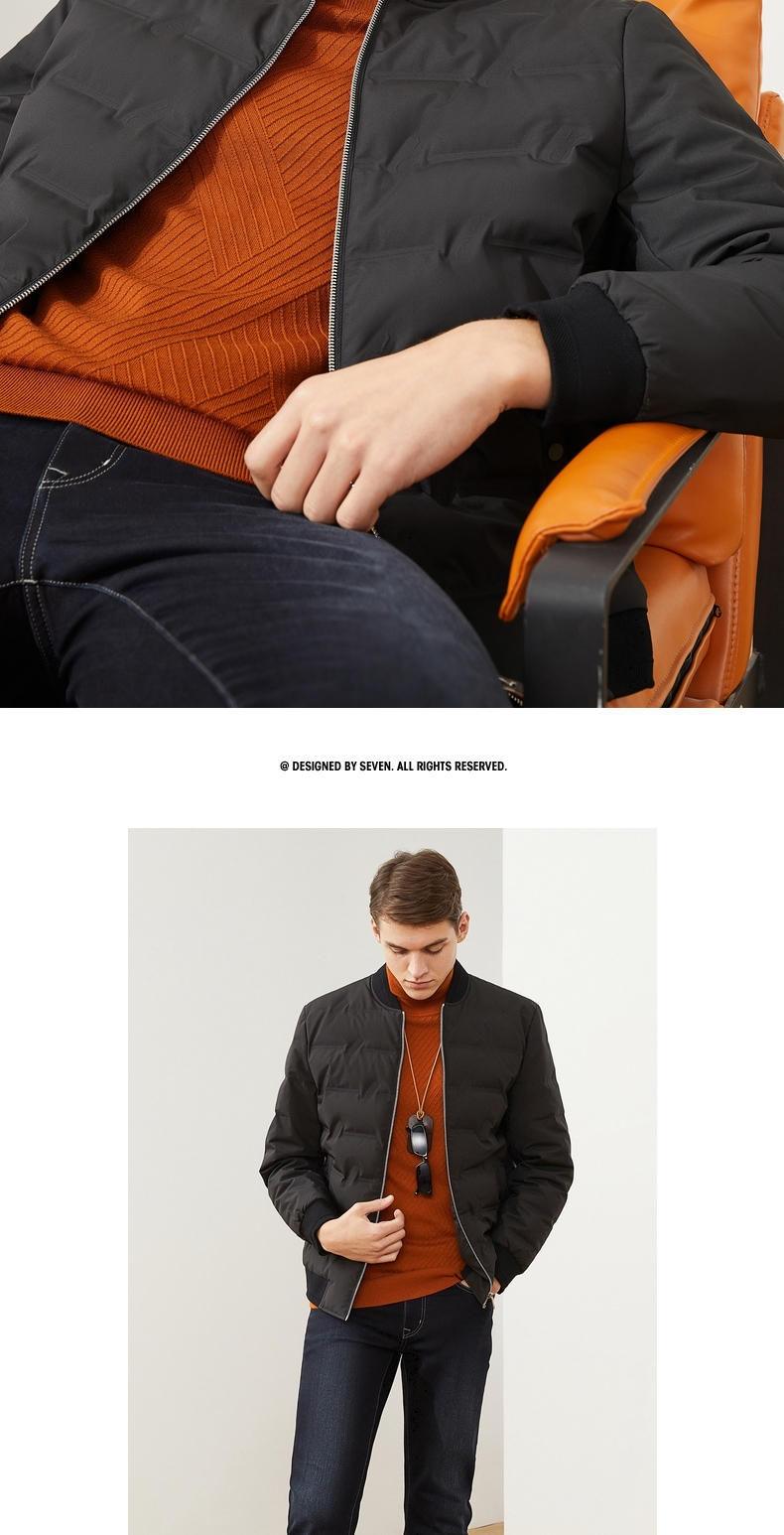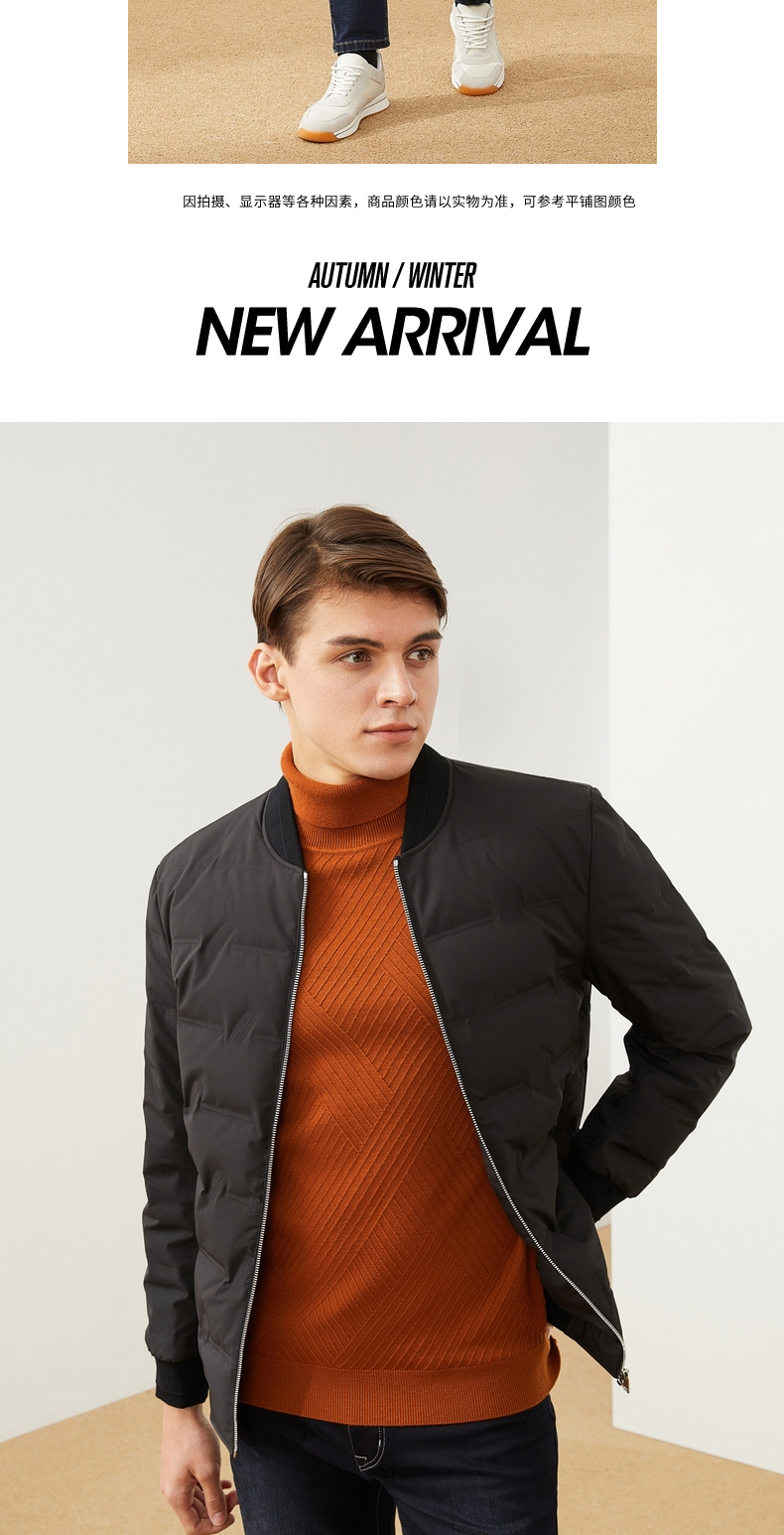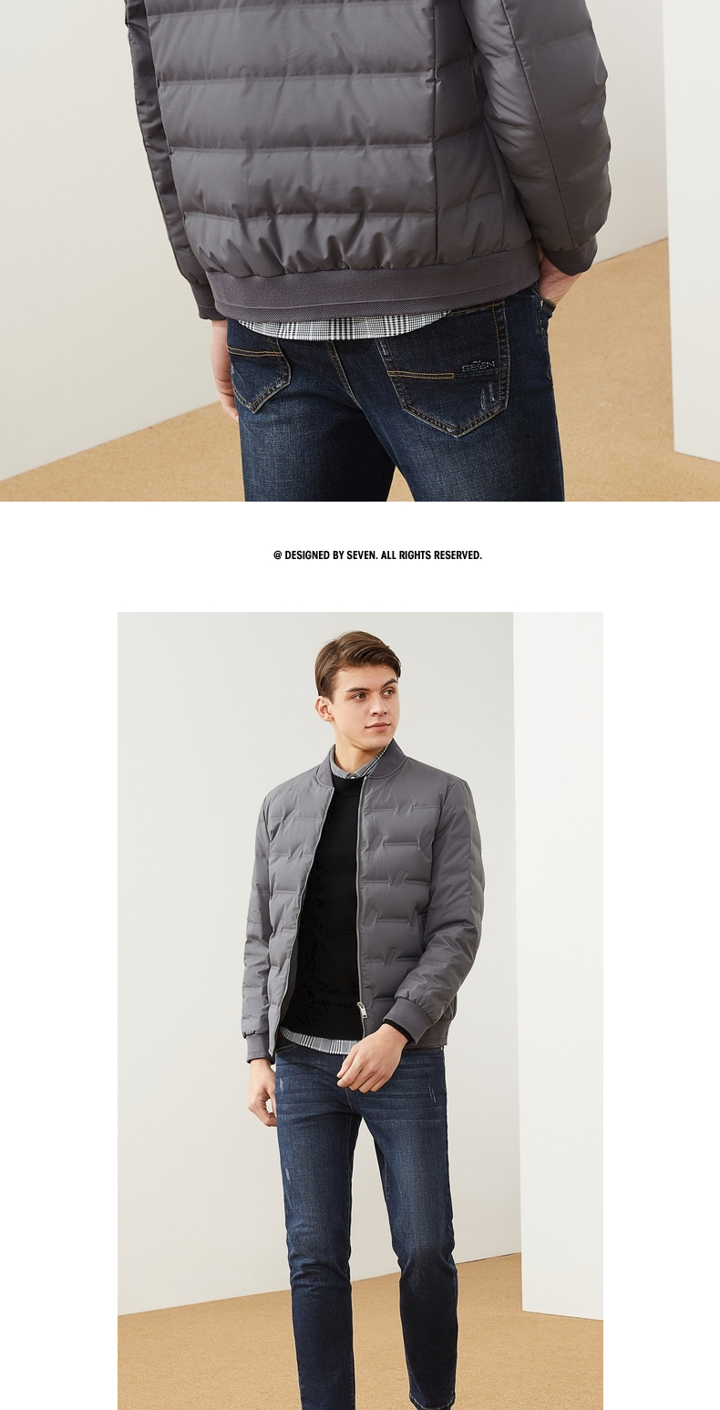 【特价】柒牌男装羽绒服休闲百搭棒球领长袖白鸭绒厚外套男士立领保暖 121E70250