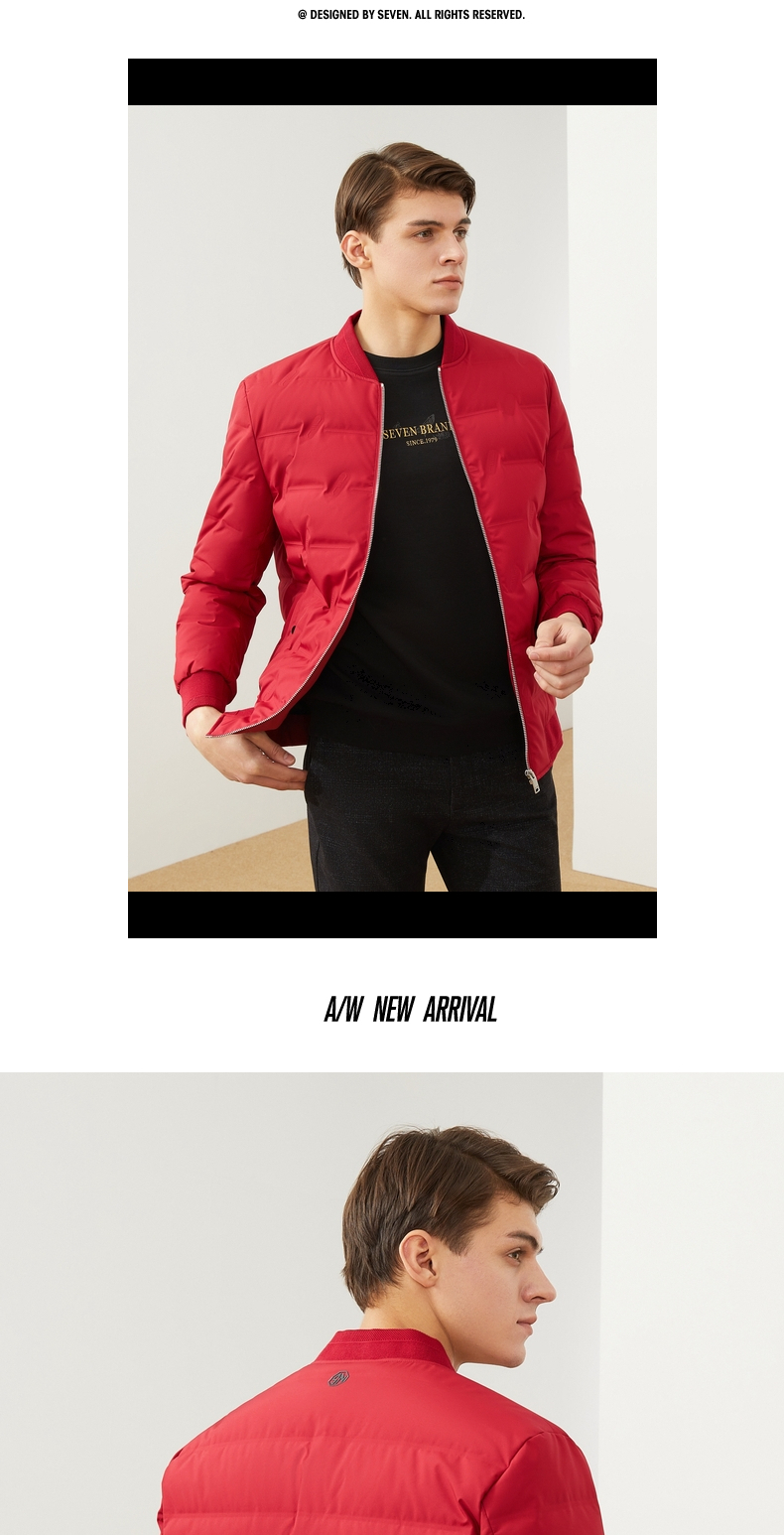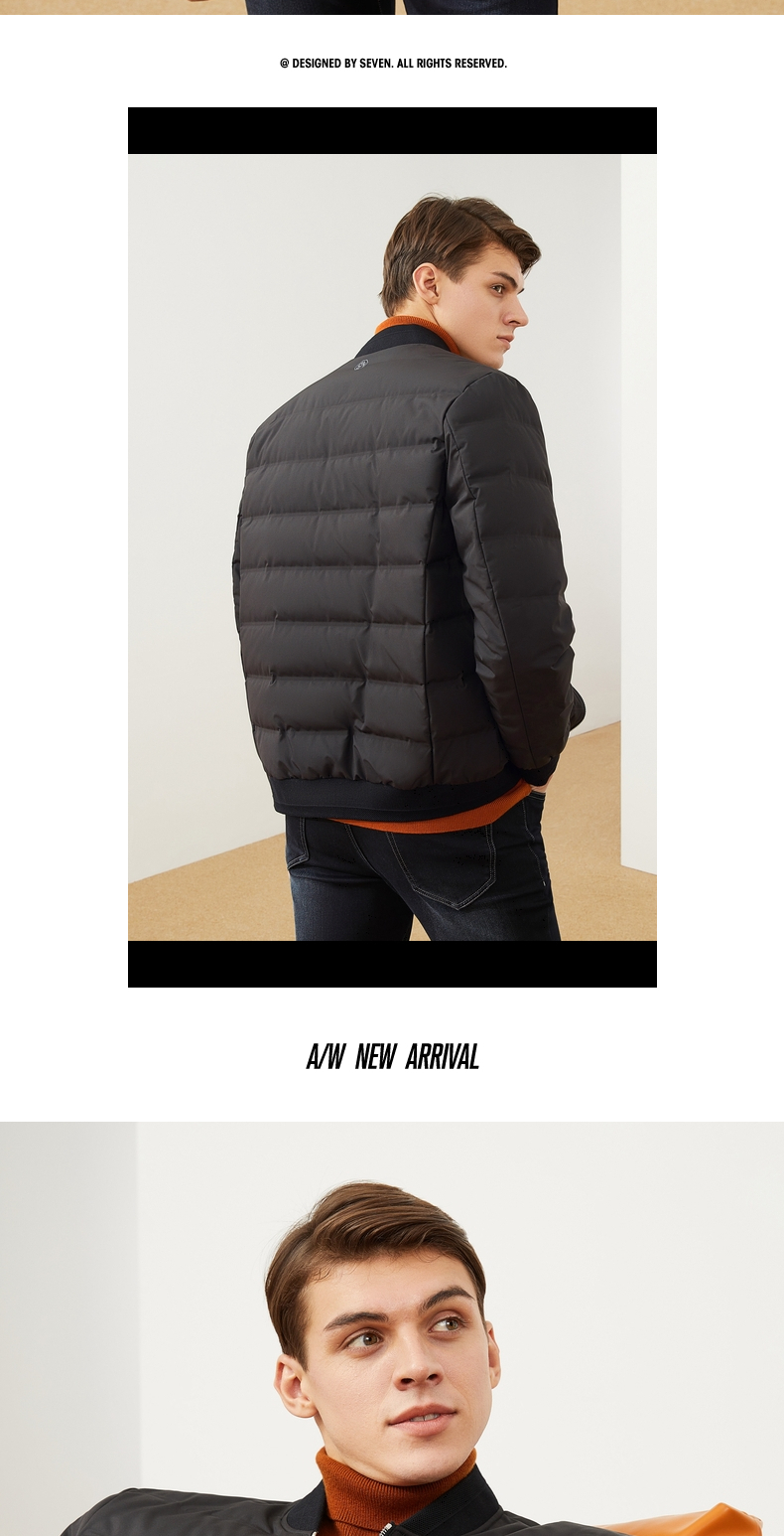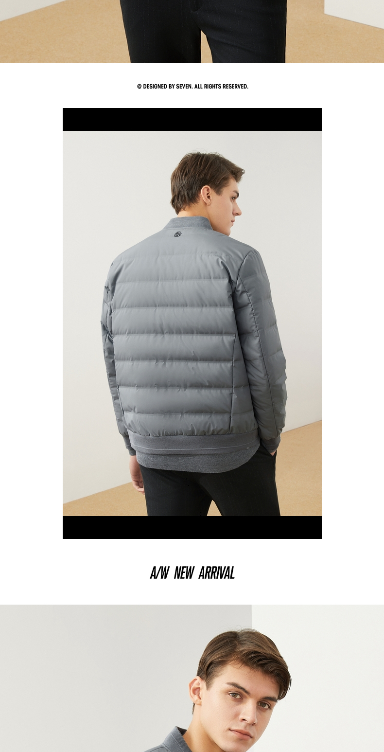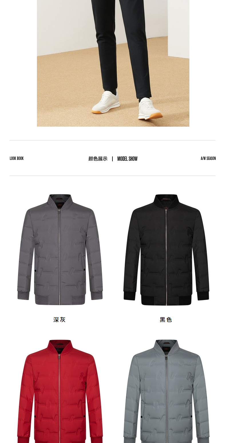 【特价】柒牌男装羽绒服休闲百搭棒球领长袖白鸭绒厚外套男士立领保暖 121E70250