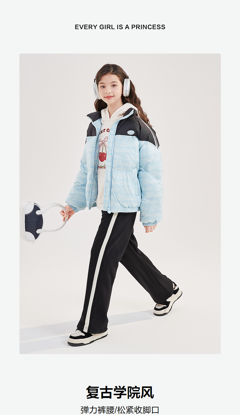 笛莎Deesha青少年女童裤子2024冬季新款复古学院风直筒裤