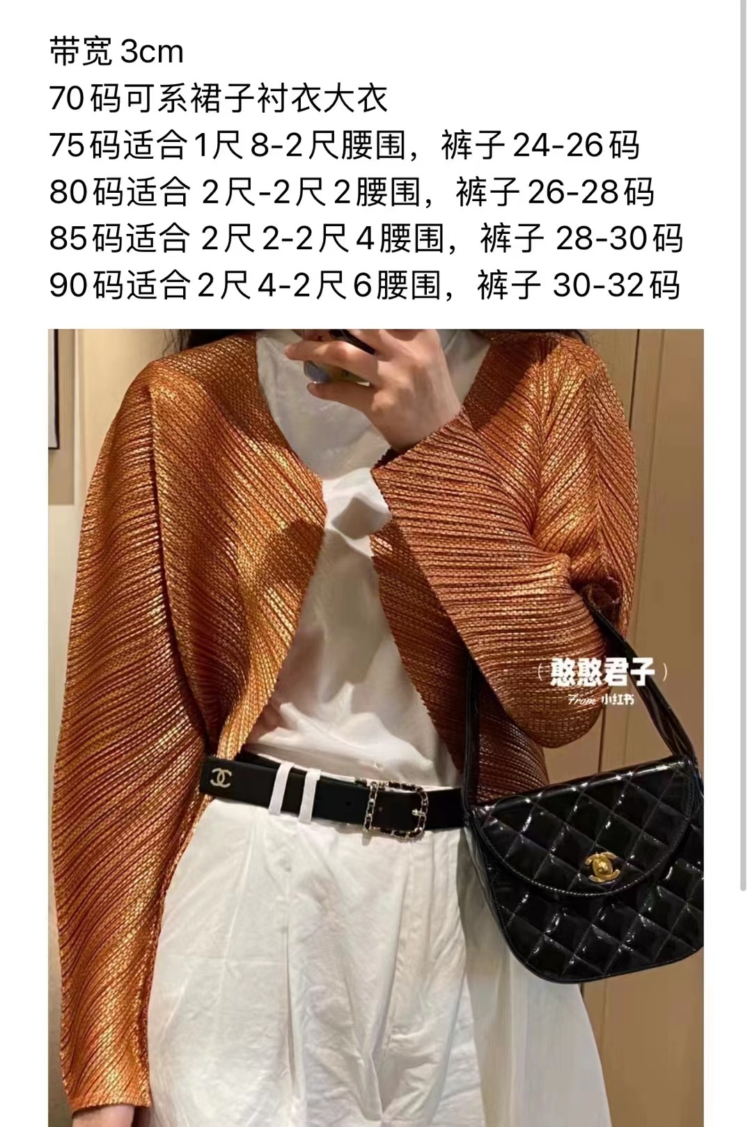 香奶奶,双面用腰带,扣头可旋转,公价9300,同步柜台的品质,能搞到也是花了不少心思,款式最新的,皮料是与原来blingbling的双c款同厂的意大利纳帕皮,扣头可旋转,穿皮条的品牌经典元素,欧码70/75/80/85/90,同样可以当大衣衬衣的腰带,搭配方式全