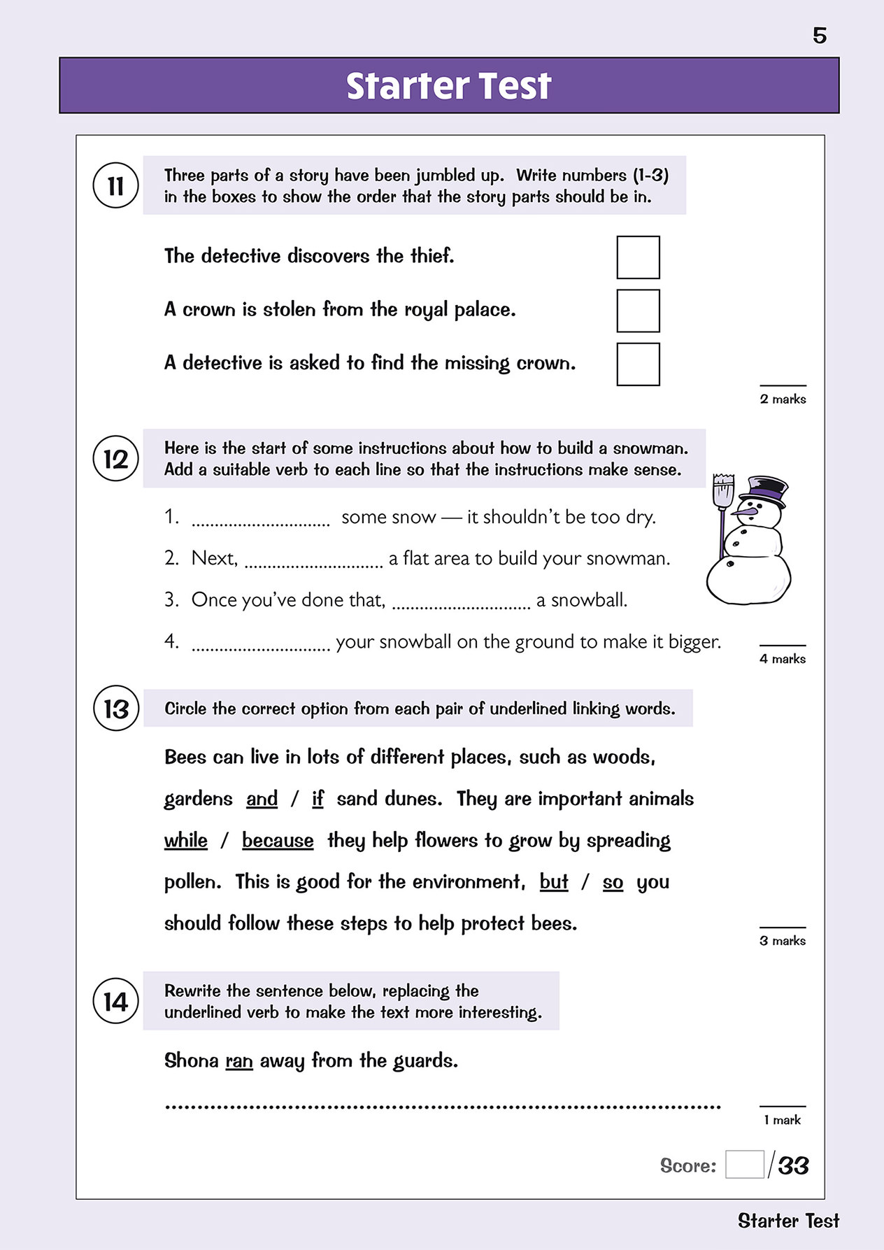 这本出色的目标问题书为三年级学生提供了大量的英语练习! 它包含各种问题,以帮助学生建立整个英语课程的知识框架,包括理解、写作、拼写、标点符号和语法——所有这些都涵盖在一本书里!整本书都有进度测试,以巩固知识和检查学生的学习情况,书的后面附有答案。