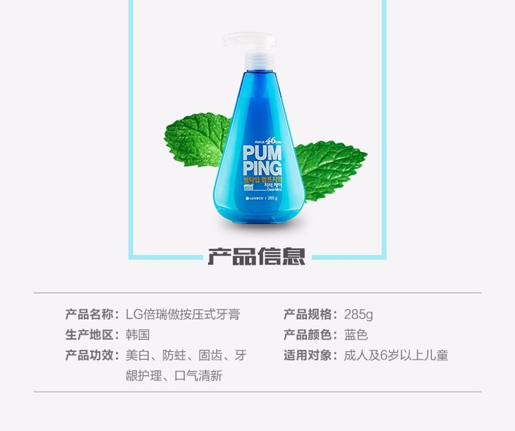 【保税仓】LG倍瑞傲46cm按压式护理牙膏285g/支