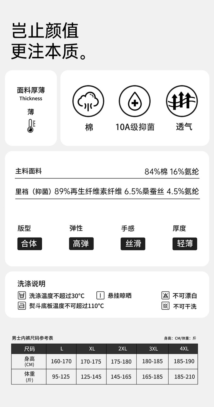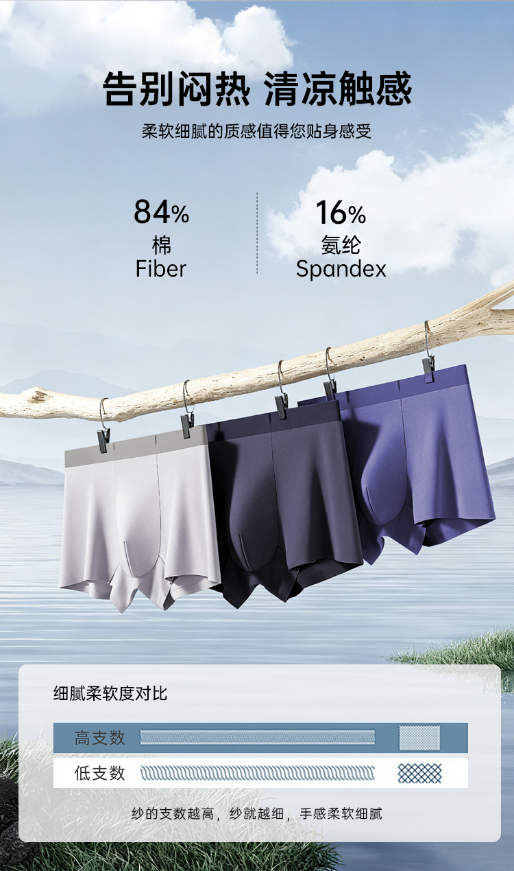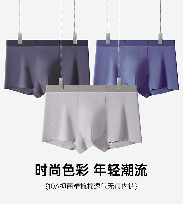【实付满399送保温杯】【10A抑菌精梳棉透气无痕内裤】男士无痕四角短裤透气平角裤衩ST506