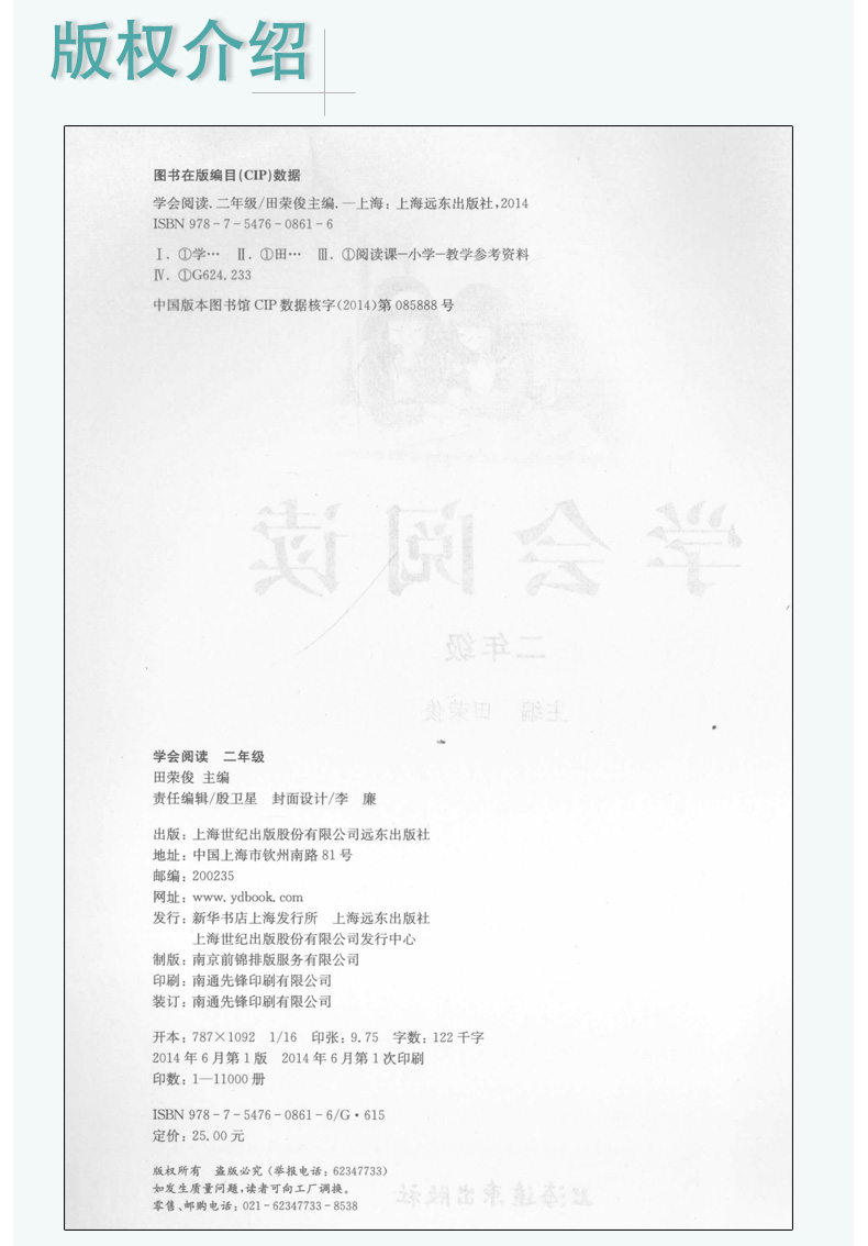 钟书正版辅导书 学会阅读 语文 2年级/二年级 2年级 新课标 教辅 小学语文阅读训练 上海远东出版社 田荣俊