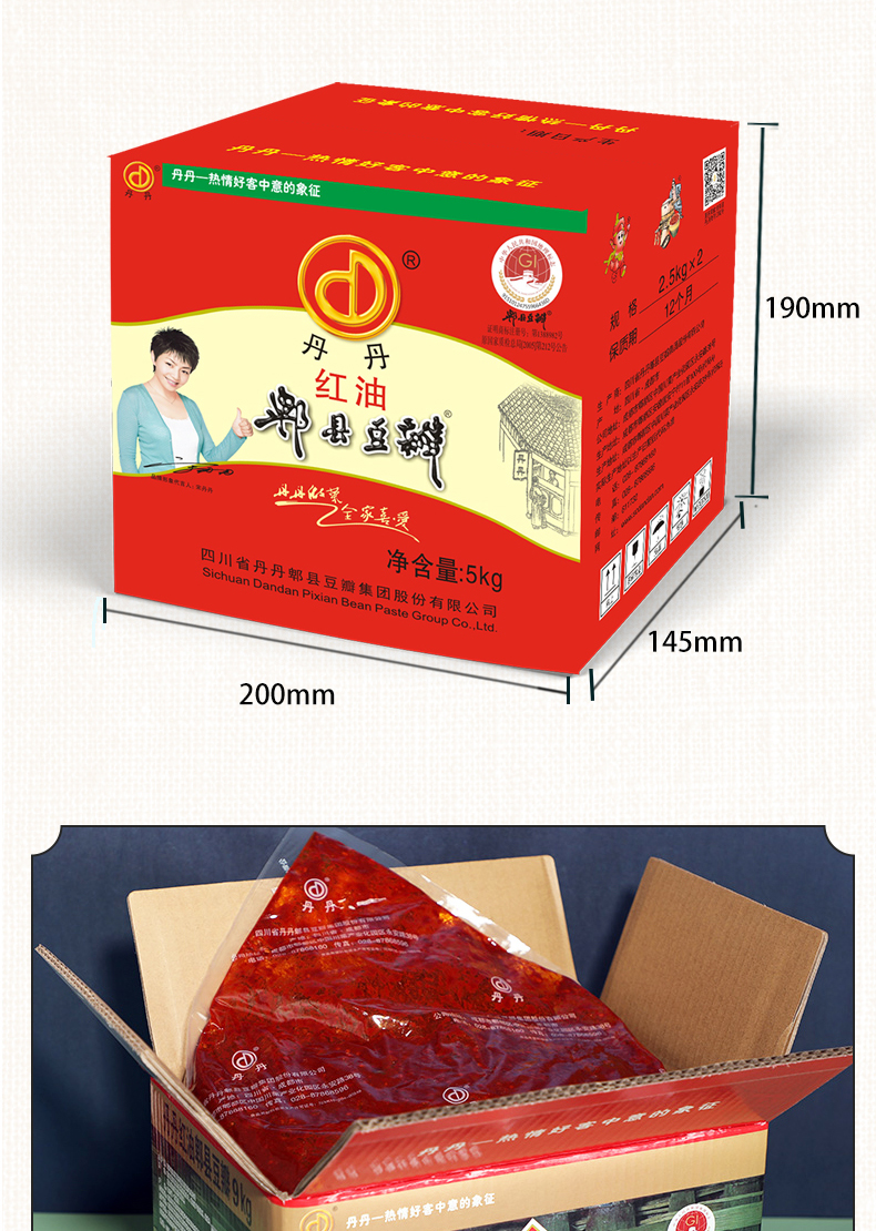 丹丹郫县豆瓣酱四川特产郫县豆瓣酱辣椒蚕豆郫县豆瓣酱200g*5袋装