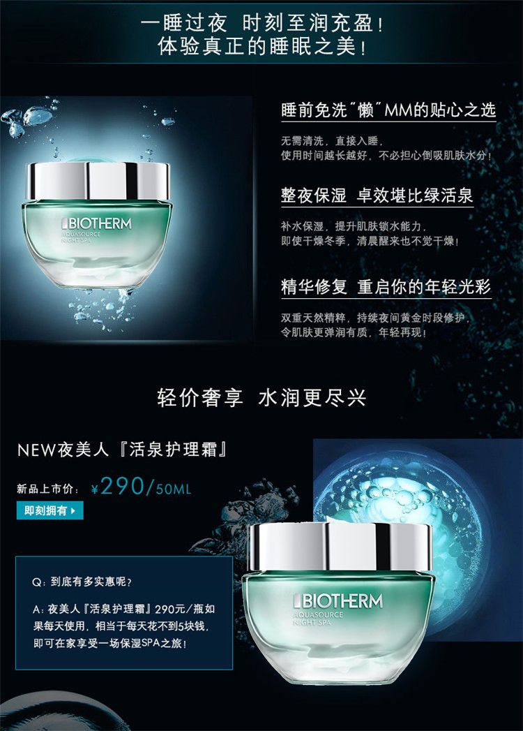 【预售 急单慎拍】Biotherm碧欧泉女士夜间睡眠面膜50ml